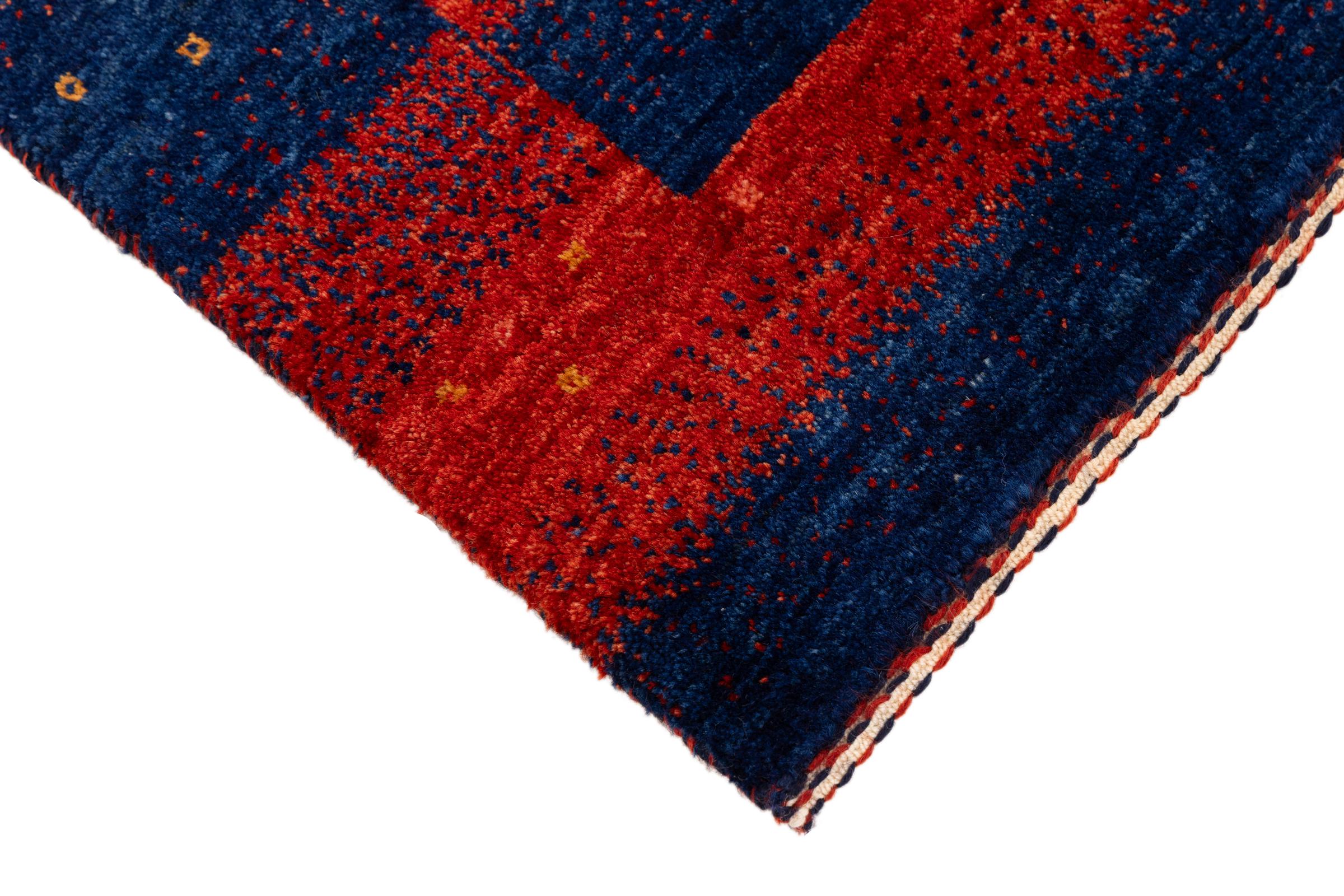 Ten piękny dywan jest perskim Gabbeh i dlatego należy do najwyższej jakości dywanów Gabbeh. Dywany są wiązane przez nomadów lub pół-nomadzi w Iranie zgodnie z tradycyjnym rzemiosłem. Proste motywy i wzory są w większości inspirowane bezpośrednim otoczeniem nomadów. Na przykład wielbłądy, drzewa lub krzewy można znaleźć na tradycyjnych dywanach. Perskie dywany Gabbeh wykonane są z wełny pochodzącej z lokalnie hodowanych stad owiec. Wełna jest więc w większości przypadków nadal obracana ręcznie. Tak więc każdy z tych orientalnych dywanów uosabia unikalny charakter wielowiekowej kultury.