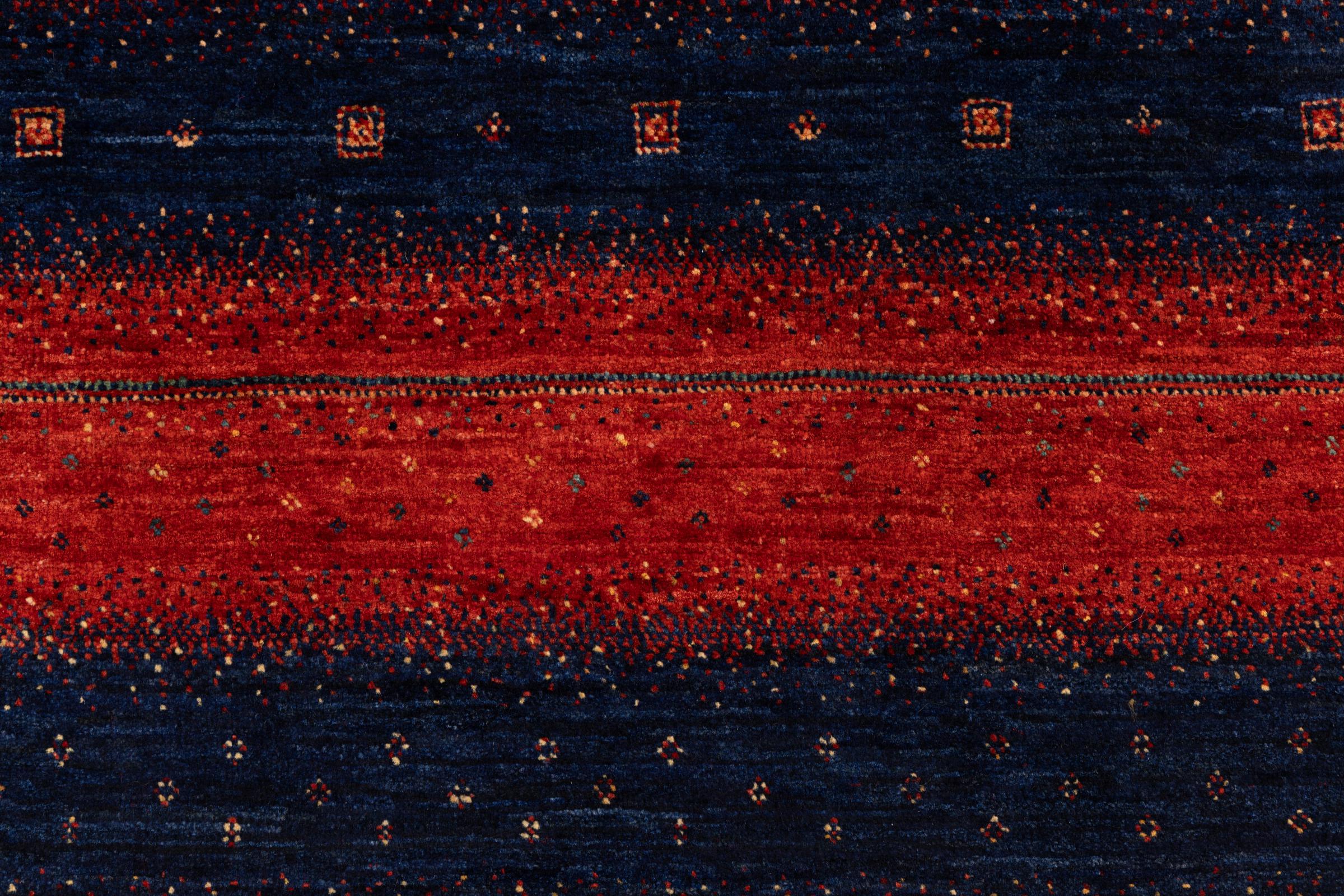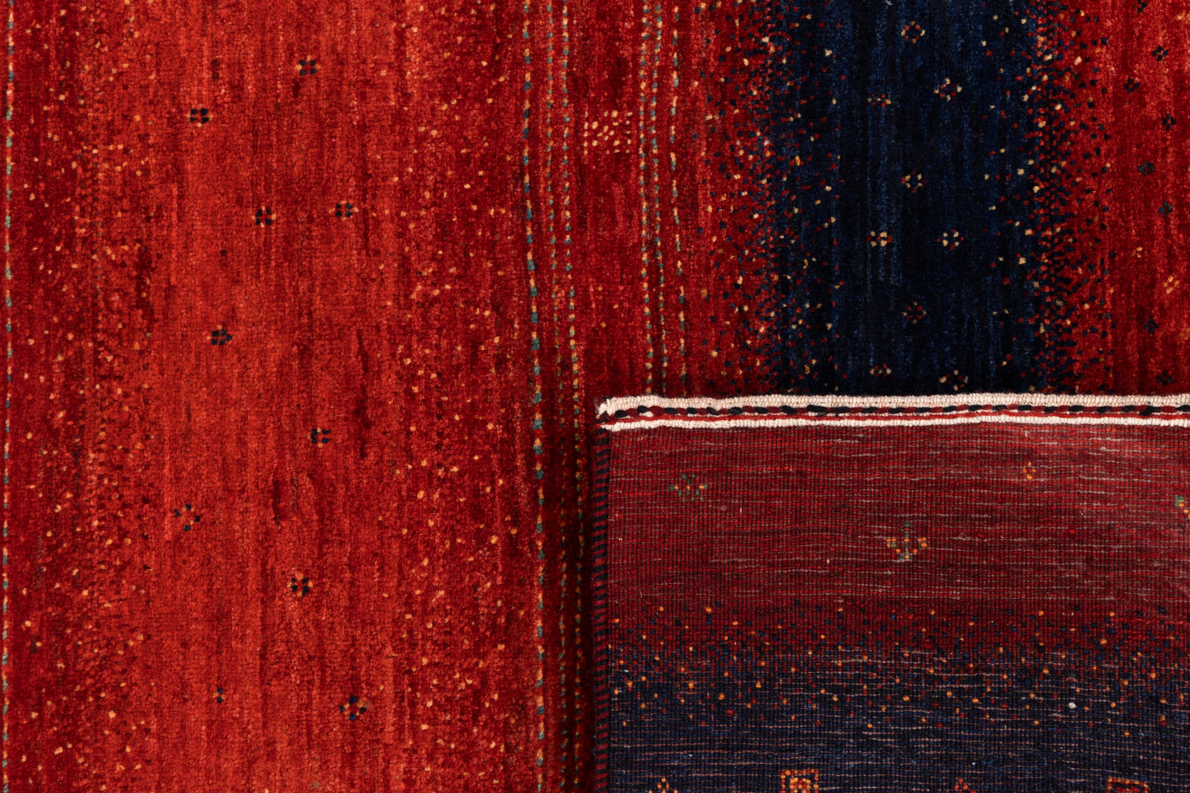 Ten piękny dywan jest perskim Gabbeh i dlatego należy do najwyższej jakości dywanów Gabbeh. Dywany są wiązane przez nomadów lub pół-nomadzi w Iranie zgodnie z tradycyjnym rzemiosłem. Proste motywy i wzory są w większości inspirowane bezpośrednim otoczeniem nomadów. Na przykład wielbłądy, drzewa lub krzewy można znaleźć na tradycyjnych dywanach. Perskie dywany Gabbeh wykonane są z wełny pochodzącej z lokalnie hodowanych stad owiec. Wełna jest więc w większości przypadków nadal obracana ręcznie. Tak więc każdy z tych orientalnych dywanów uosabia unikalny charakter wielowiekowej kultury.