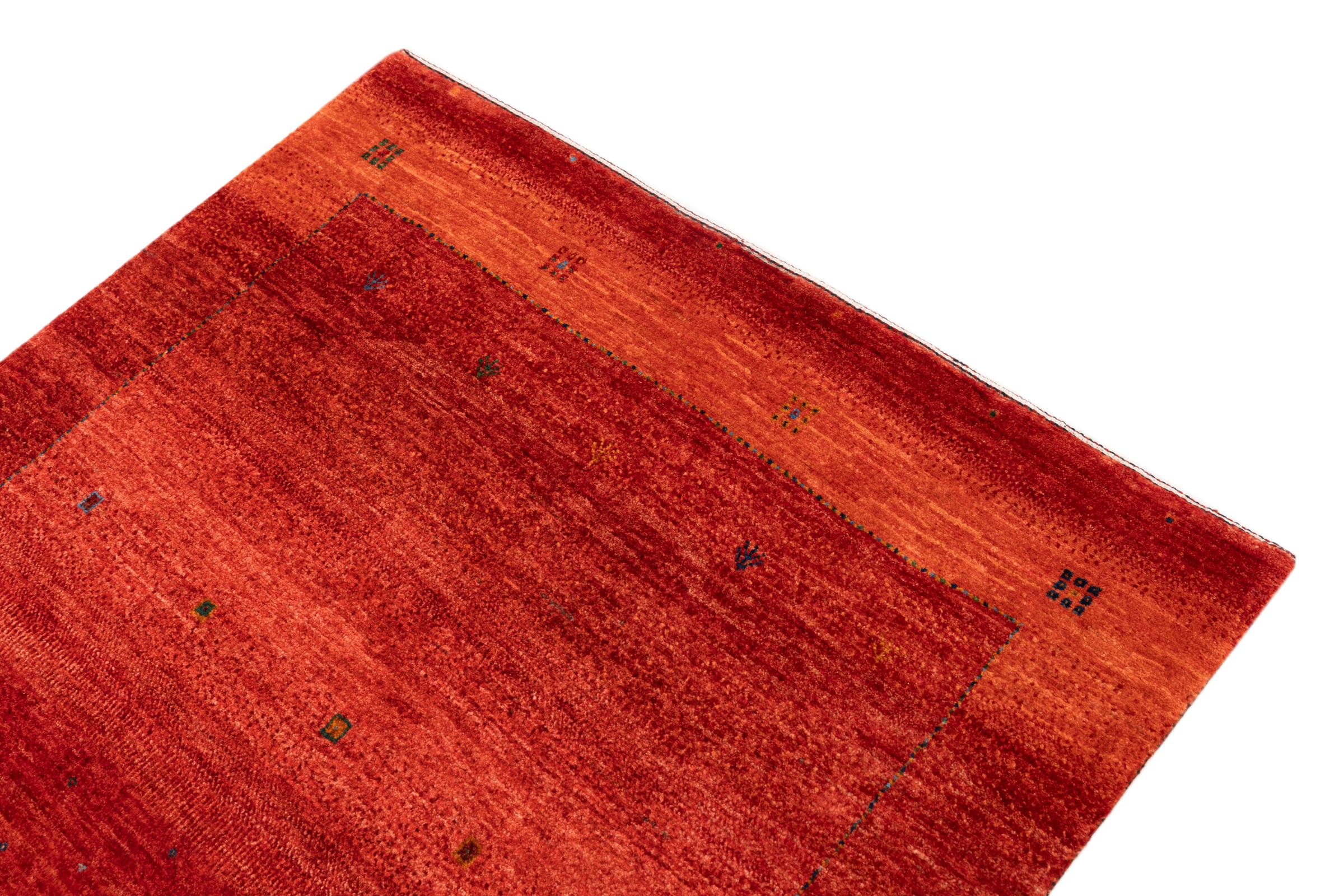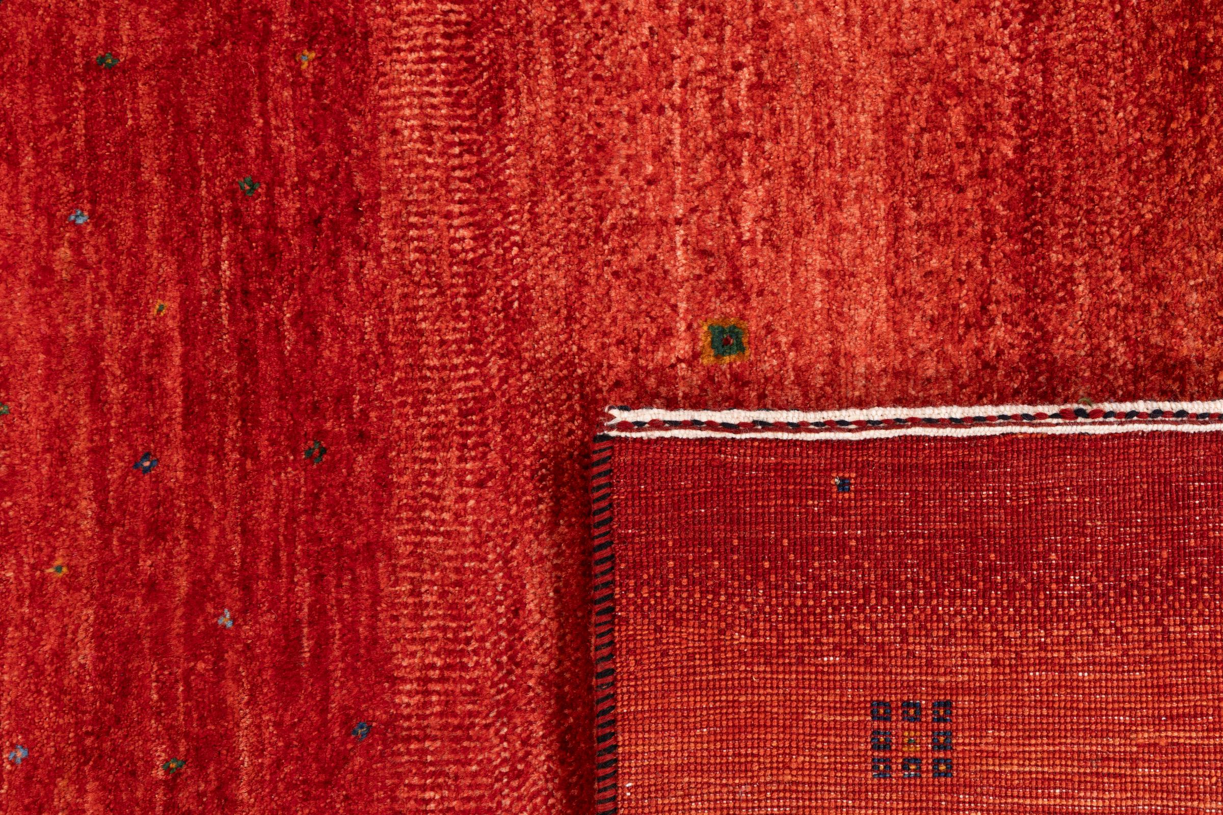 Ten piękny dywan jest perskim Gabbeh i dlatego należy do najwyższej jakości dywanów Gabbeh. Dywany są wiązane przez nomadów lub pół-nomadzi w Iranie zgodnie z tradycyjnym rzemiosłem. Proste motywy i wzory są w większości inspirowane bezpośrednim otoczeniem nomadów. Na przykład wielbłądy, drzewa lub krzewy można znaleźć na tradycyjnych dywanach. Perskie dywany Gabbeh wykonane są z wełny pochodzącej z lokalnie hodowanych stad owiec. Wełna jest więc w większości przypadków nadal obracana ręcznie. Tak więc każdy z tych orientalnych dywanów uosabia unikalny charakter wielowiekowej kultury.