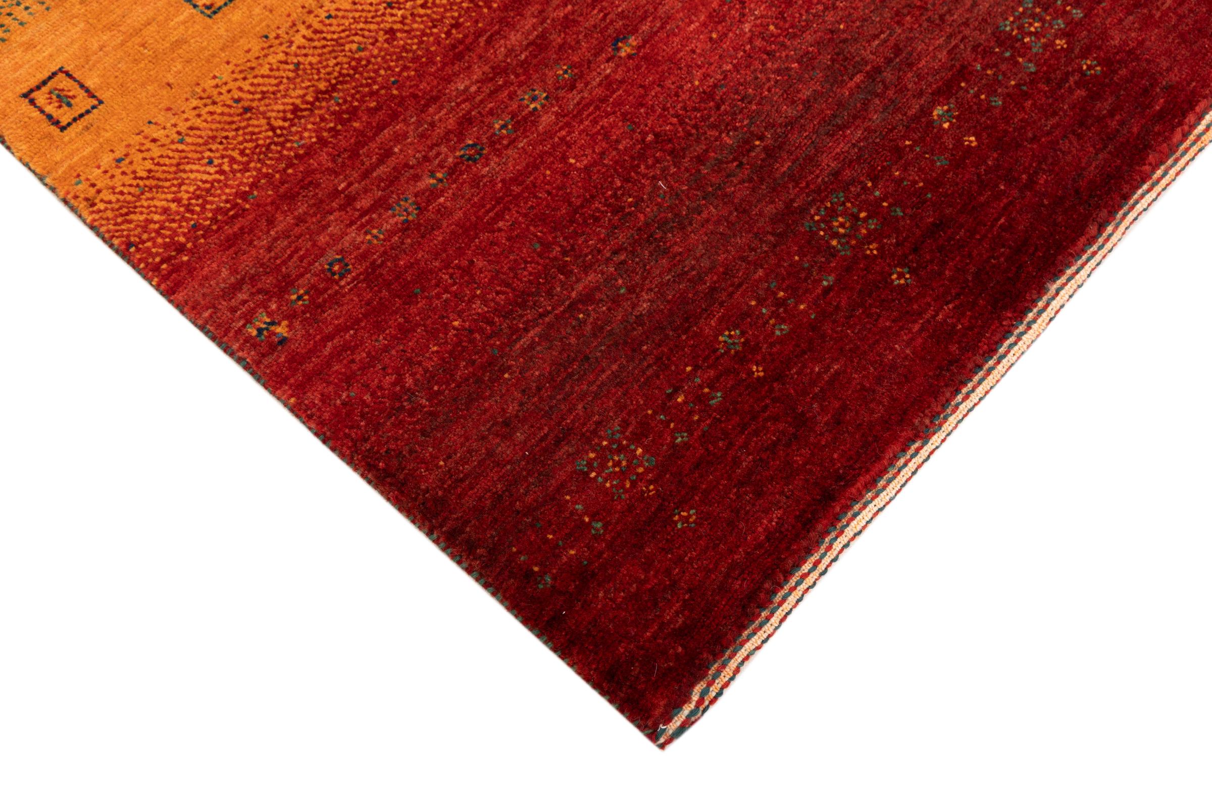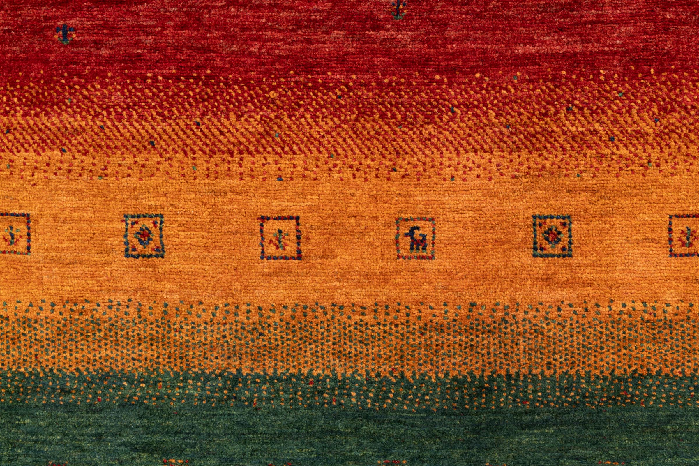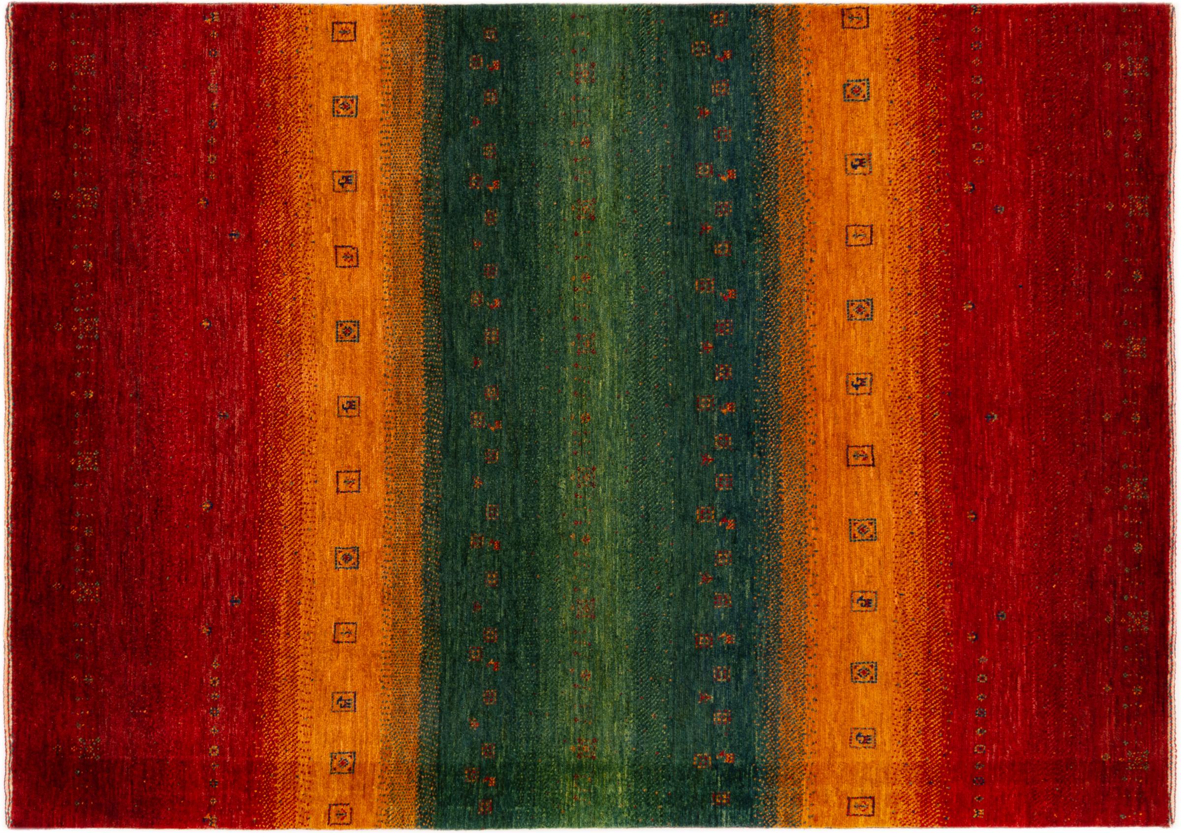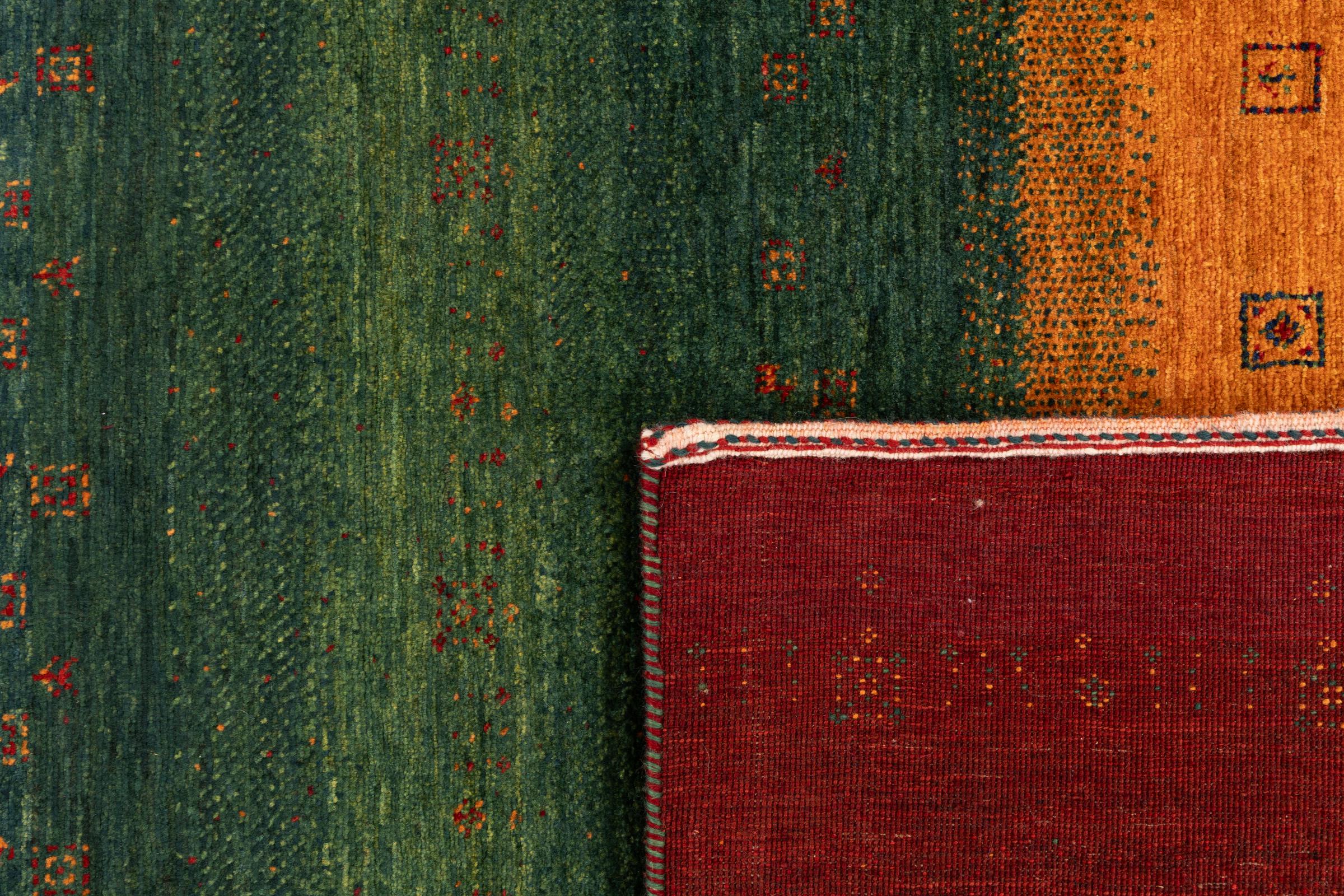 Ten piękny dywan jest perskim Gabbeh i dlatego należy do najwyższej jakości dywanów Gabbeh. Dywany są wiązane przez nomadów lub pół-nomadzi w Iranie zgodnie z tradycyjnym rzemiosłem. Proste motywy i wzory są w większości inspirowane bezpośrednim otoczeniem nomadów. Na przykład wielbłądy, drzewa lub krzewy można znaleźć na tradycyjnych dywanach. Perskie dywany Gabbeh wykonane są z wełny pochodzącej z lokalnie hodowanych stad owiec. Wełna jest więc w większości przypadków nadal obracana ręcznie. Tak więc każdy z tych orientalnych dywanów uosabia unikalny charakter wielowiekowej kultury.