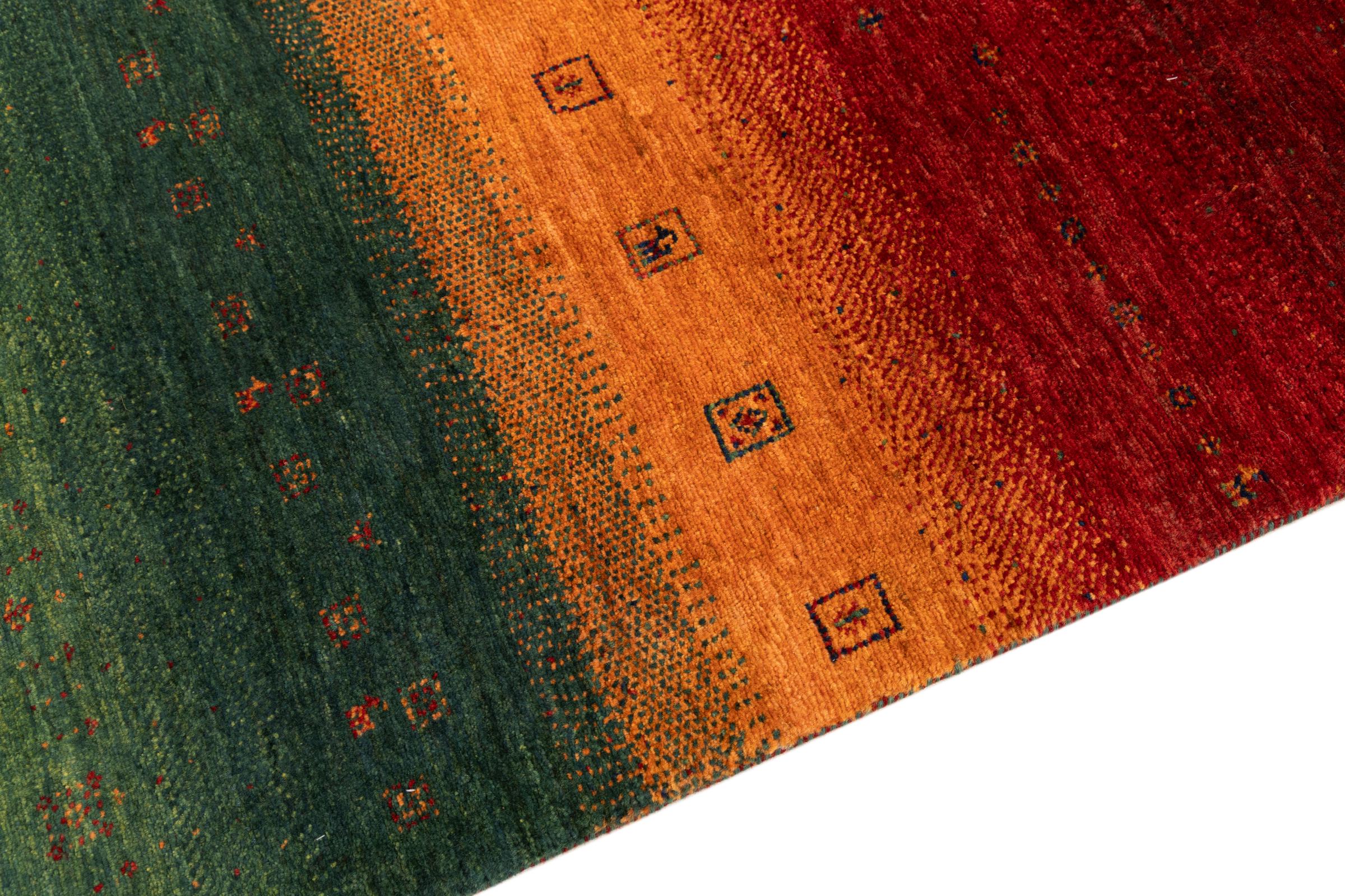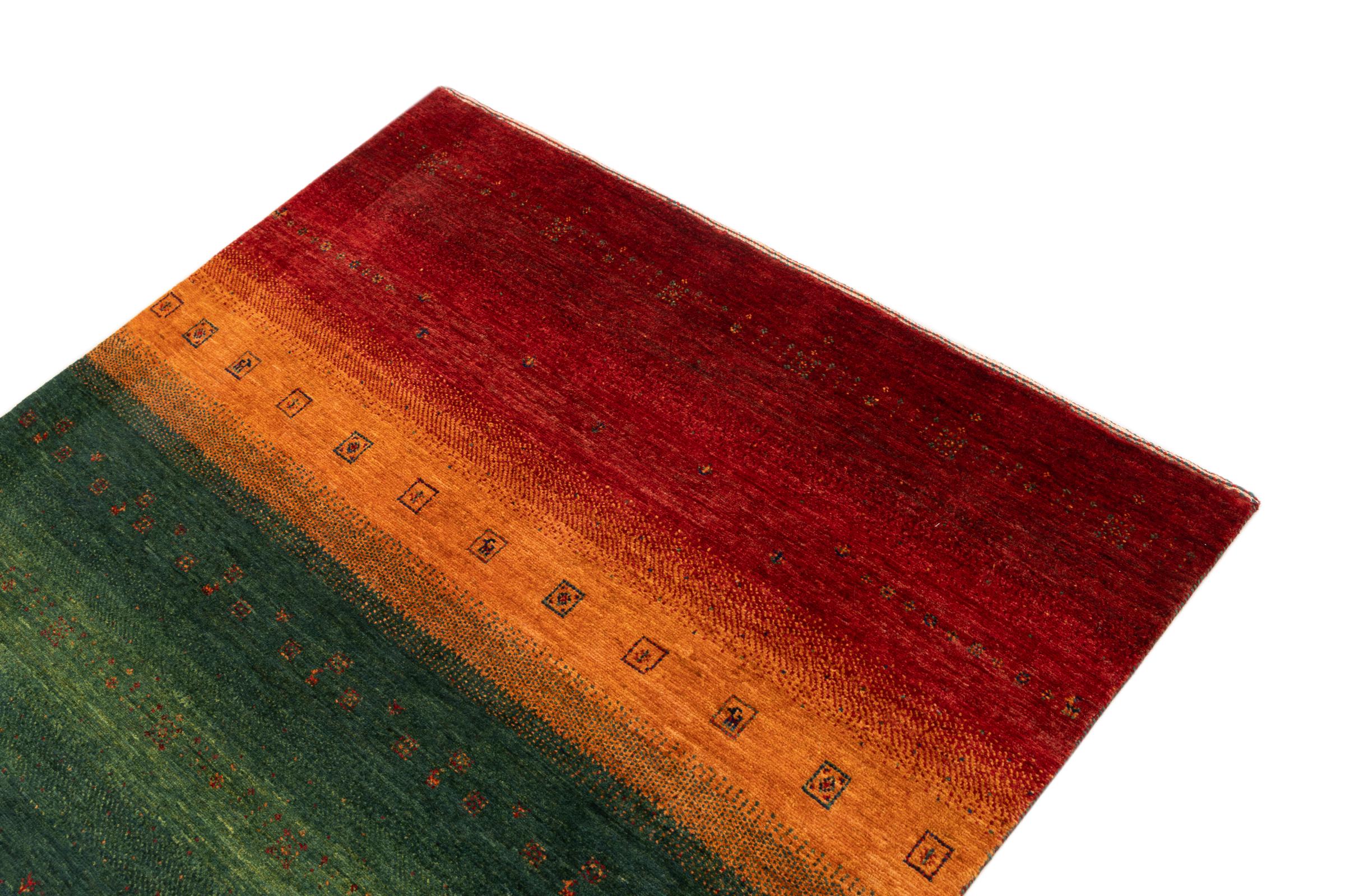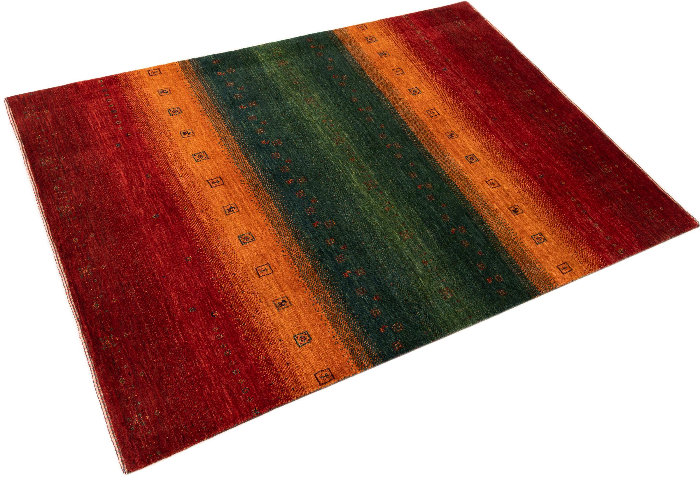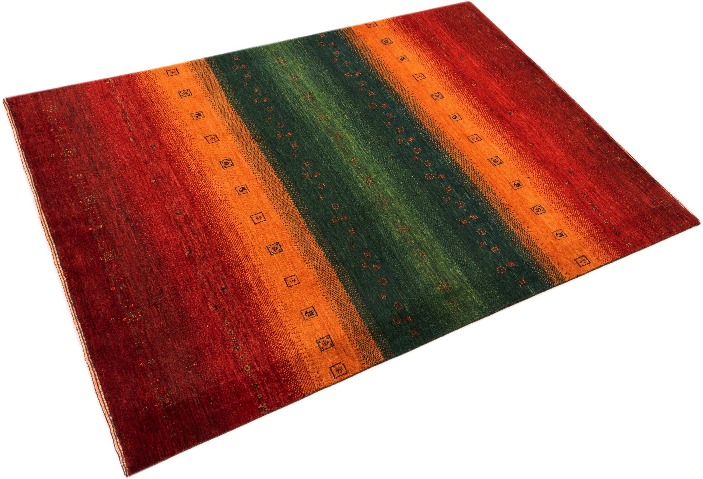 Ten piękny dywan jest perskim Gabbeh i dlatego należy do najwyższej jakości dywanów Gabbeh. Dywany są wiązane przez nomadów lub pół-nomadzi w Iranie zgodnie z tradycyjnym rzemiosłem. Proste motywy i wzory są w większości inspirowane bezpośrednim otoczeniem nomadów. Na przykład wielbłądy, drzewa lub krzewy można znaleźć na tradycyjnych dywanach. Perskie dywany Gabbeh wykonane są z wełny pochodzącej z lokalnie hodowanych stad owiec. Wełna jest więc w większości przypadków nadal obracana ręcznie. Tak więc każdy z tych orientalnych dywanów uosabia unikalny charakter wielowiekowej kultury.