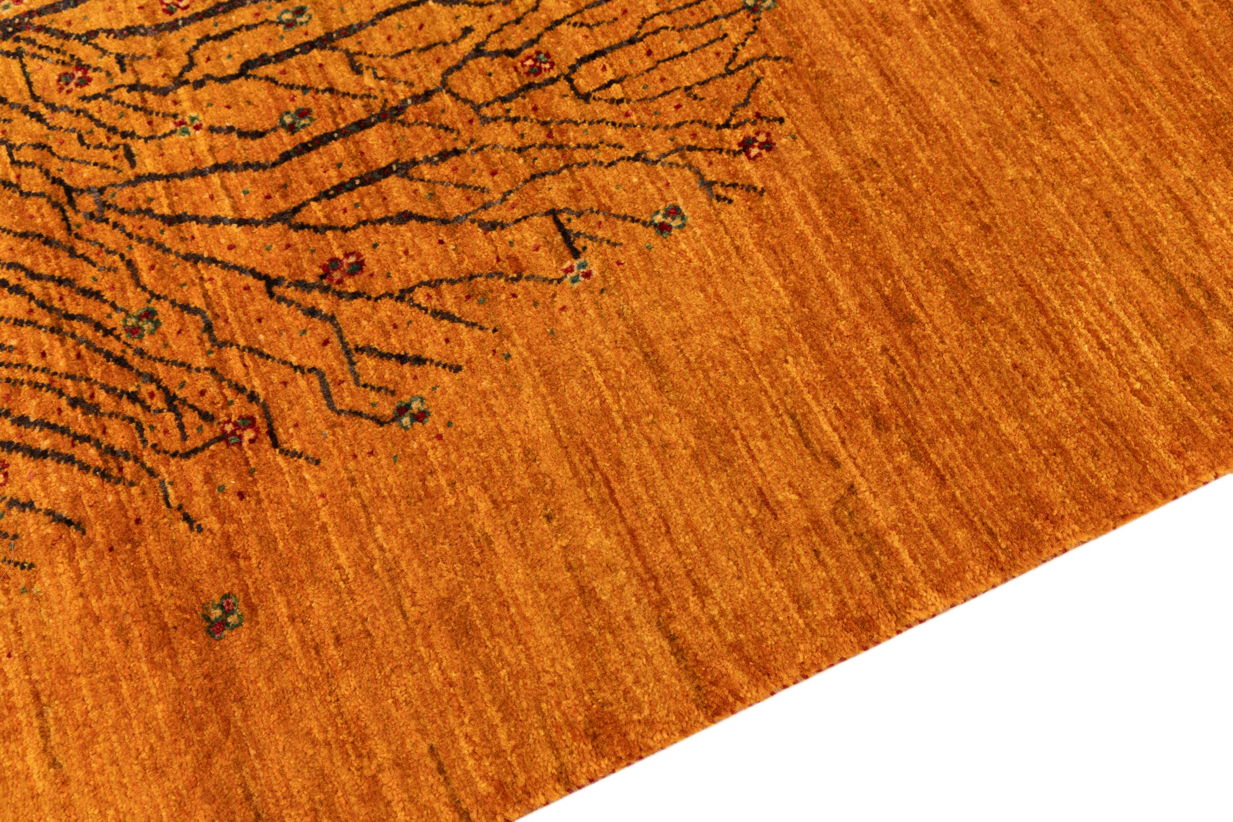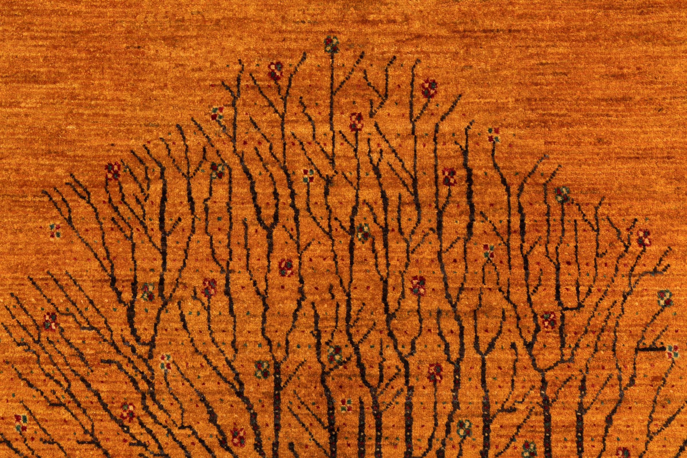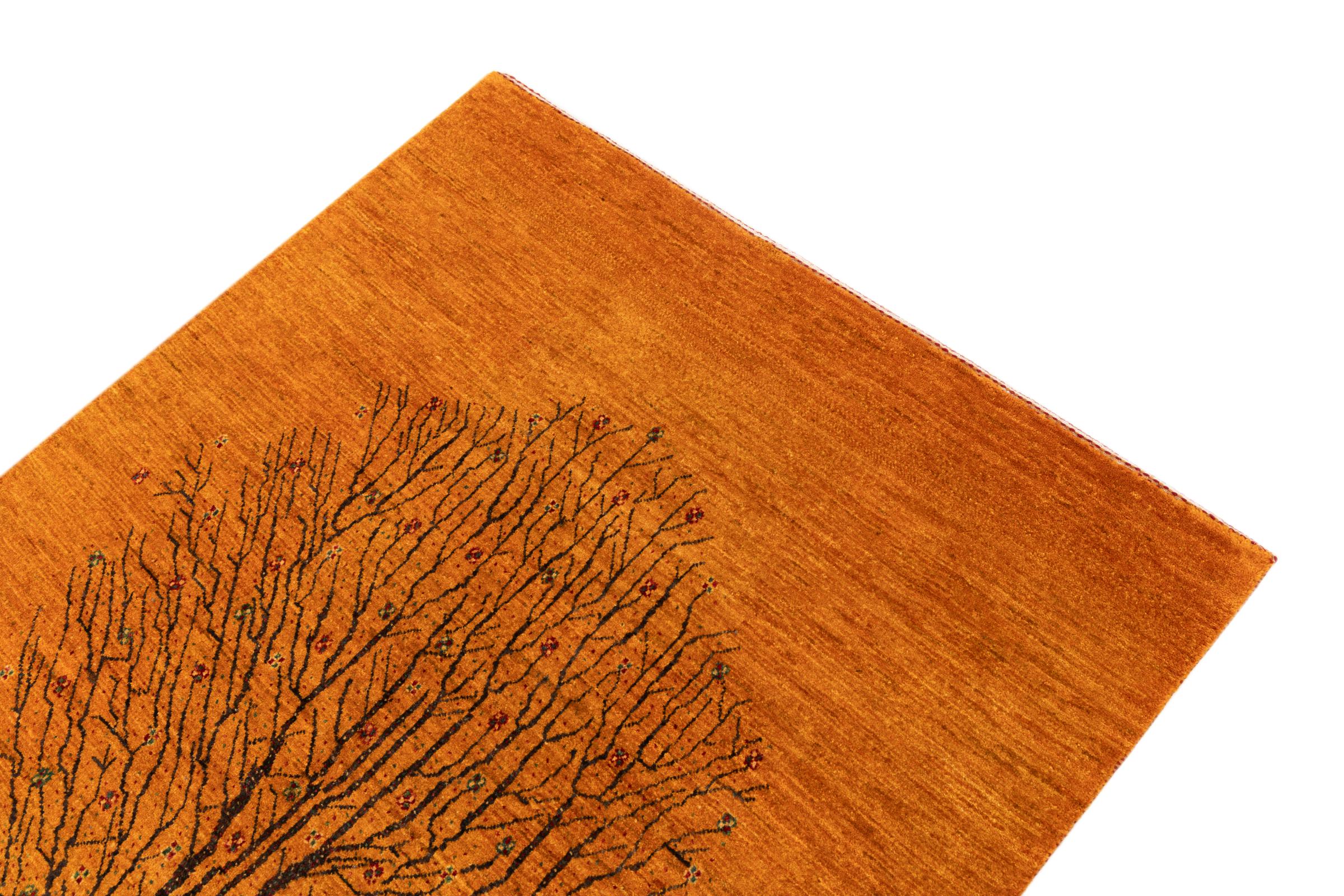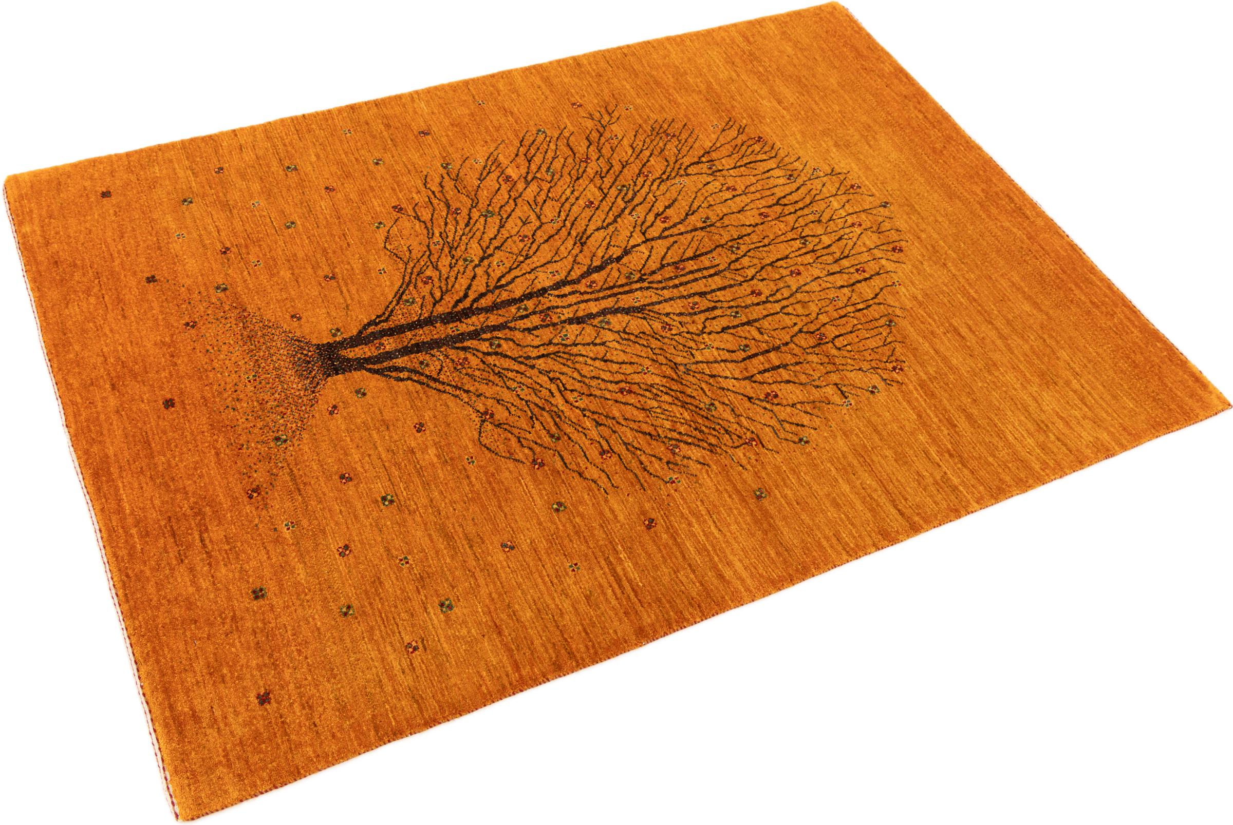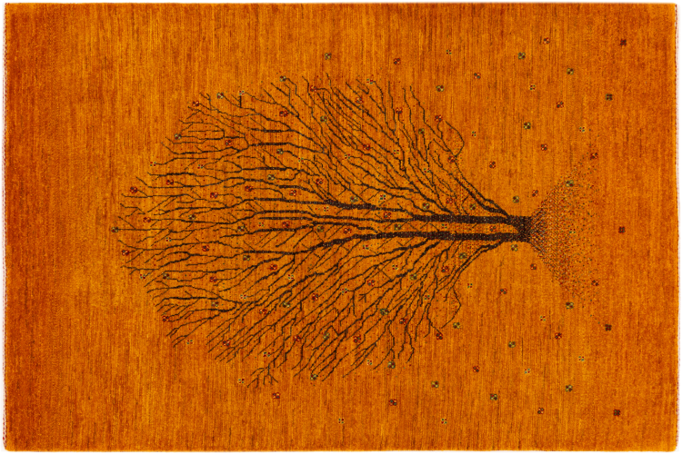 Ten piękny dywan jest perskim Gabbeh i dlatego należy do najwyższej jakości dywanów Gabbeh. Dywany są wiązane przez nomadów lub pół-nomadzi w Iranie zgodnie z tradycyjnym rzemiosłem. Proste motywy i wzory są w większości inspirowane bezpośrednim otoczeniem nomadów. Na przykład wielbłądy, drzewa lub krzewy można znaleźć na tradycyjnych dywanach. Perskie dywany Gabbeh wykonane są z wełny pochodzącej z lokalnie hodowanych stad owiec. Wełna jest więc w większości przypadków nadal obracana ręcznie. Tak więc każdy z tych orientalnych dywanów uosabia unikalny charakter wielowiekowej kultury.