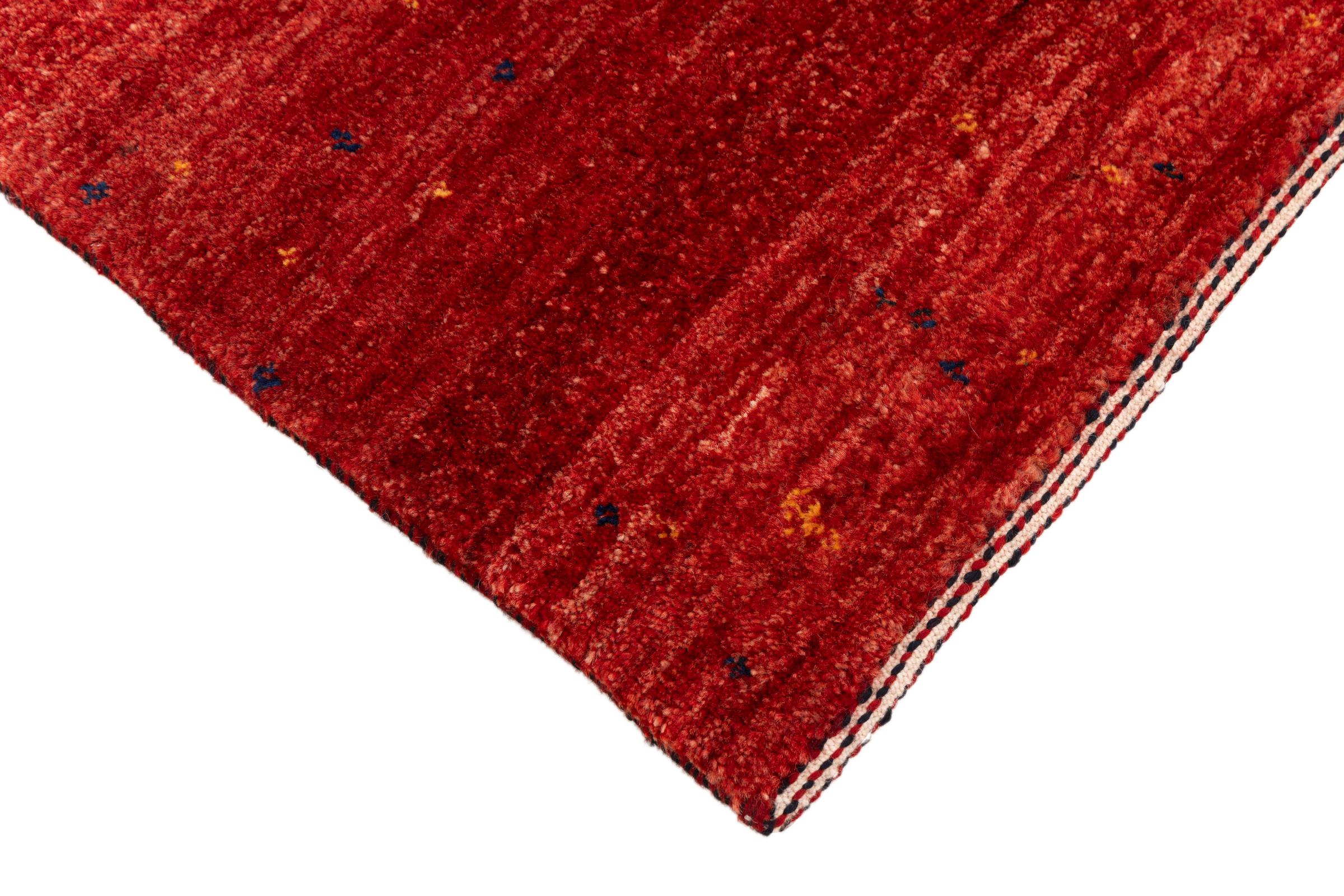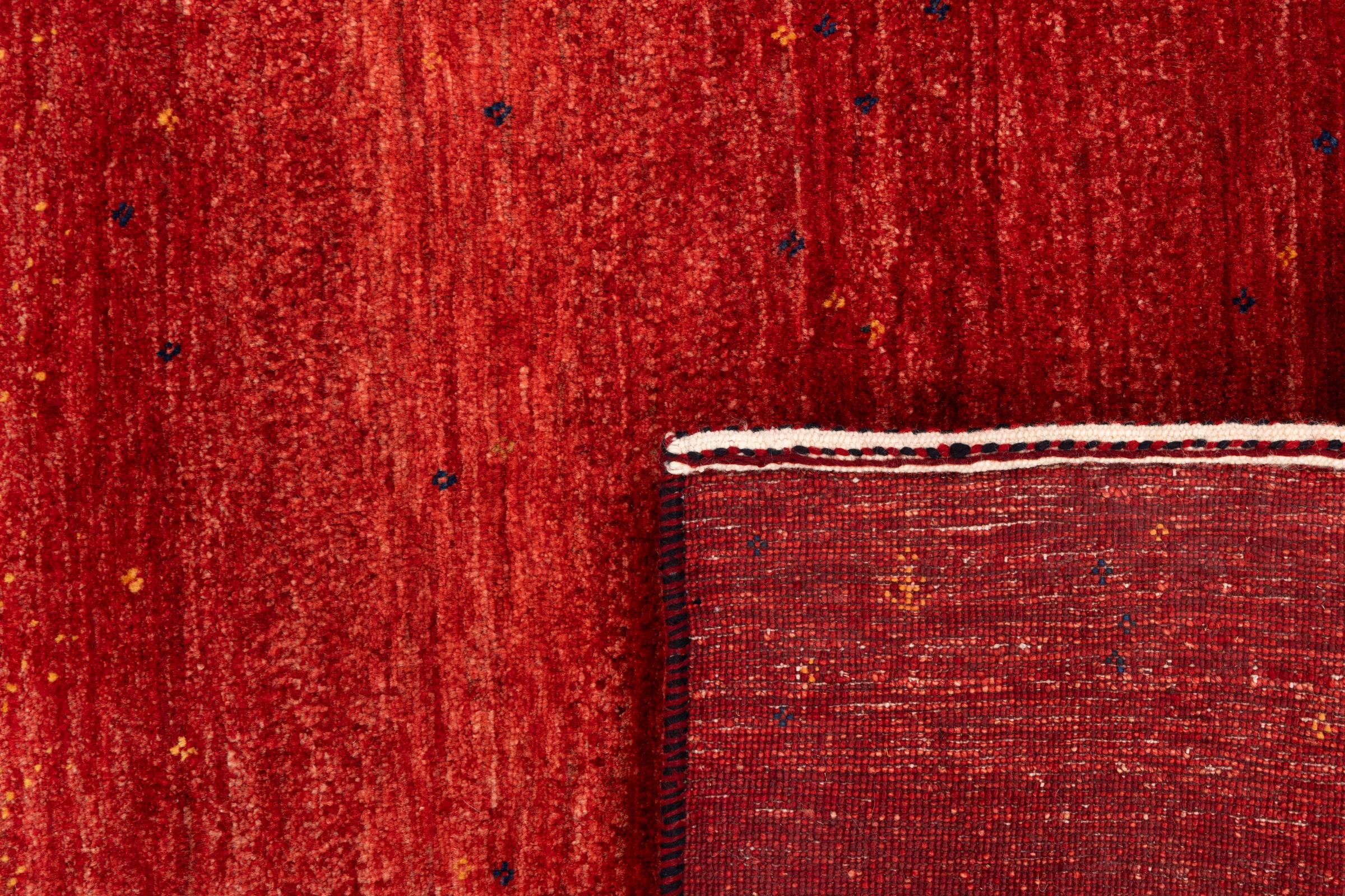 Ten piękny dywan jest perskim Gabbeh i dlatego należy do najwyższej jakości dywanów Gabbeh. Dywany są wiązane przez nomadów lub pół-nomadzi w Iranie zgodnie z tradycyjnym rzemiosłem. Proste motywy i wzory są w większości inspirowane bezpośrednim otoczeniem nomadów. Na przykład wielbłądy, drzewa lub krzewy można znaleźć na tradycyjnych dywanach. Perskie dywany Gabbeh wykonane są z wełny pochodzącej z lokalnie hodowanych stad owiec. Wełna jest więc w większości przypadków nadal obracana ręcznie. Tak więc każdy z tych orientalnych dywanów uosabia unikalny charakter wielowiekowej kultury.