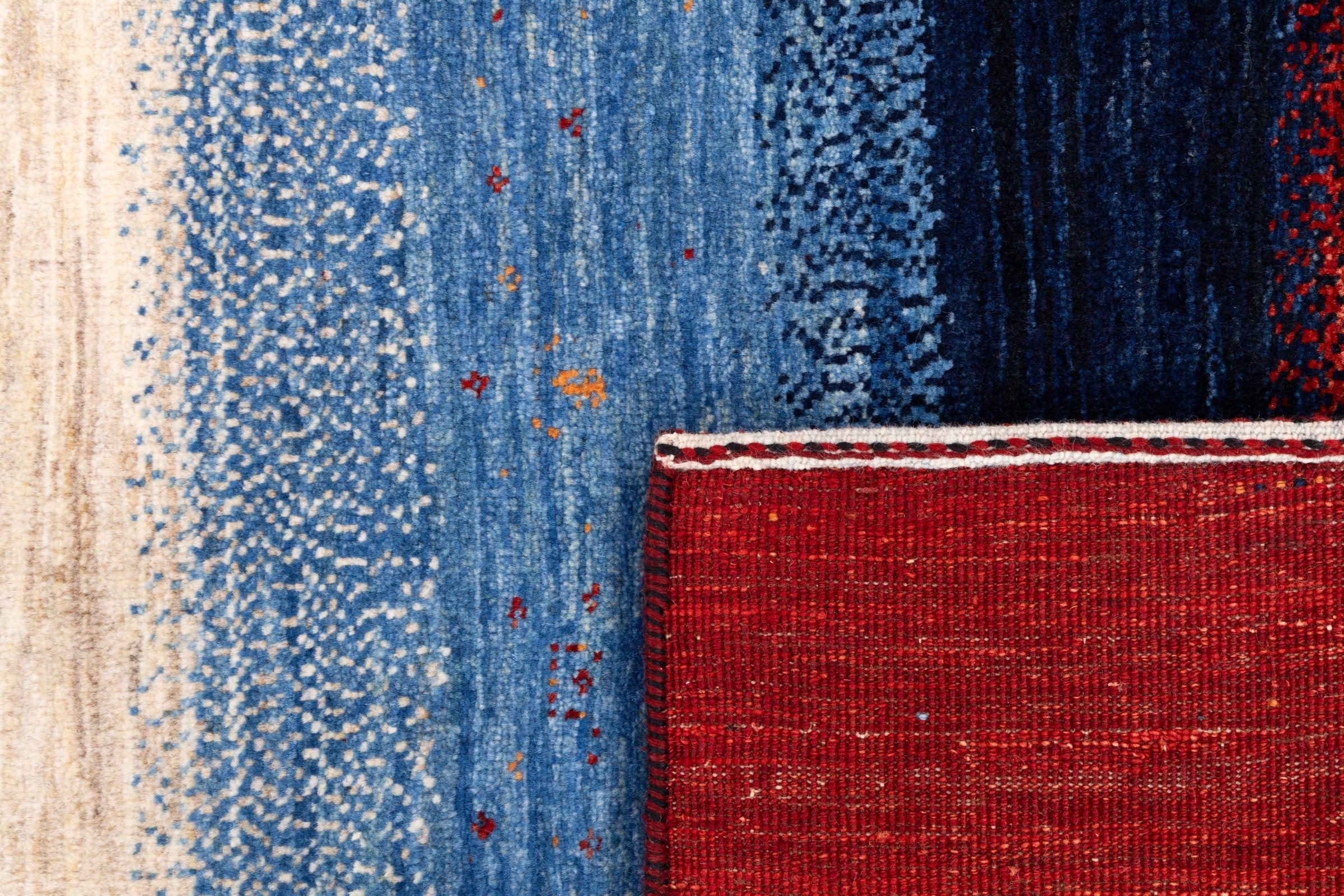 Ten piękny dywan jest perskim Gabbeh i dlatego należy do najwyższej jakości dywanów Gabbeh. Dywany są wiązane przez nomadów lub pół-nomadzi w Iranie zgodnie z tradycyjnym rzemiosłem. Proste motywy i wzory są w większości inspirowane bezpośrednim otoczeniem nomadów. Na przykład wielbłądy, drzewa lub krzewy można znaleźć na tradycyjnych dywanach. Perskie dywany Gabbeh wykonane są z wełny pochodzącej z lokalnie hodowanych stad owiec. Wełna jest więc w większości przypadków nadal obracana ręcznie. Tak więc każdy z tych orientalnych dywanów uosabia unikalny charakter wielowiekowej kultury.