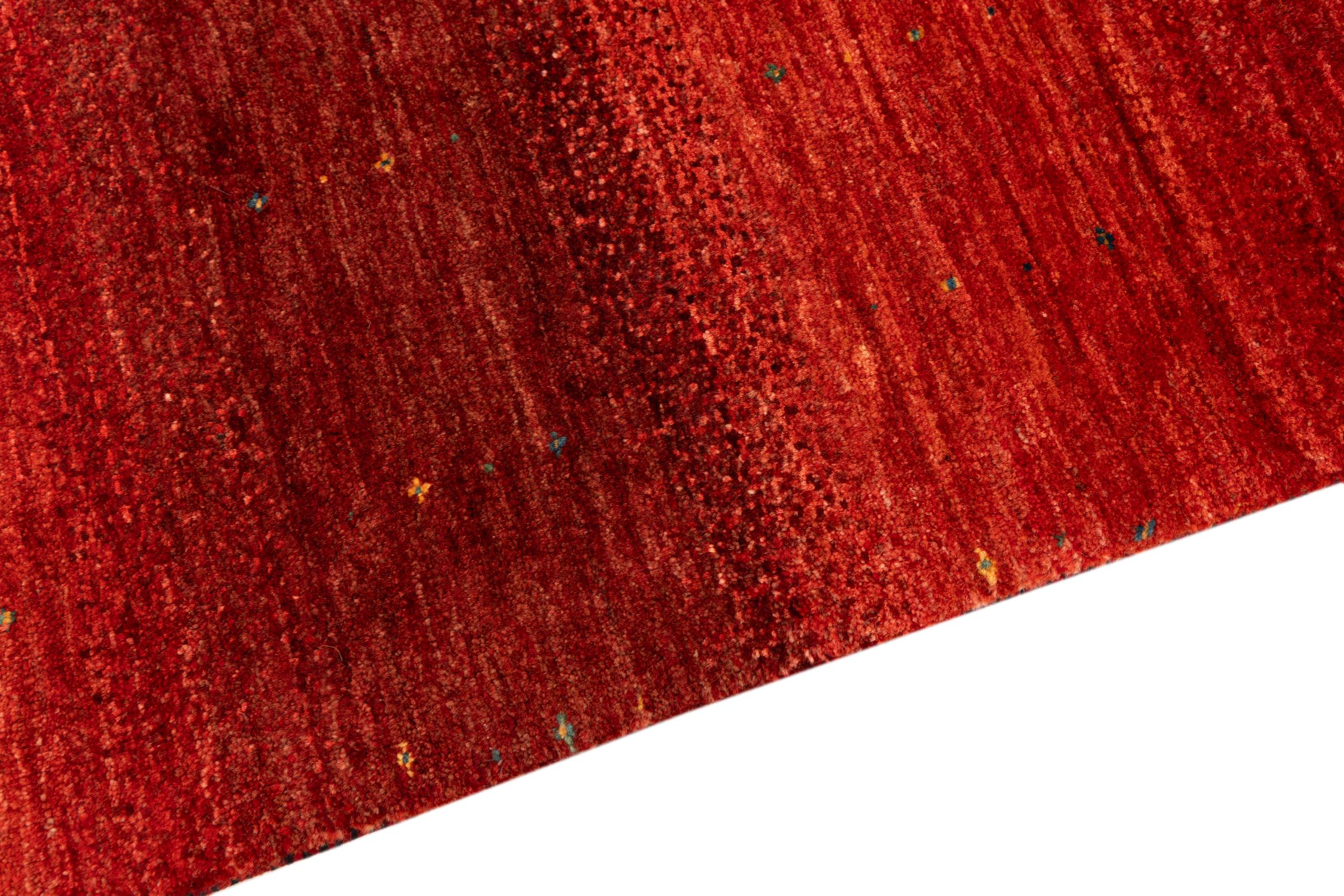 Ten piękny dywan jest perskim Gabbeh i dlatego należy do najwyższej jakości dywanów Gabbeh. Dywany są wiązane przez nomadów lub pół-nomadzi w Iranie zgodnie z tradycyjnym rzemiosłem. Proste motywy i wzory są w większości inspirowane bezpośrednim otoczeniem nomadów. Na przykład wielbłądy, drzewa lub krzewy można znaleźć na tradycyjnych dywanach. Perskie dywany Gabbeh wykonane są z wełny pochodzącej z lokalnie hodowanych stad owiec. Wełna jest więc w większości przypadków nadal obracana ręcznie. Tak więc każdy z tych orientalnych dywanów uosabia unikalny charakter wielowiekowej kultury.