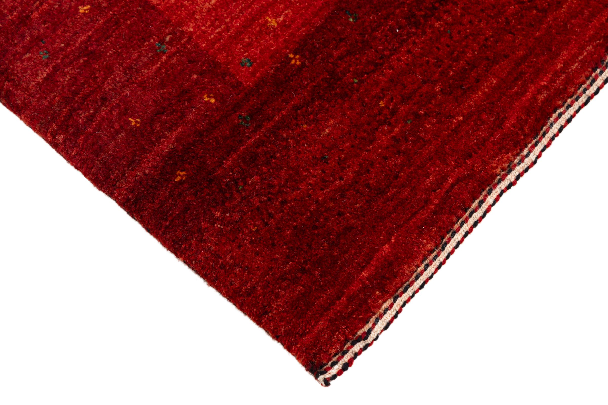Ten piękny dywan jest perskim Gabbeh i dlatego należy do najwyższej jakości dywanów Gabbeh. Dywany są wiązane przez nomadów lub pół-nomadzi w Iranie zgodnie z tradycyjnym rzemiosłem. Proste motywy i wzory są w większości inspirowane bezpośrednim otoczeniem nomadów. Na przykład wielbłądy, drzewa lub krzewy można znaleźć na tradycyjnych dywanach. Perskie dywany Gabbeh wykonane są z wełny pochodzącej z lokalnie hodowanych stad owiec. Wełna jest więc w większości przypadków nadal obracana ręcznie. Tak więc każdy z tych orientalnych dywanów uosabia unikalny charakter wielowiekowej kultury.