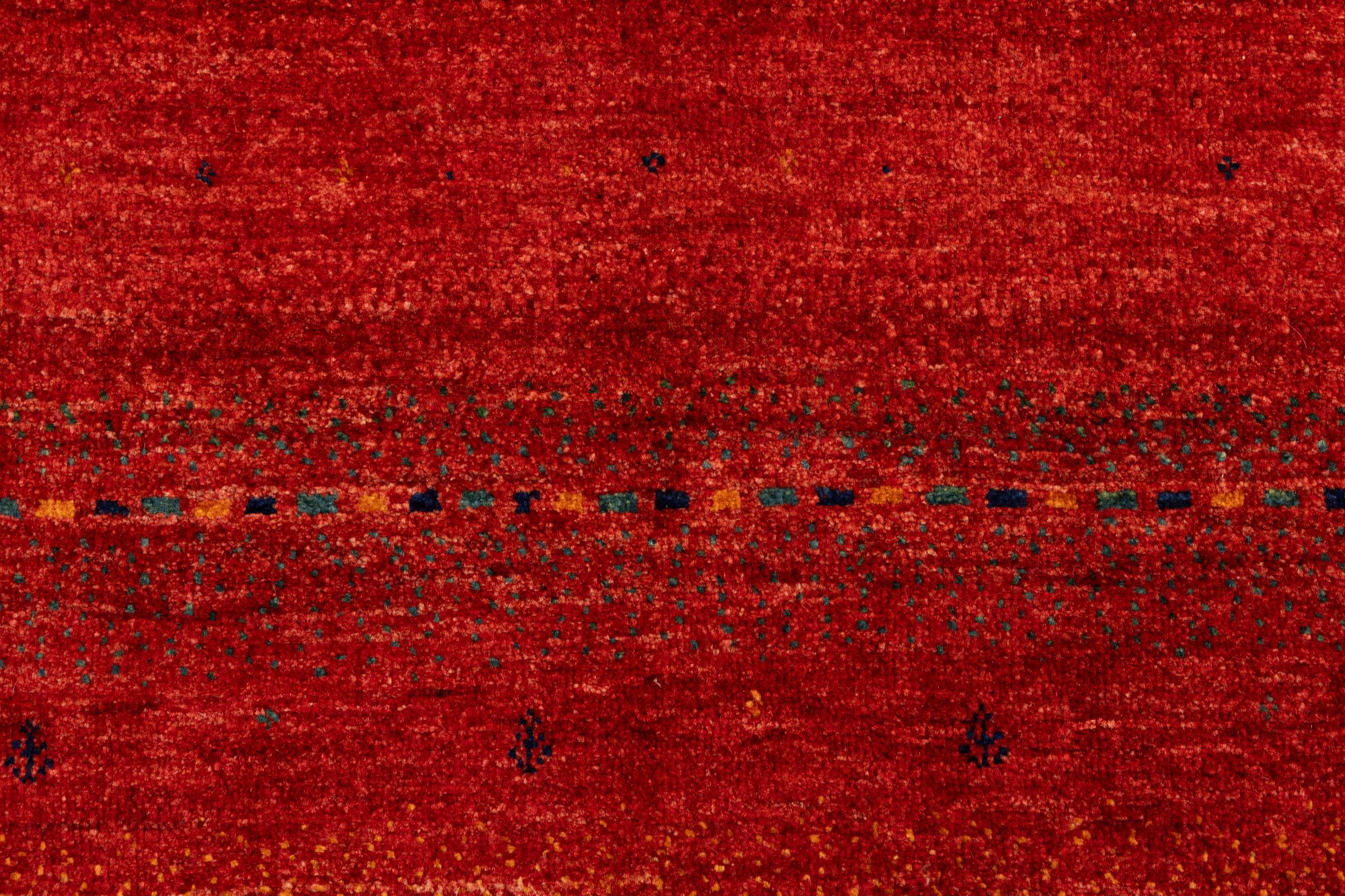 Ten piękny dywan jest perskim Gabbeh i dlatego należy do najwyższej jakości dywanów Gabbeh. Dywany są wiązane przez nomadów lub pół-nomadzi w Iranie zgodnie z tradycyjnym rzemiosłem. Proste motywy i wzory są w większości inspirowane bezpośrednim otoczeniem nomadów. Na przykład wielbłądy, drzewa lub krzewy można znaleźć na tradycyjnych dywanach. Perskie dywany Gabbeh wykonane są z wełny pochodzącej z lokalnie hodowanych stad owiec. Wełna jest więc w większości przypadków nadal obracana ręcznie. Tak więc każdy z tych orientalnych dywanów uosabia unikalny charakter wielowiekowej kultury.