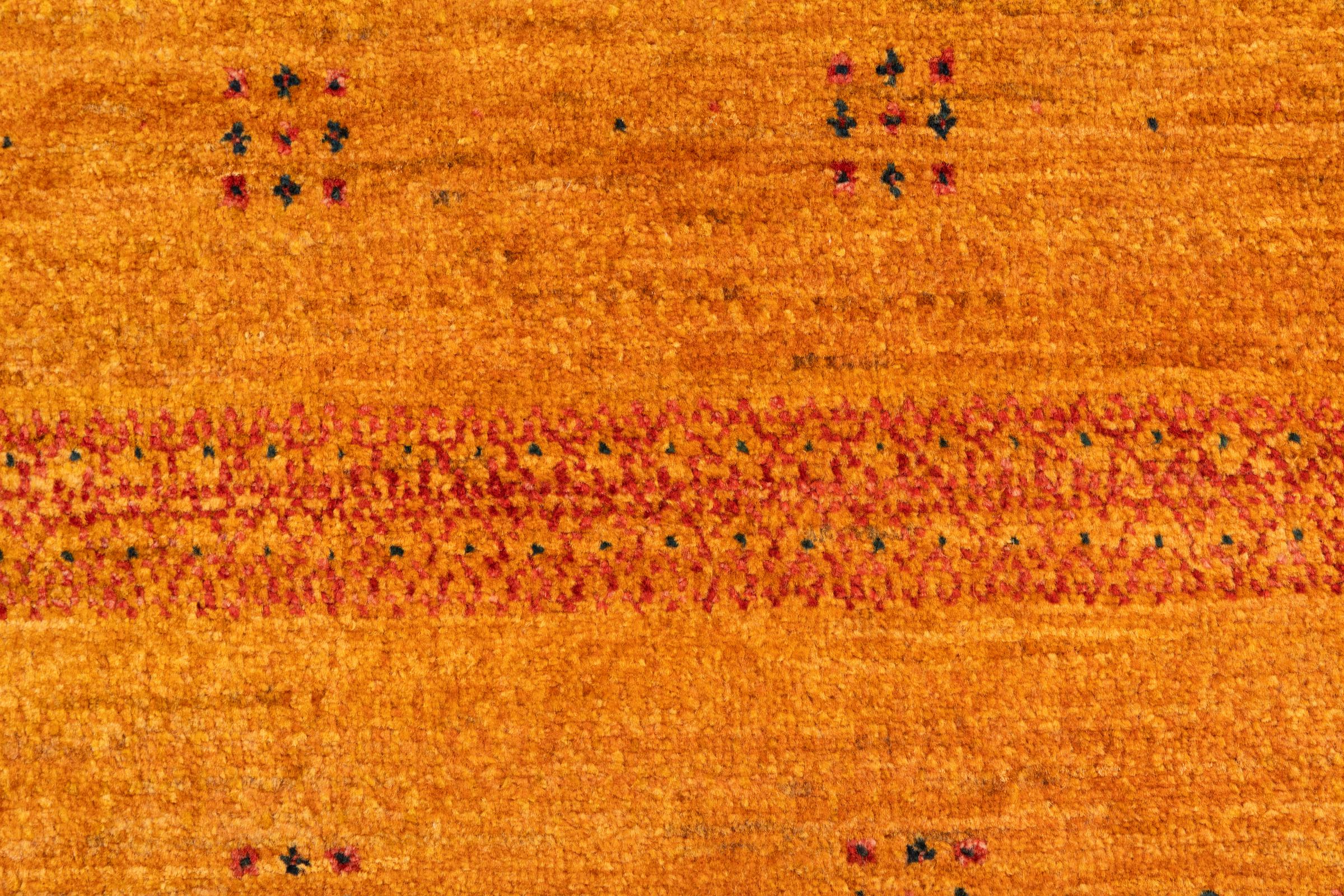 Ten piękny dywan jest perskim Gabbeh i dlatego należy do najwyższej jakości dywanów Gabbeh. Dywany są wiązane przez nomadów lub pół-nomadzi w Iranie zgodnie z tradycyjnym rzemiosłem. Proste motywy i wzory są w większości inspirowane bezpośrednim otoczeniem nomadów. Na przykład wielbłądy, drzewa lub krzewy można znaleźć na tradycyjnych dywanach. Perskie dywany Gabbeh wykonane są z wełny pochodzącej z lokalnie hodowanych stad owiec. Wełna jest więc w większości przypadków nadal obracana ręcznie. Tak więc każdy z tych orientalnych dywanów uosabia unikalny charakter wielowiekowej kultury.