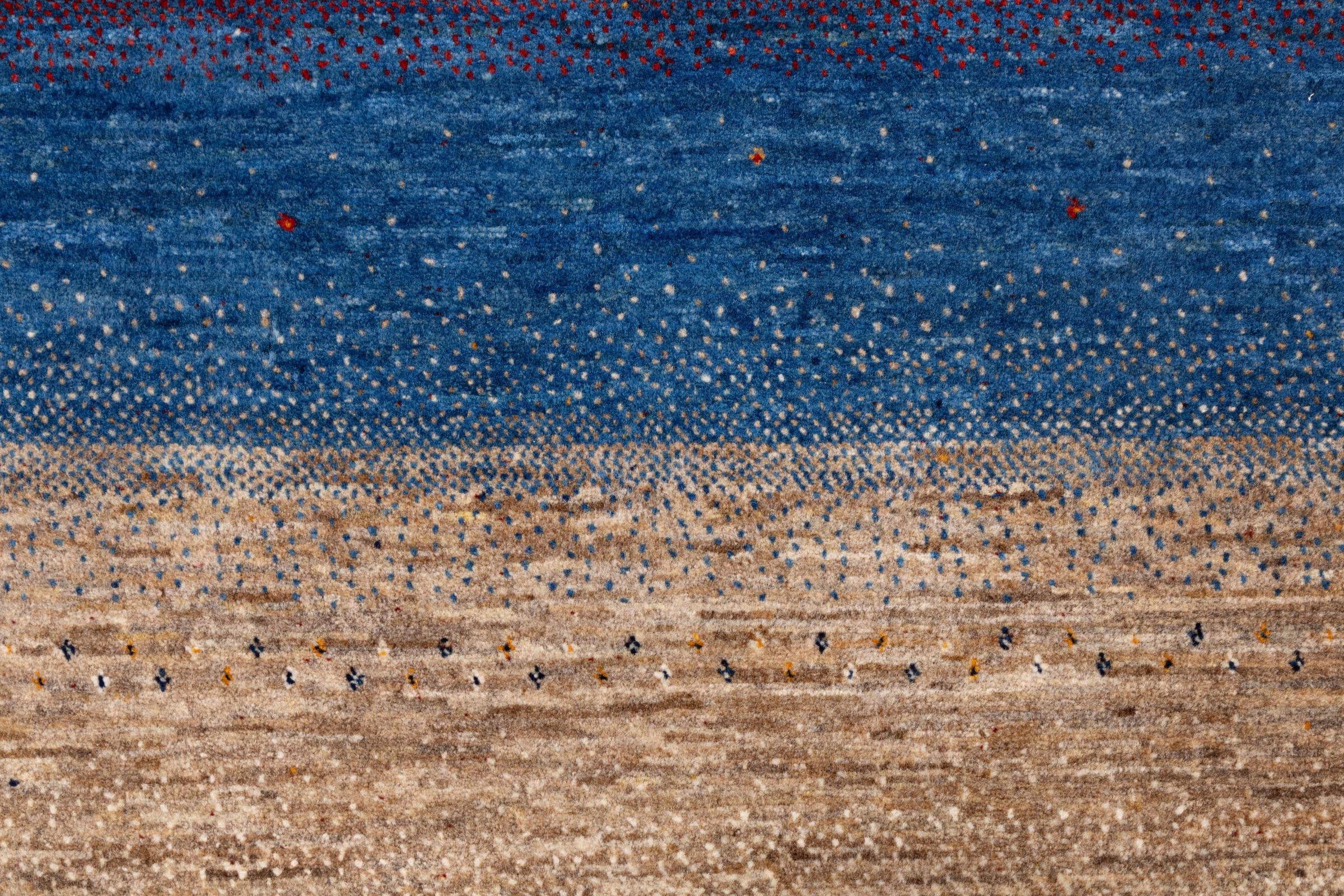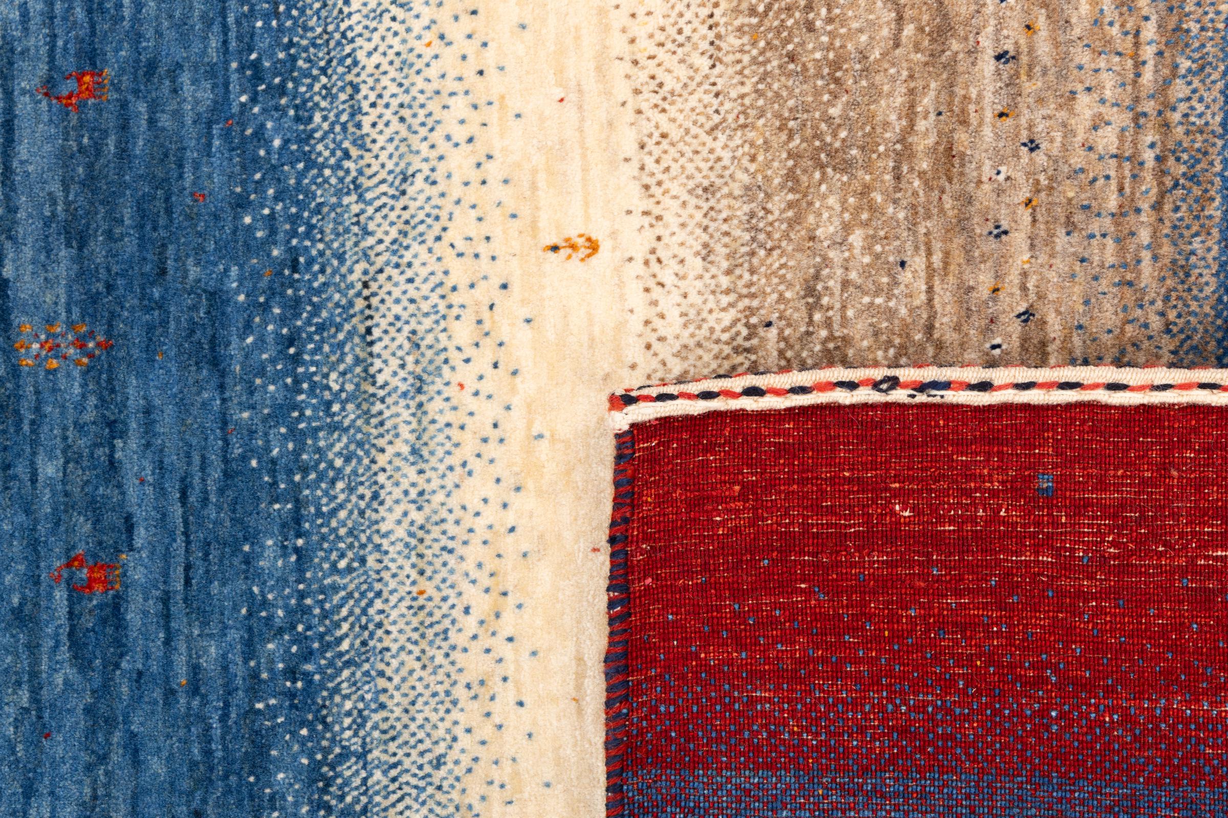 Ten piękny dywan jest perskim Gabbeh i dlatego należy do najwyższej jakości dywanów Gabbeh. Dywany są wiązane przez nomadów lub pół-nomadzi w Iranie zgodnie z tradycyjnym rzemiosłem. Proste motywy i wzory są w większości inspirowane bezpośrednim otoczeniem nomadów. Na przykład wielbłądy, drzewa lub krzewy można znaleźć na tradycyjnych dywanach. Perskie dywany Gabbeh wykonane są z wełny pochodzącej z lokalnie hodowanych stad owiec. Wełna jest więc w większości przypadków nadal obracana ręcznie. Tak więc każdy z tych orientalnych dywanów uosabia unikalny charakter wielowiekowej kultury.