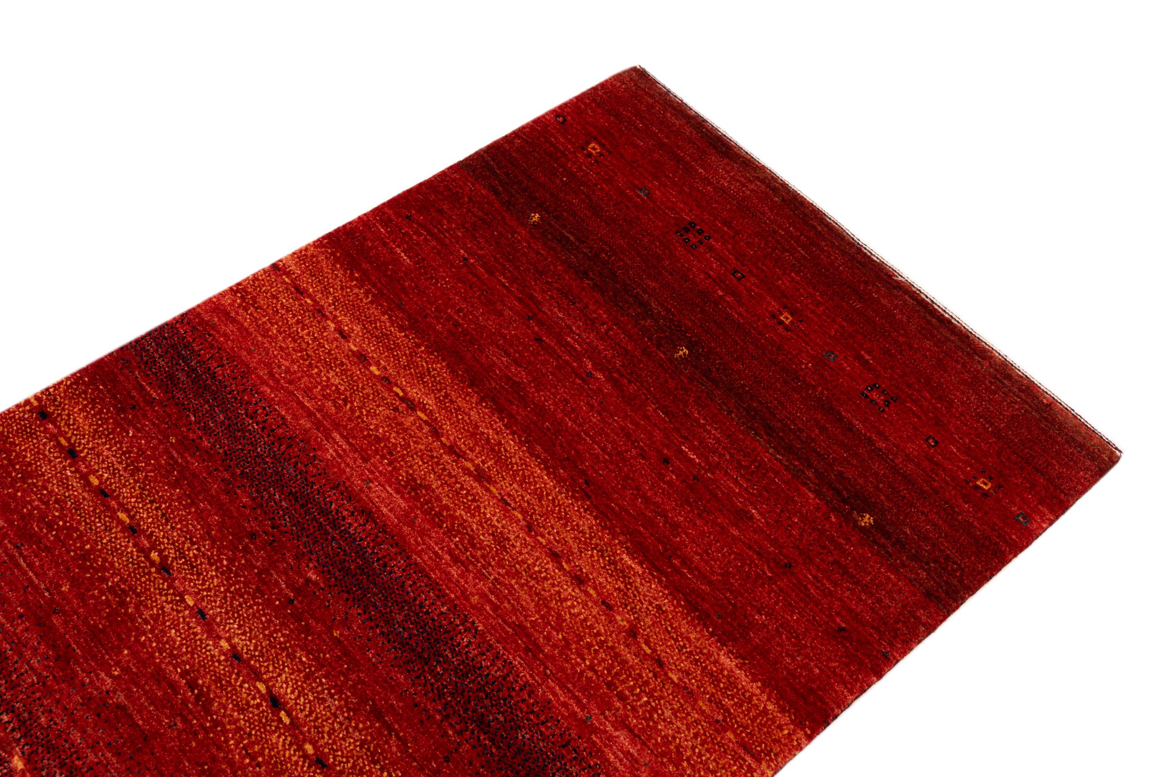 Ten piękny dywan jest perskim Gabbeh i dlatego należy do najwyższej jakości dywanów Gabbeh. Dywany są wiązane przez nomadów lub pół-nomadzi w Iranie zgodnie z tradycyjnym rzemiosłem. Proste motywy i wzory są w większości inspirowane bezpośrednim otoczeniem nomadów. Na przykład wielbłądy, drzewa lub krzewy można znaleźć na tradycyjnych dywanach. Perskie dywany Gabbeh wykonane są z wełny pochodzącej z lokalnie hodowanych stad owiec. Wełna jest więc w większości przypadków nadal obracana ręcznie. Tak więc każdy z tych orientalnych dywanów uosabia unikalny charakter wielowiekowej kultury.