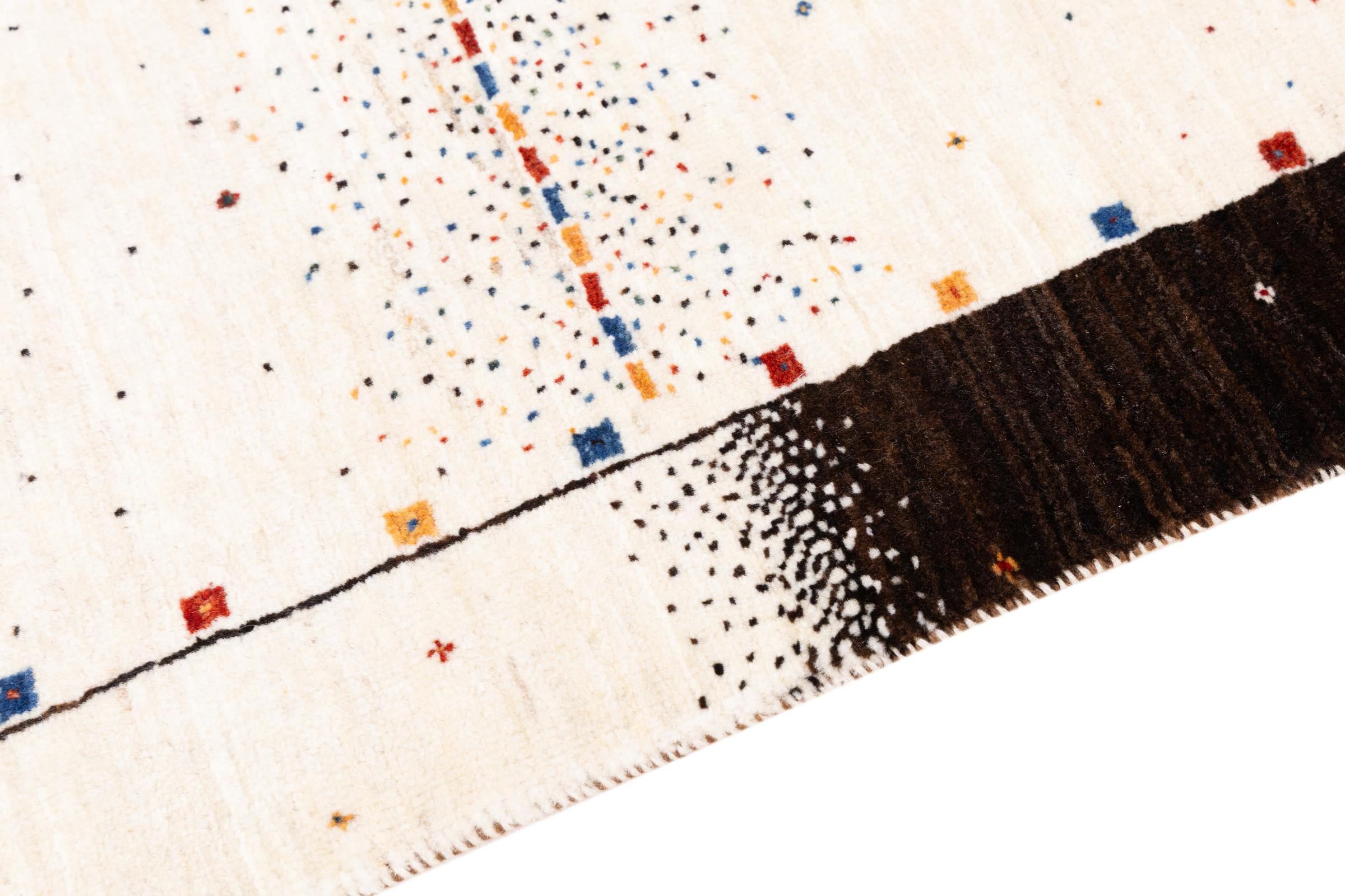Ten piękny dywan jest perskim Gabbeh i dlatego należy do najwyższej jakości dywanów Gabbeh. Dywany są wiązane przez nomadów lub pół-nomadzi w Iranie zgodnie z tradycyjnym rzemiosłem. Proste motywy i wzory są w większości inspirowane bezpośrednim otoczeniem nomadów. Na przykład wielbłądy, drzewa lub krzewy można znaleźć na tradycyjnych dywanach. Perskie dywany Gabbeh wykonane są z wełny pochodzącej z lokalnie hodowanych stad owiec. Wełna jest więc w większości przypadków nadal obracana ręcznie. Tak więc każdy z tych orientalnych dywanów uosabia unikalny charakter wielowiekowej kultury.