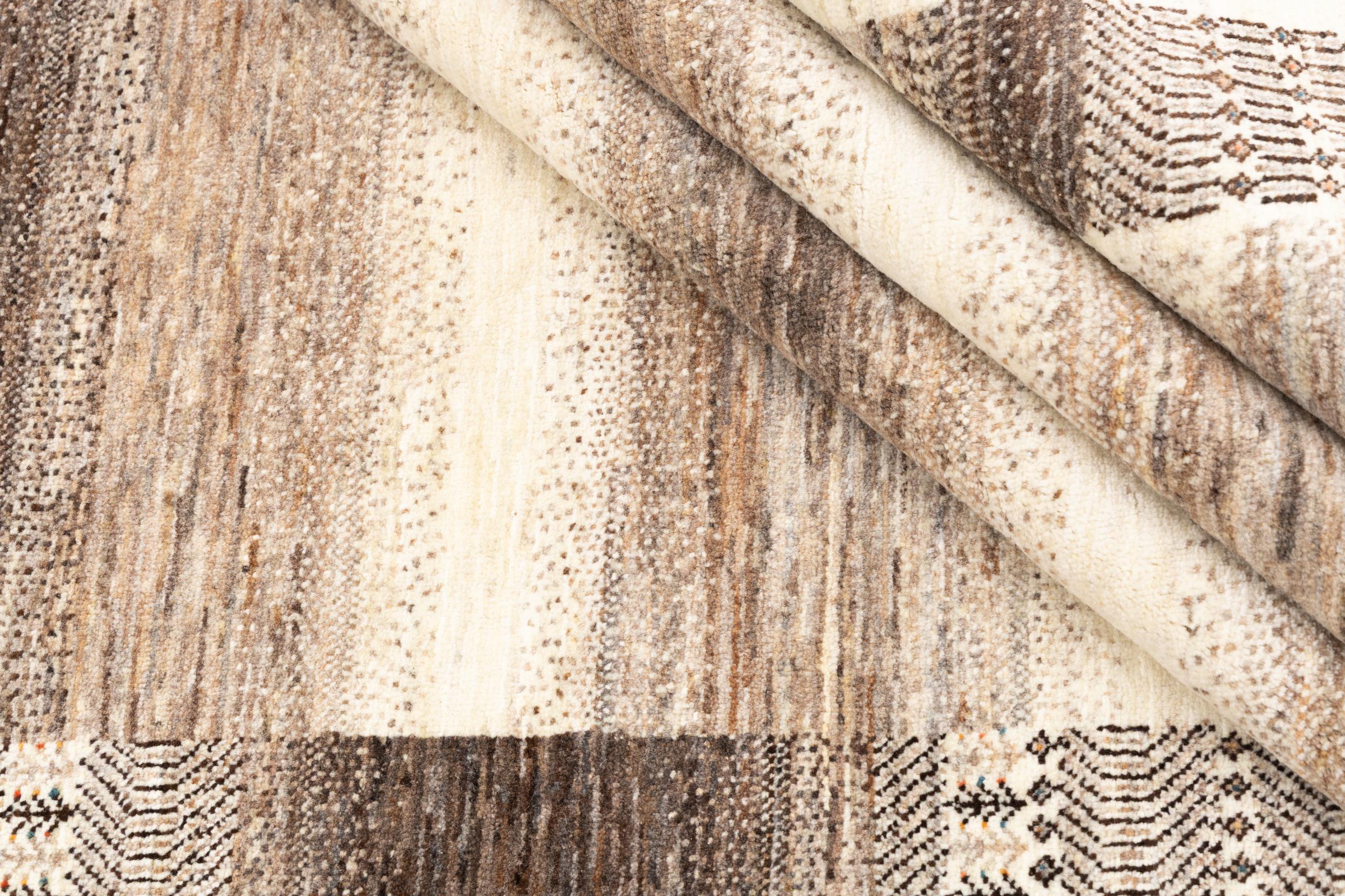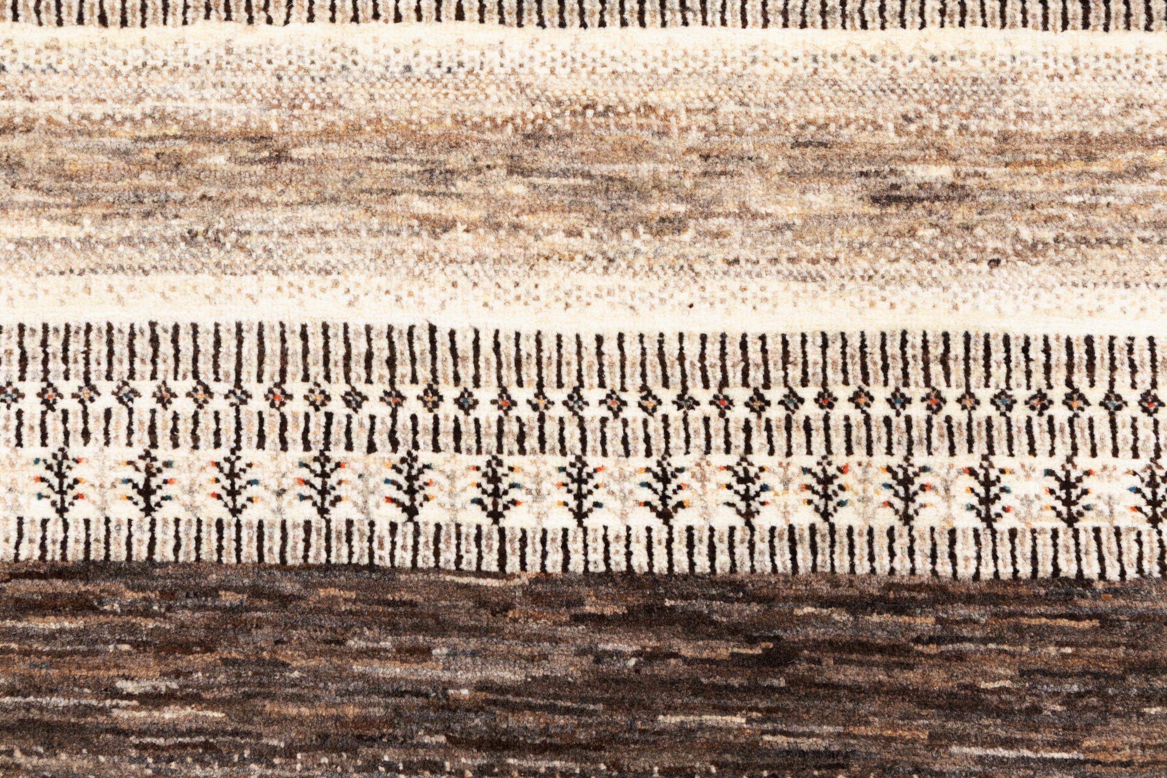 Ten piękny dywan jest perskim Gabbeh i dlatego należy do najwyższej jakości dywanów Gabbeh. Dywany są wiązane przez nomadów lub pół-nomadzi w Iranie zgodnie z tradycyjnym rzemiosłem. Proste motywy i wzory są w większości inspirowane bezpośrednim otoczeniem nomadów. Na przykład wielbłądy, drzewa lub krzewy można znaleźć na tradycyjnych dywanach. Perskie dywany Gabbeh wykonane są z wełny pochodzącej z lokalnie hodowanych stad owiec. Wełna jest więc w większości przypadków nadal obracana ręcznie. Tak więc każdy z tych orientalnych dywanów uosabia unikalny charakter wielowiekowej kultury.