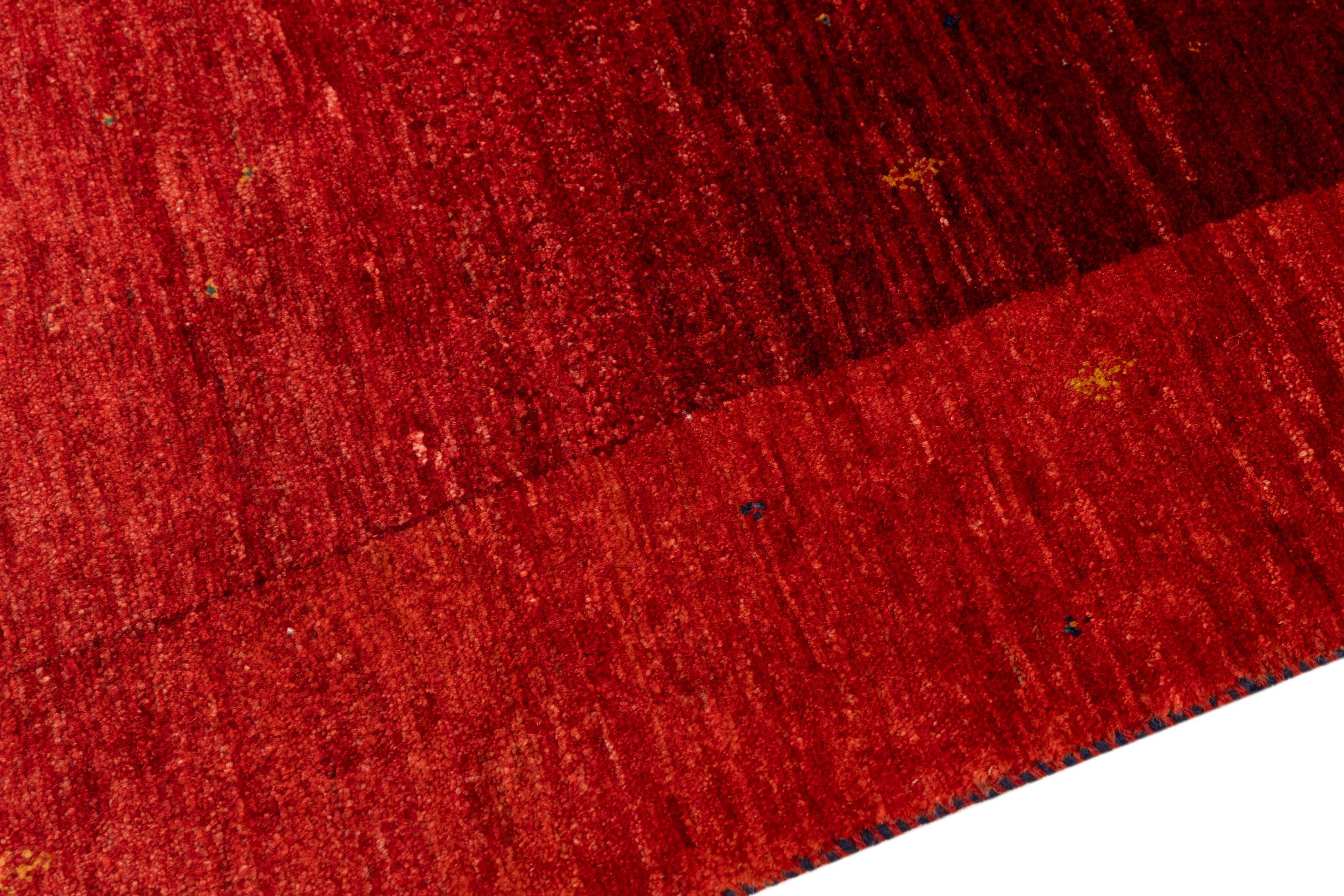 Ten piękny dywan jest perskim Gabbeh i dlatego należy do najwyższej jakości dywanów Gabbeh. Dywany są wiązane przez nomadów lub pół-nomadzi w Iranie zgodnie z tradycyjnym rzemiosłem. Proste motywy i wzory są w większości inspirowane bezpośrednim otoczeniem nomadów. Na przykład wielbłądy, drzewa lub krzewy można znaleźć na tradycyjnych dywanach. Perskie dywany Gabbeh wykonane są z wełny pochodzącej z lokalnie hodowanych stad owiec. Wełna jest więc w większości przypadków nadal obracana ręcznie. Tak więc każdy z tych orientalnych dywanów uosabia unikalny charakter wielowiekowej kultury.