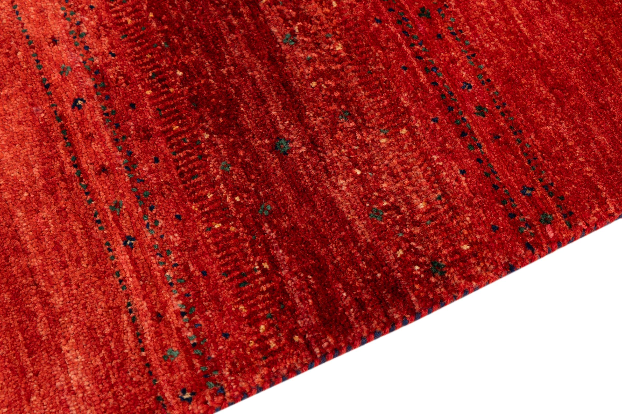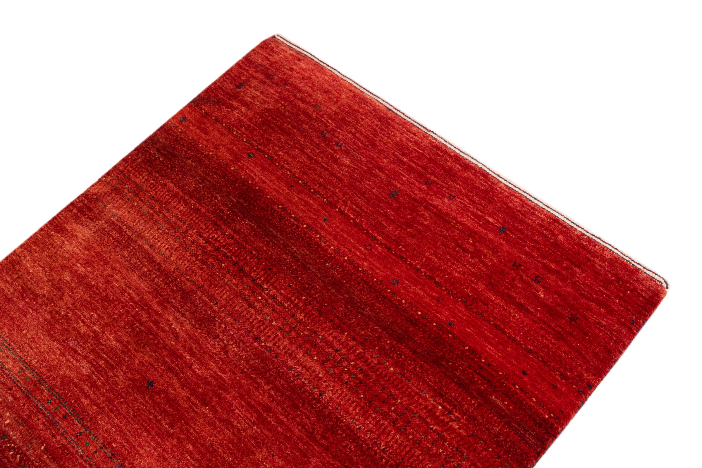 Ten piękny dywan jest perskim Gabbeh i dlatego należy do najwyższej jakości dywanów Gabbeh. Dywany są wiązane przez nomadów lub pół-nomadzi w Iranie zgodnie z tradycyjnym rzemiosłem. Proste motywy i wzory są w większości inspirowane bezpośrednim otoczeniem nomadów. Na przykład wielbłądy, drzewa lub krzewy można znaleźć na tradycyjnych dywanach. Perskie dywany Gabbeh wykonane są z wełny pochodzącej z lokalnie hodowanych stad owiec. Wełna jest więc w większości przypadków nadal obracana ręcznie. Tak więc każdy z tych orientalnych dywanów uosabia unikalny charakter wielowiekowej kultury.
