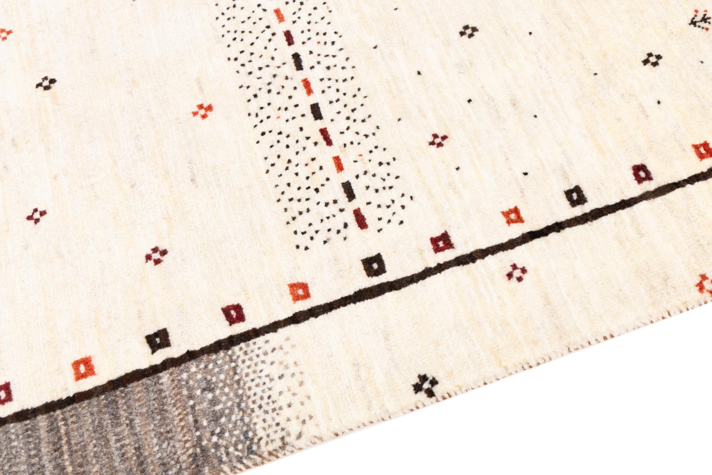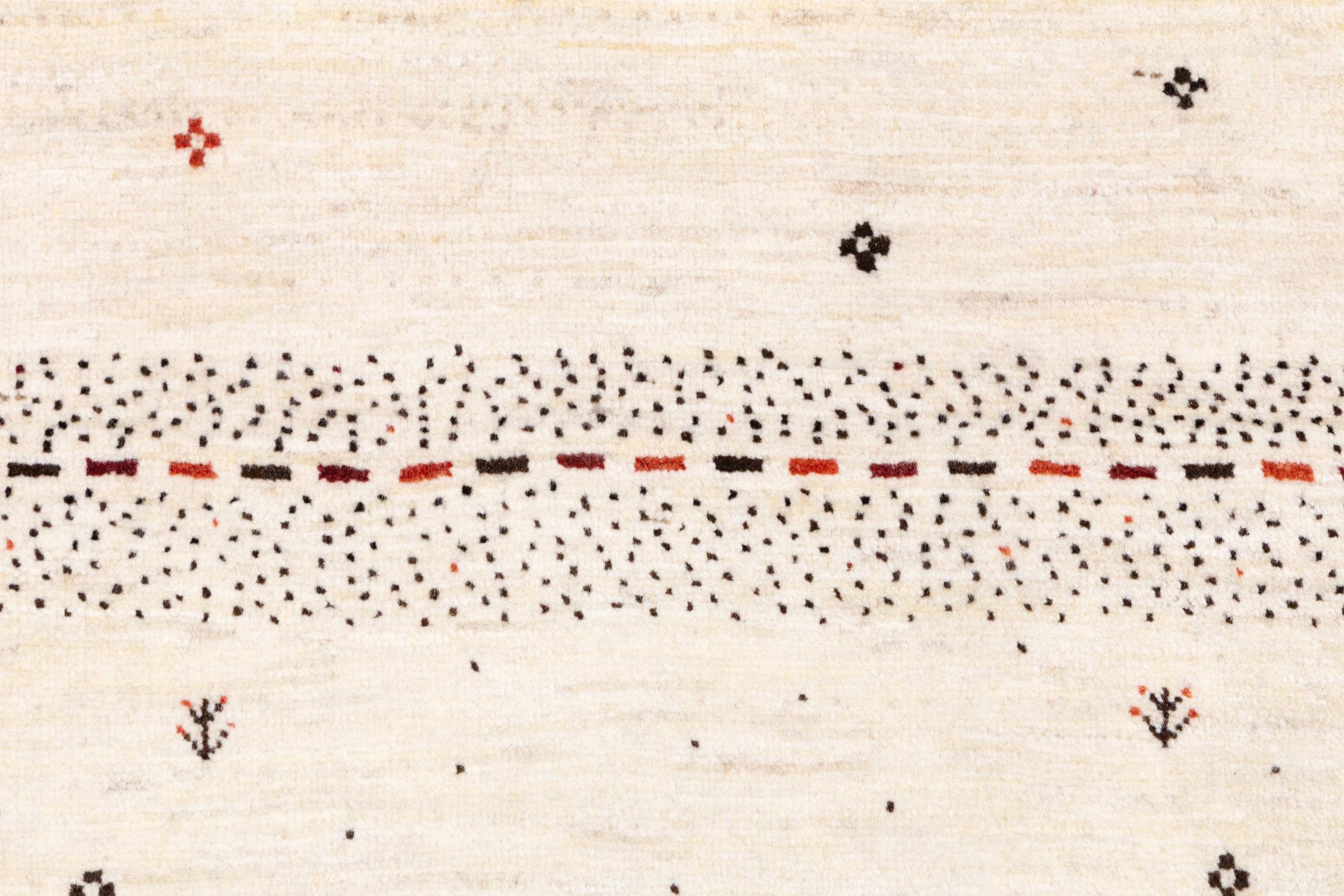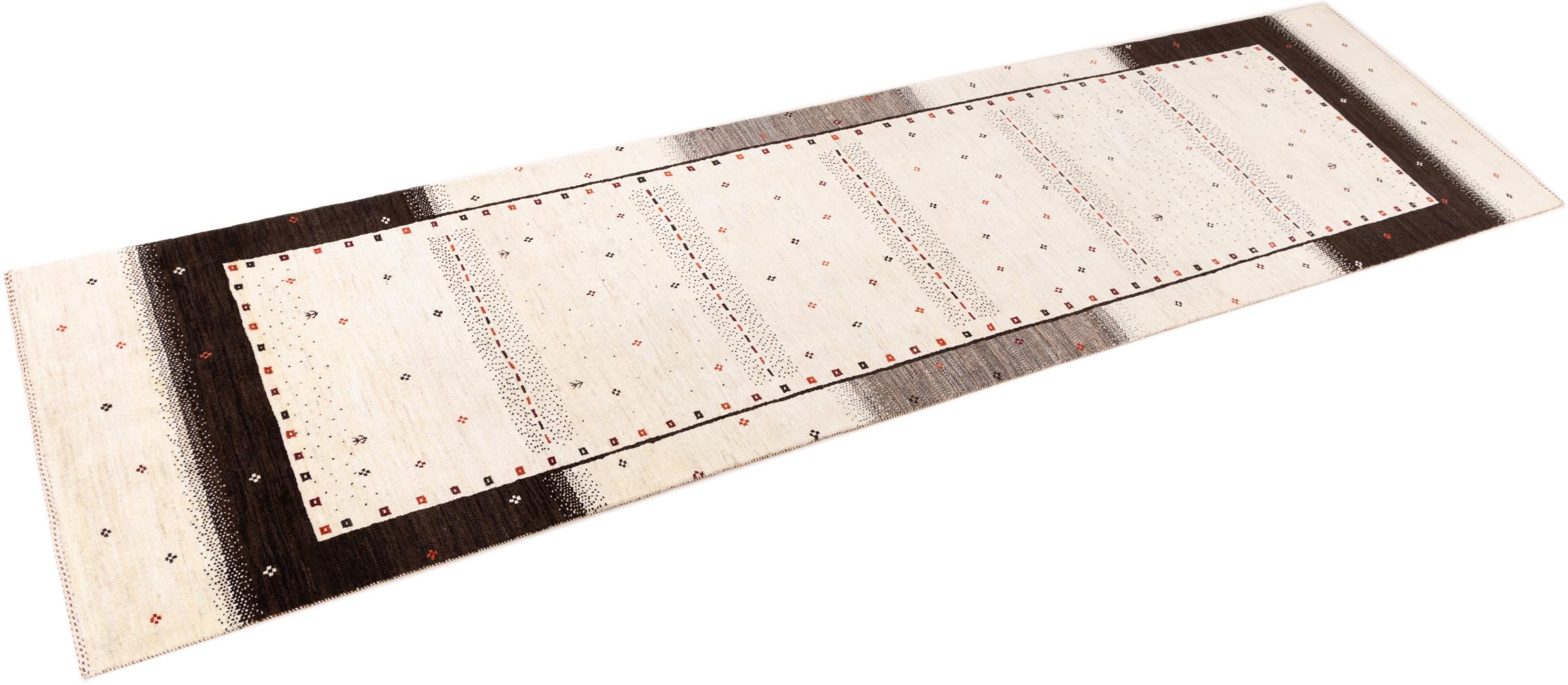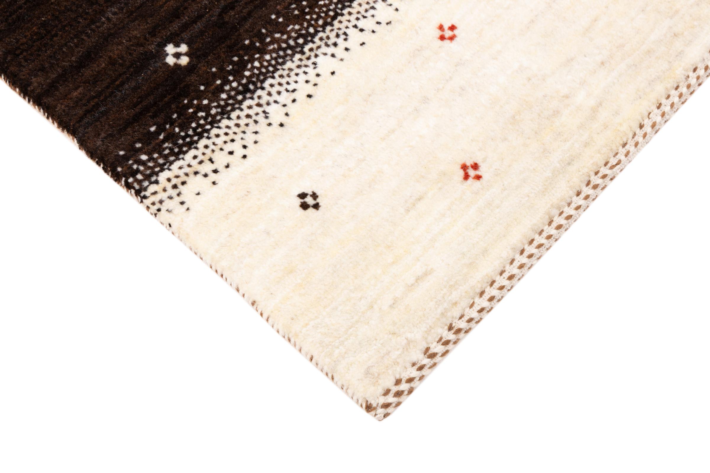 Ten piękny dywan jest perskim Gabbeh i dlatego należy do najwyższej jakości dywanów Gabbeh. Dywany są wiązane przez nomadów lub pół-nomadzi w Iranie zgodnie z tradycyjnym rzemiosłem. Proste motywy i wzory są w większości inspirowane bezpośrednim otoczeniem nomadów. Na przykład wielbłądy, drzewa lub krzewy można znaleźć na tradycyjnych dywanach. Perskie dywany Gabbeh wykonane są z wełny pochodzącej z lokalnie hodowanych stad owiec. Wełna jest więc w większości przypadków nadal obracana ręcznie. Tak więc każdy z tych orientalnych dywanów uosabia unikalny charakter wielowiekowej kultury.
