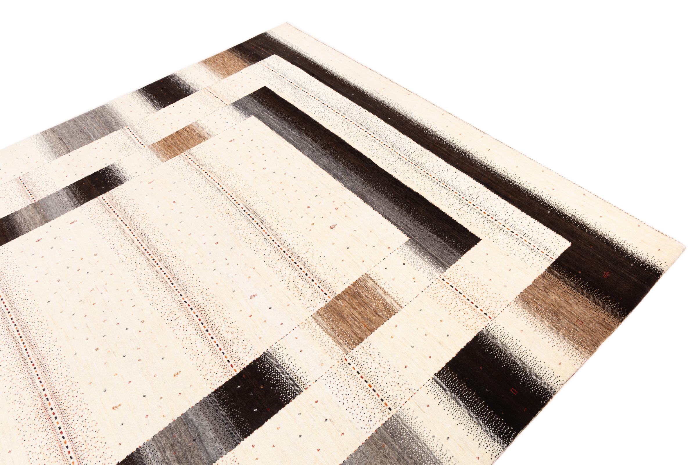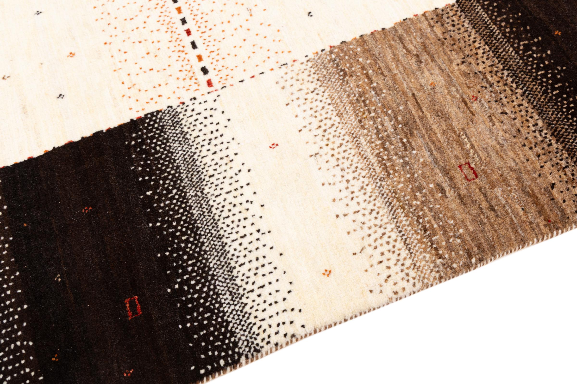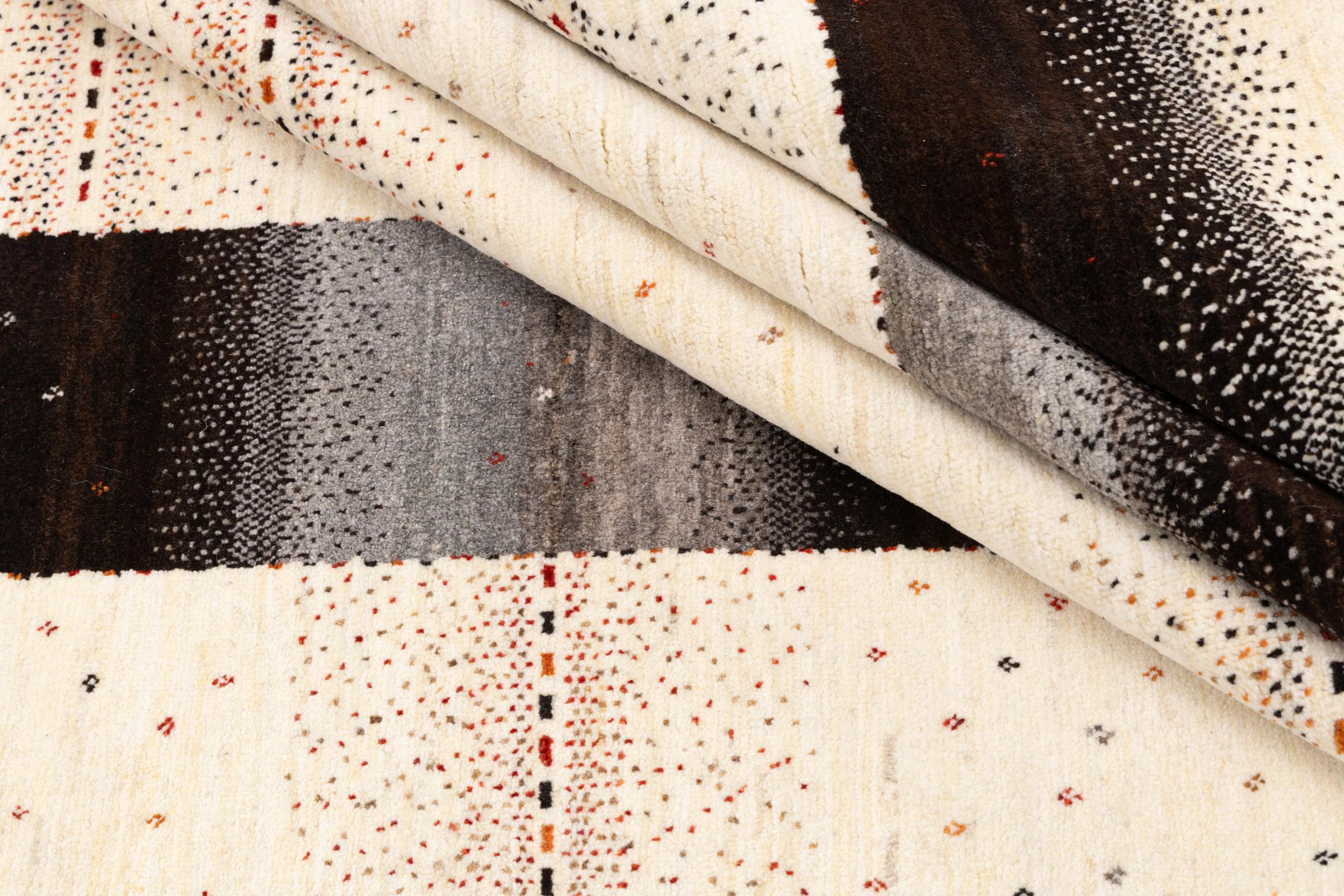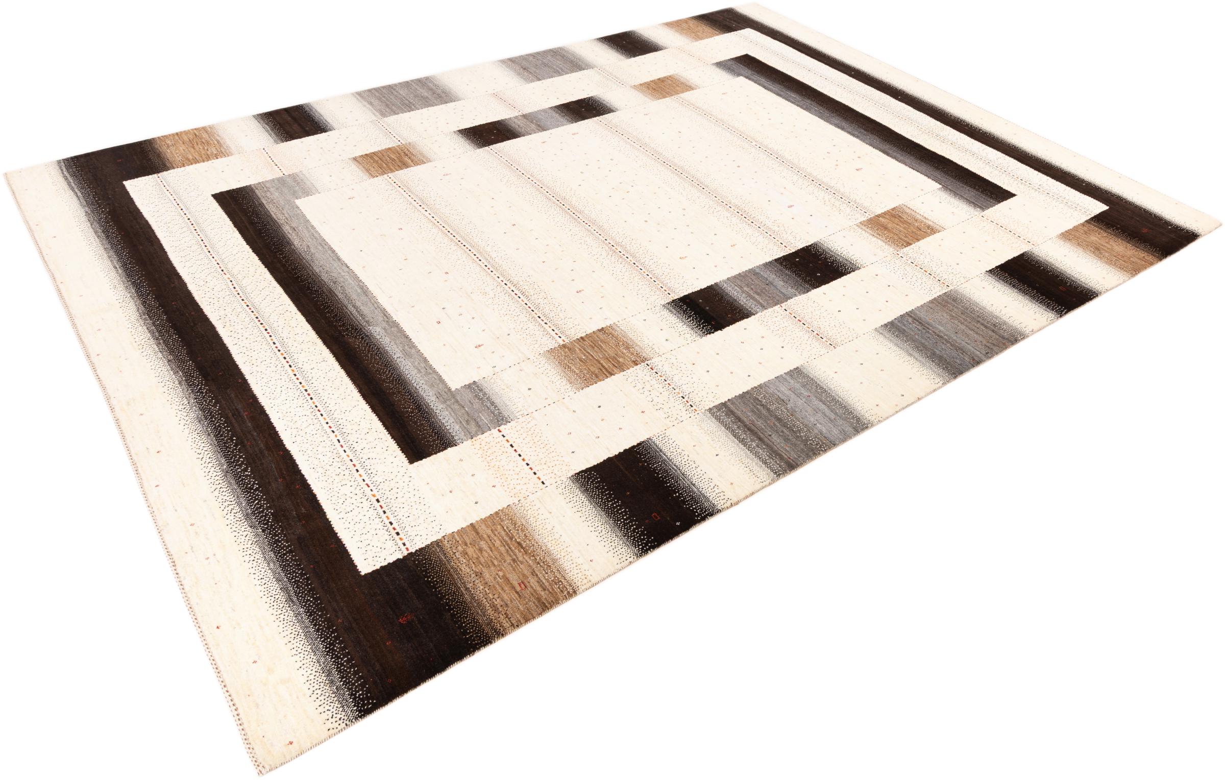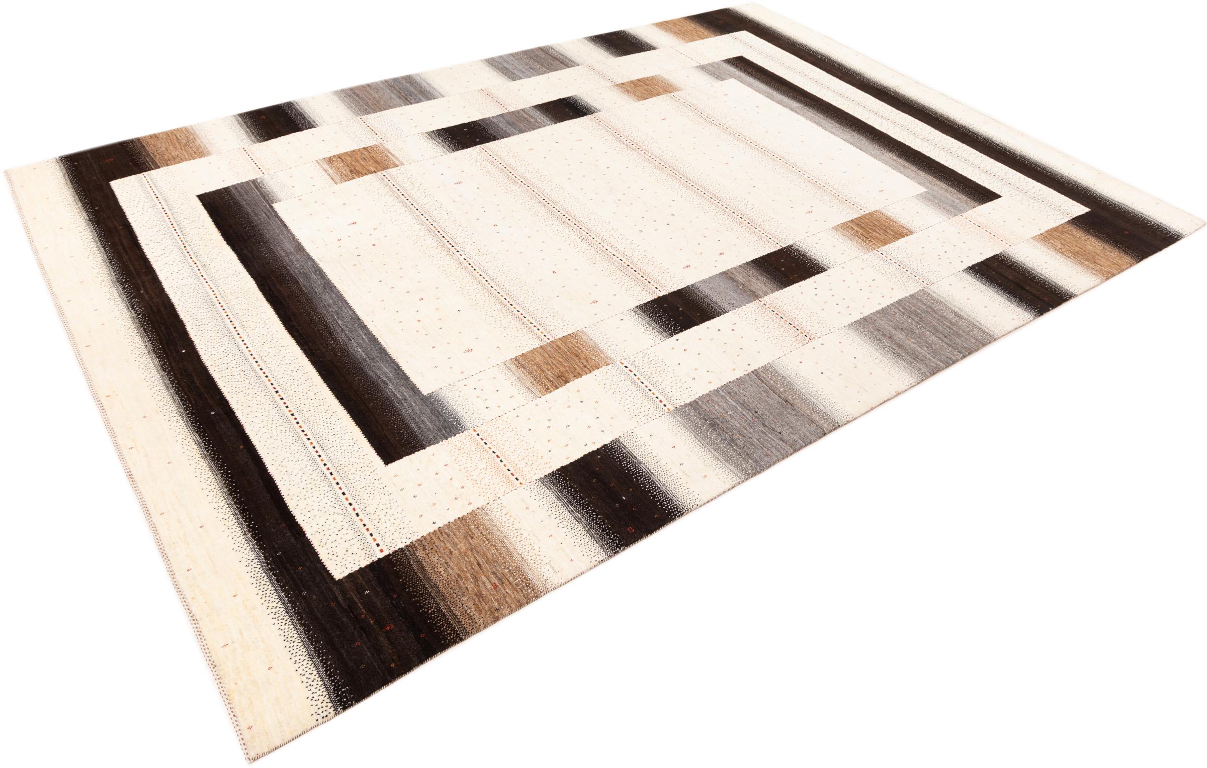 Ten piękny dywan jest perskim Gabbeh i dlatego należy do najwyższej jakości dywanów Gabbeh. Dywany są wiązane przez nomadów lub pół-nomadzi w Iranie zgodnie z tradycyjnym rzemiosłem. Proste motywy i wzory są w większości inspirowane bezpośrednim otoczeniem nomadów. Na przykład wielbłądy, drzewa lub krzewy można znaleźć na tradycyjnych dywanach. Perskie dywany Gabbeh wykonane są z wełny pochodzącej z lokalnie hodowanych stad owiec. Wełna jest więc w większości przypadków nadal obracana ręcznie. Tak więc każdy z tych orientalnych dywanów uosabia unikalny charakter wielowiekowej kultury.