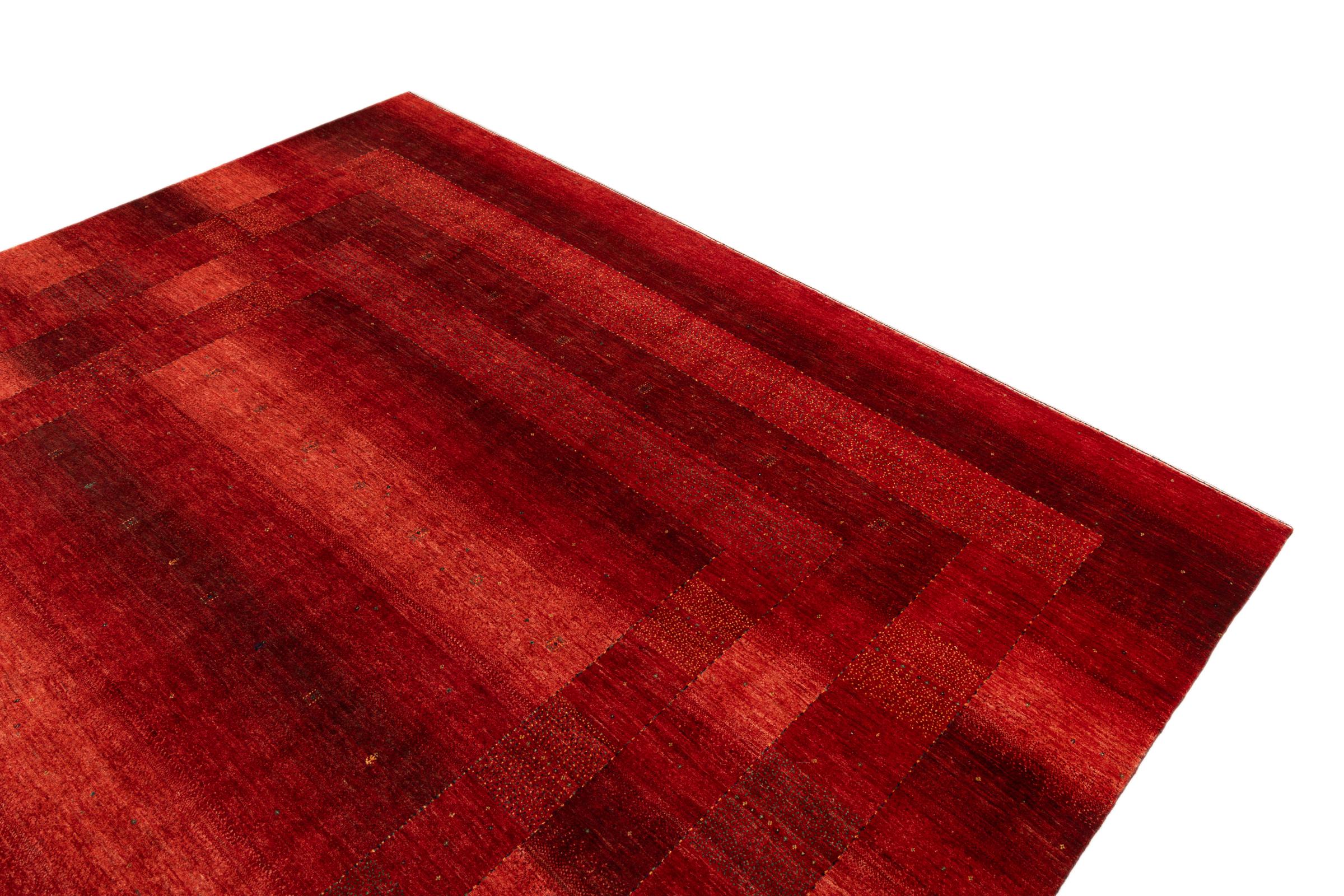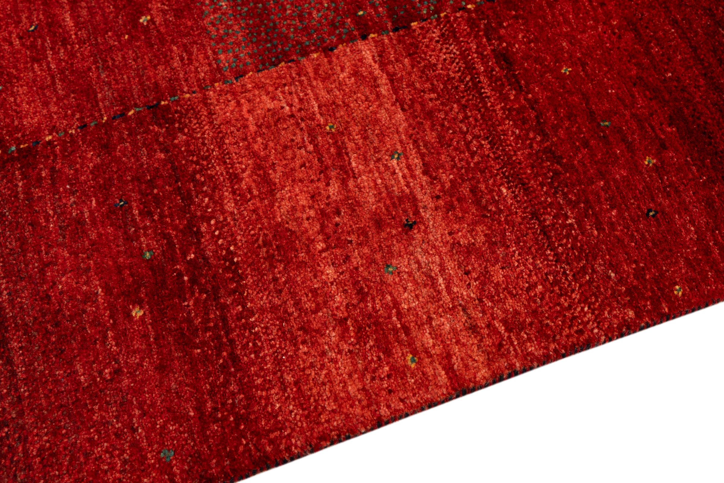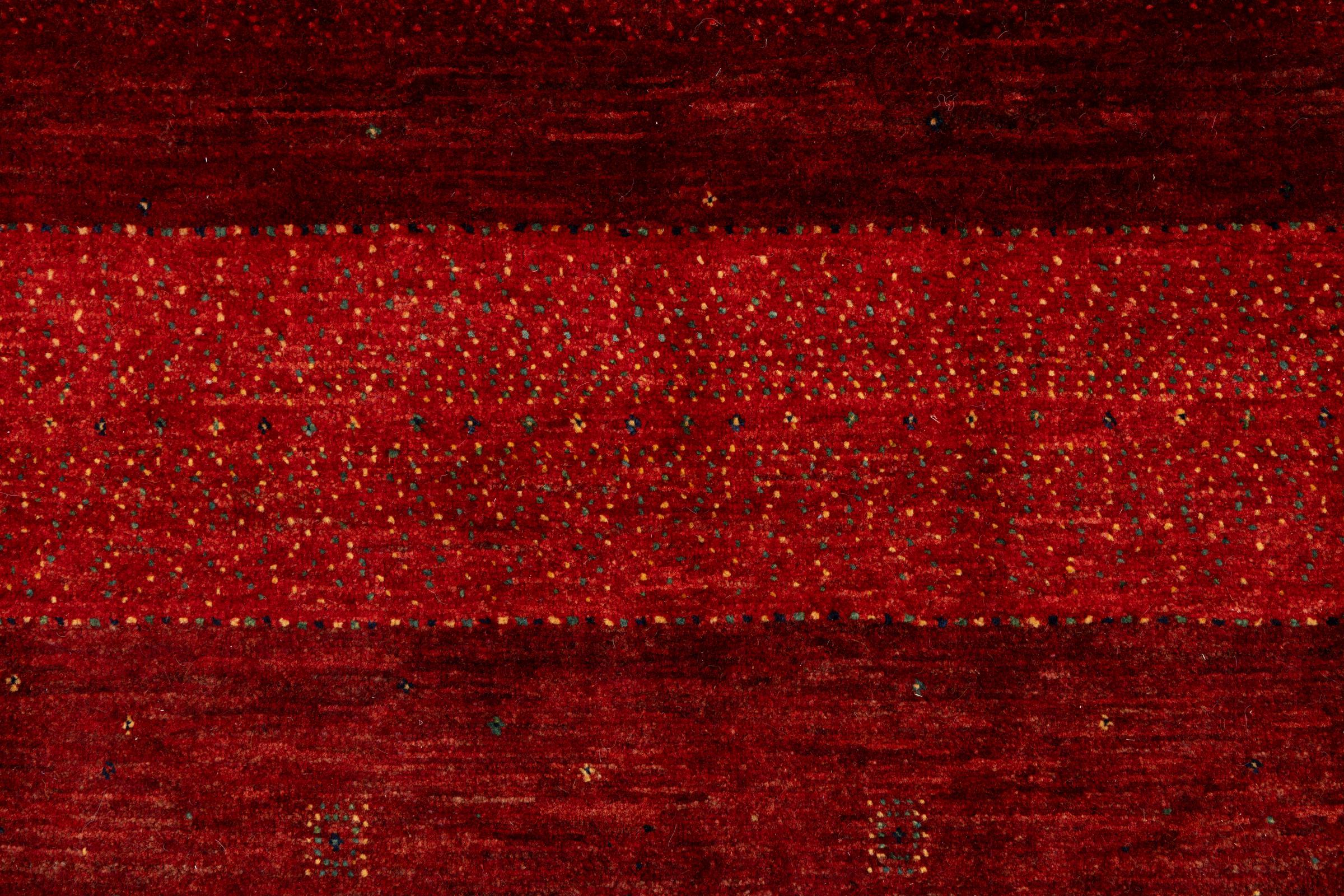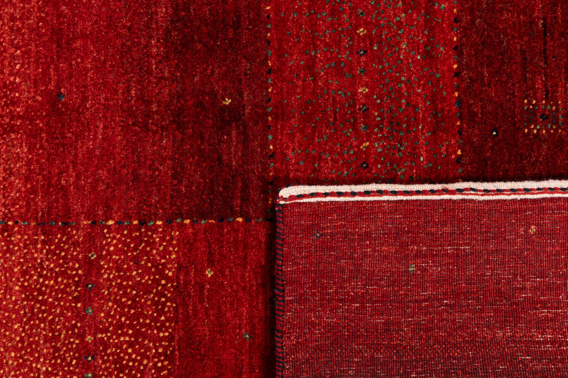 Ten piękny dywan jest perskim Gabbeh i dlatego należy do najwyższej jakości dywanów Gabbeh. Dywany są wiązane przez nomadów lub pół-nomadzi w Iranie zgodnie z tradycyjnym rzemiosłem. Proste motywy i wzory są w większości inspirowane bezpośrednim otoczeniem nomadów. Na przykład wielbłądy, drzewa lub krzewy można znaleźć na tradycyjnych dywanach. Perskie dywany Gabbeh wykonane są z wełny pochodzącej z lokalnie hodowanych stad owiec. Wełna jest więc w większości przypadków nadal obracana ręcznie. Tak więc każdy z tych orientalnych dywanów uosabia unikalny charakter wielowiekowej kultury.