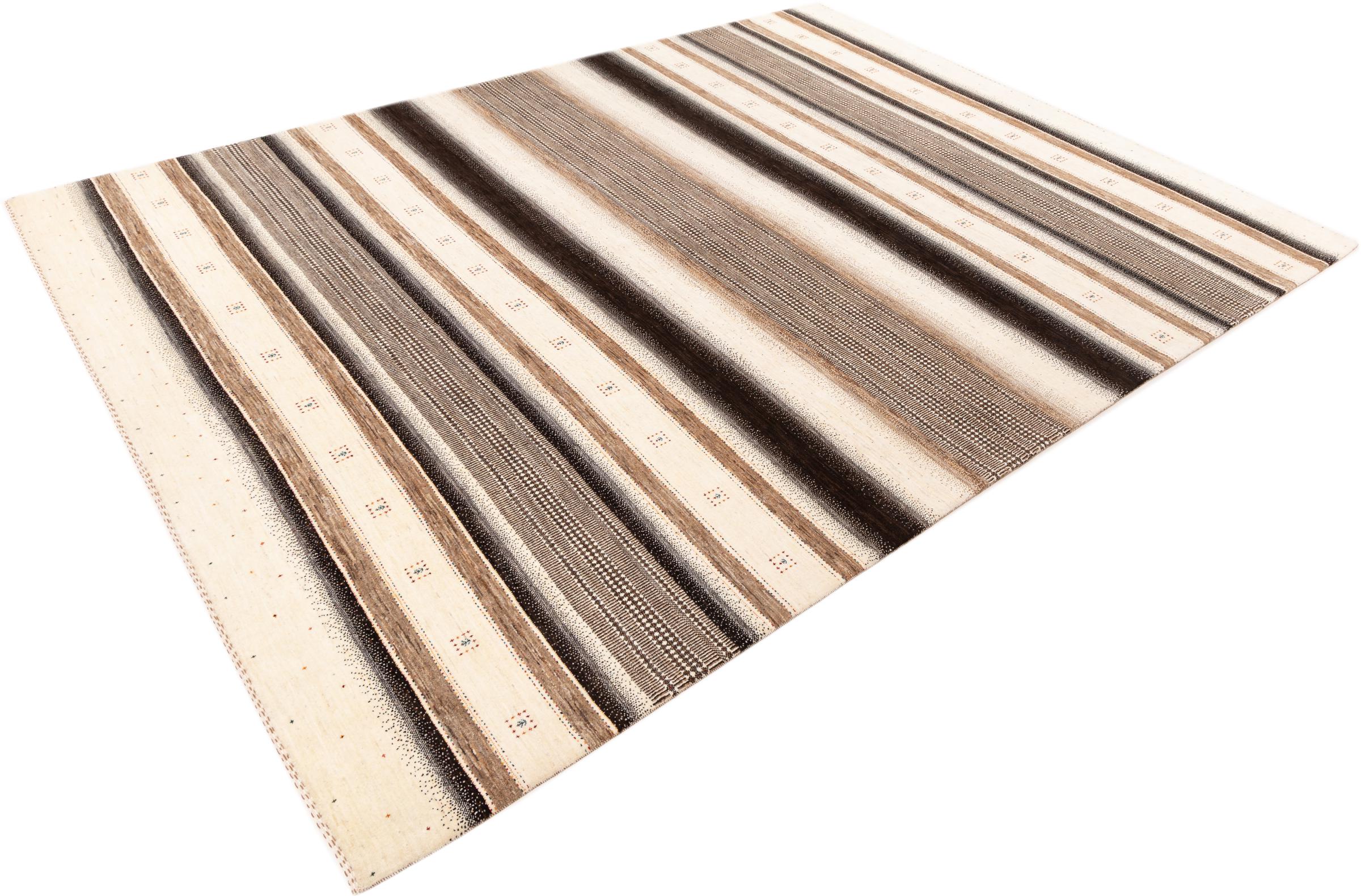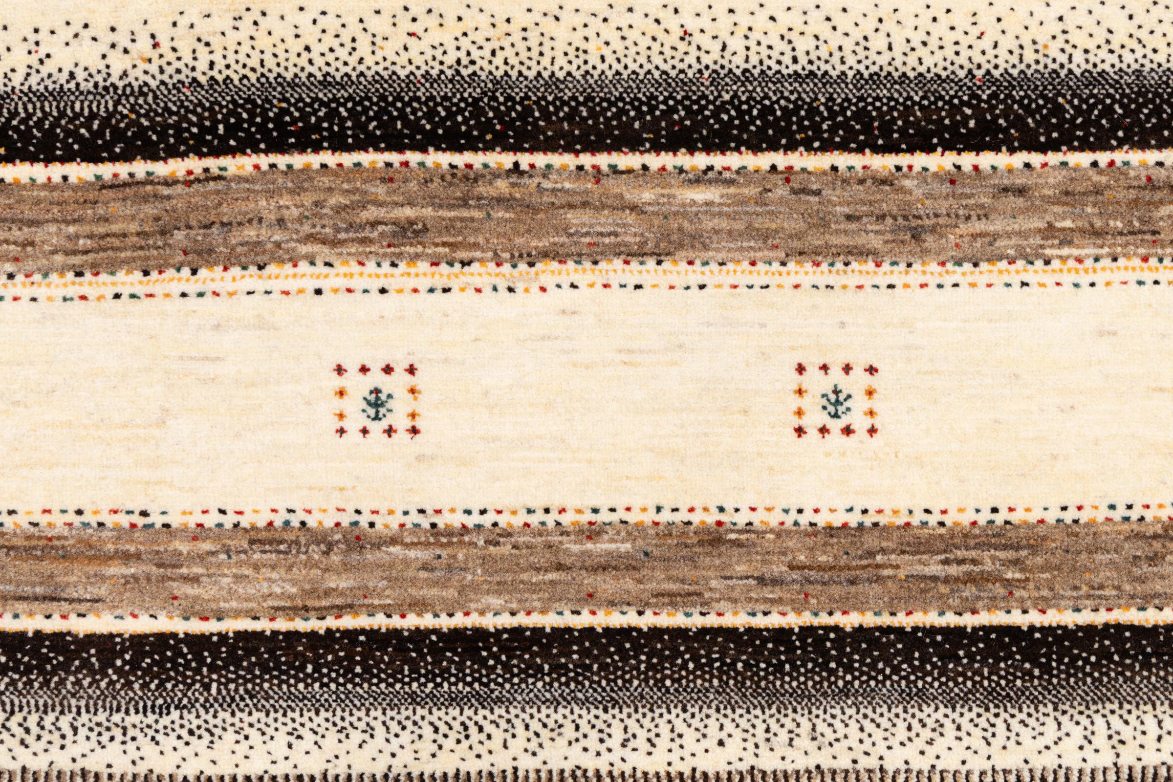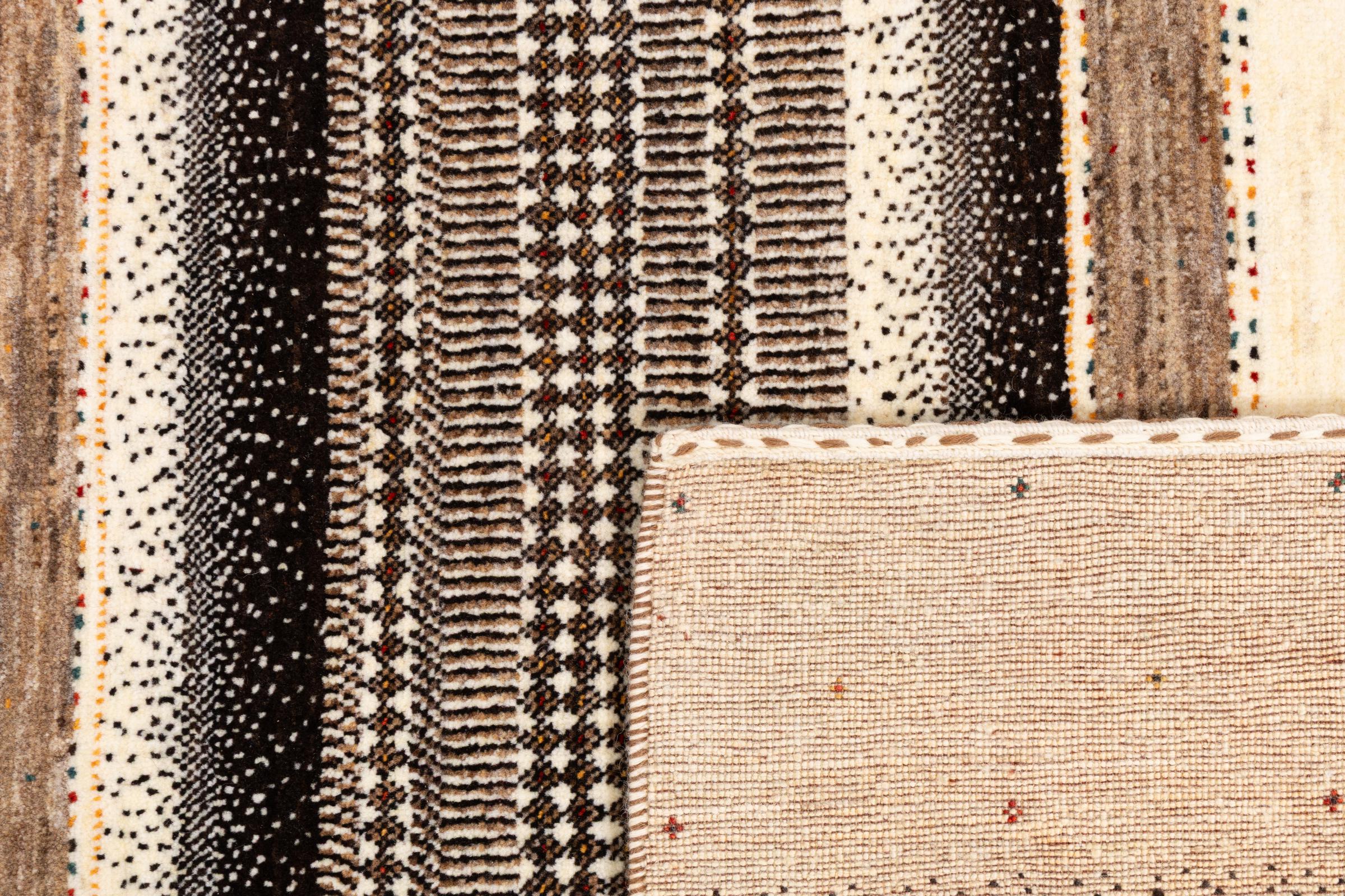 Ten piękny dywan jest perskim Gabbeh i dlatego należy do najwyższej jakości dywanów Gabbeh. Dywany są wiązane przez nomadów lub pół-nomadzi w Iranie zgodnie z tradycyjnym rzemiosłem. Proste motywy i wzory są w większości inspirowane bezpośrednim otoczeniem nomadów. Na przykład wielbłądy, drzewa lub krzewy można znaleźć na tradycyjnych dywanach. Perskie dywany Gabbeh wykonane są z wełny pochodzącej z lokalnie hodowanych stad owiec. Wełna jest więc w większości przypadków nadal obracana ręcznie. Tak więc każdy z tych orientalnych dywanów uosabia unikalny charakter wielowiekowej kultury.