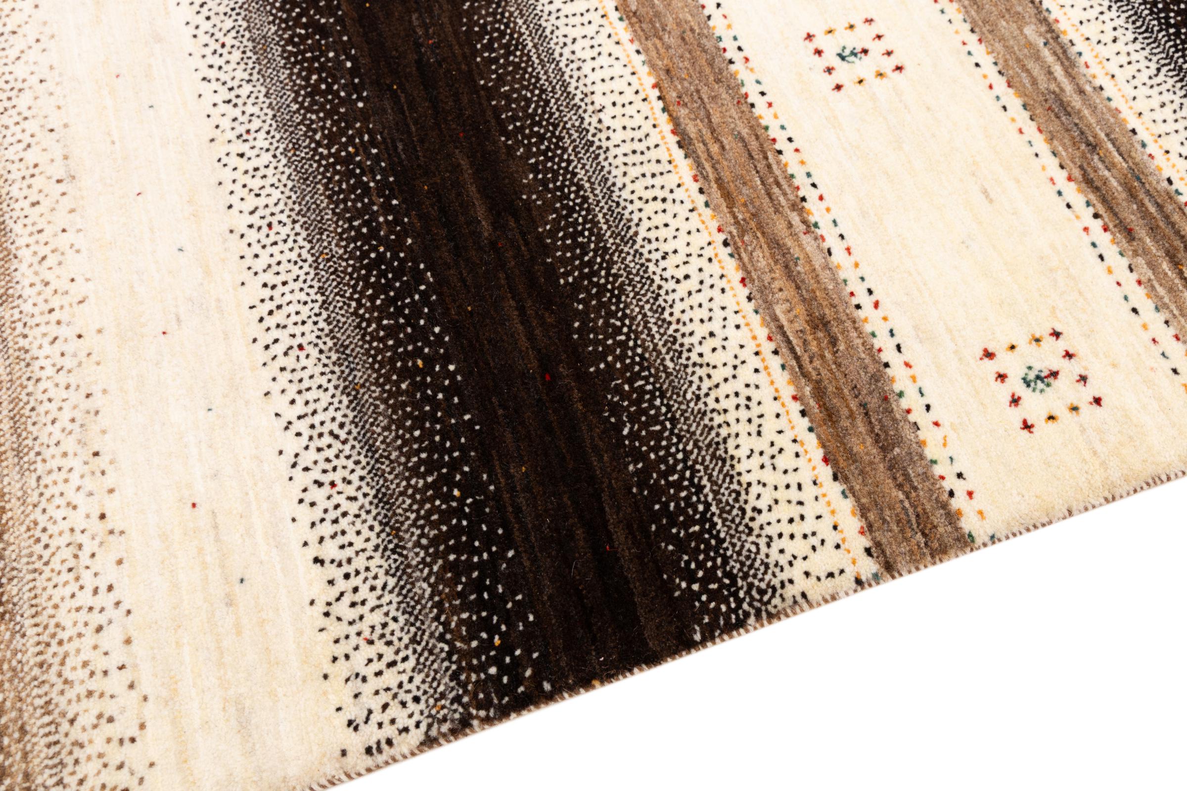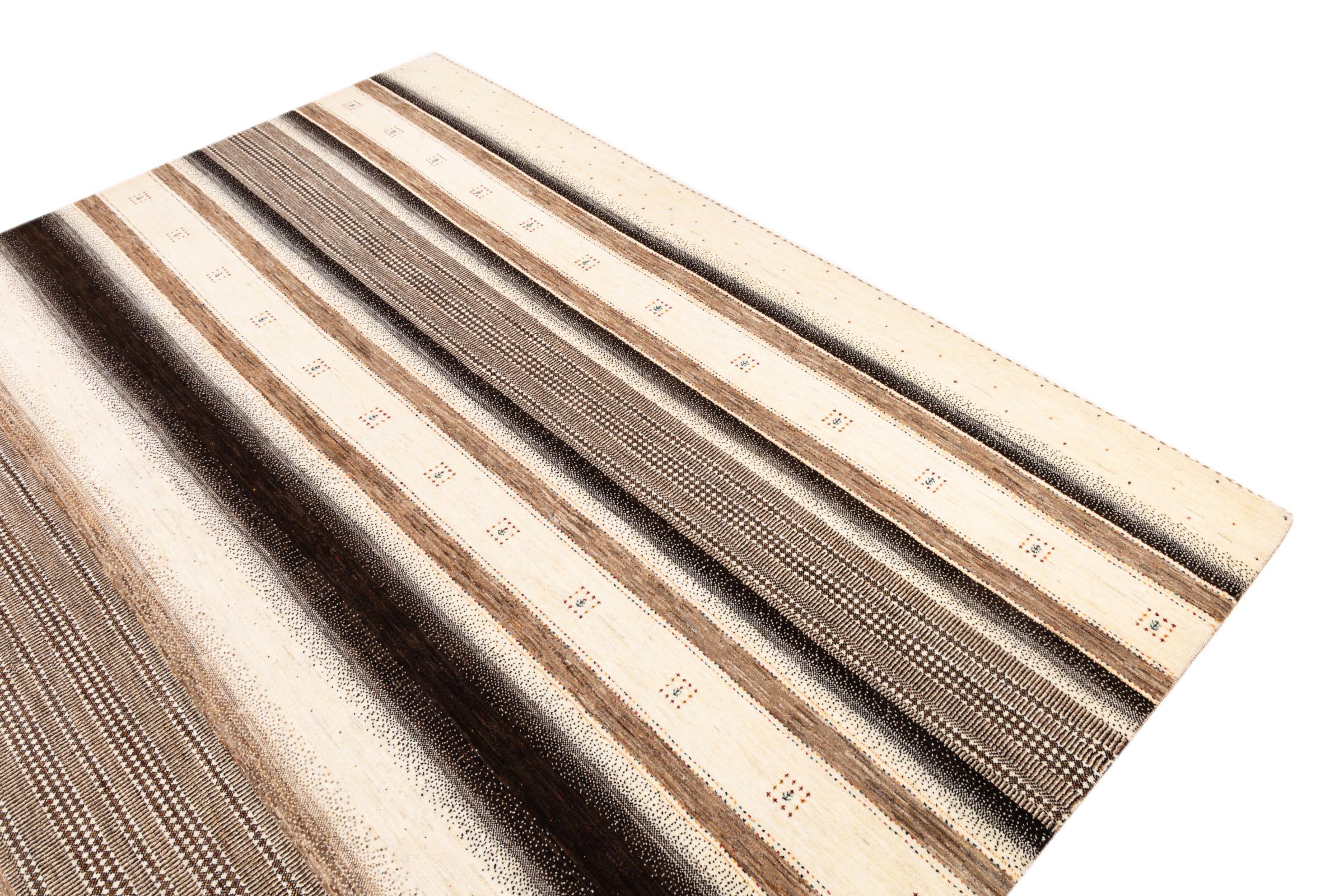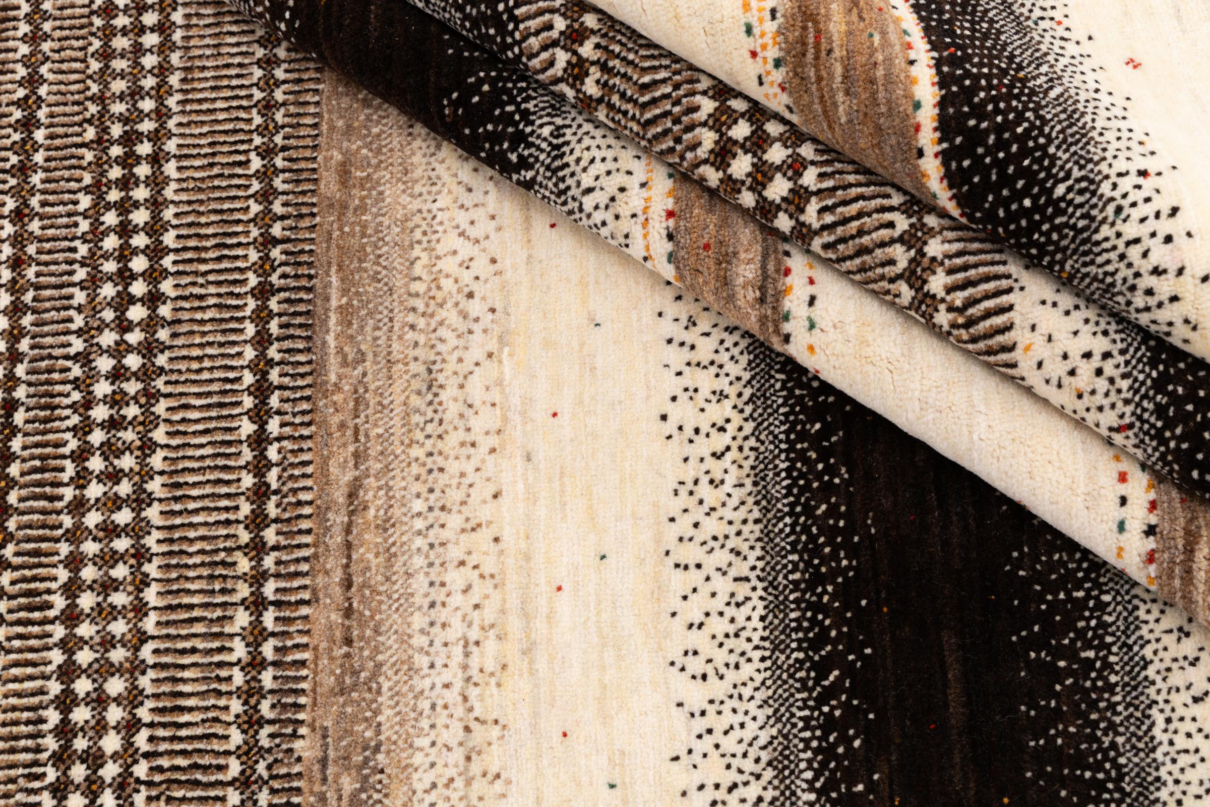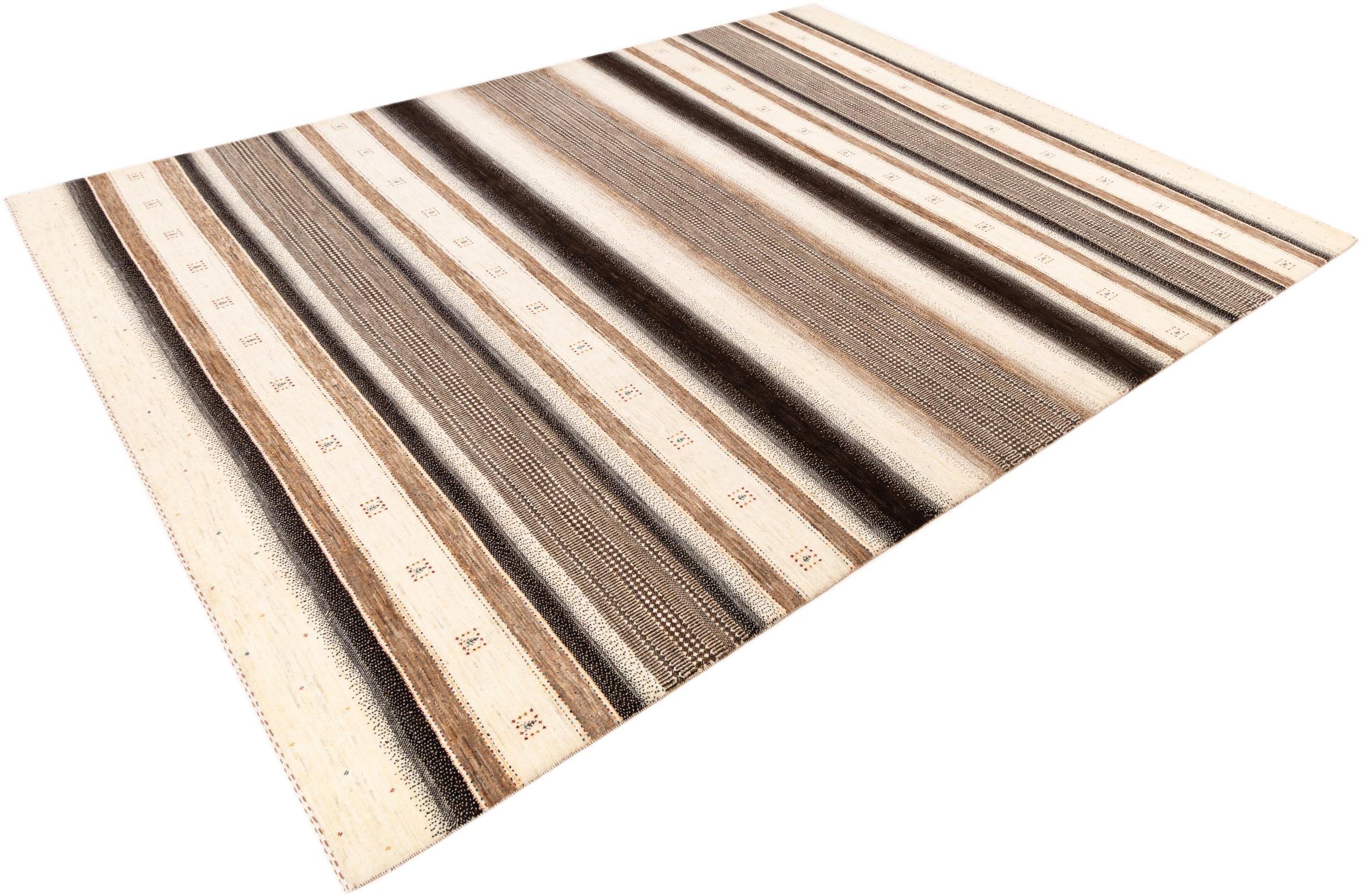 Ten piękny dywan jest perskim Gabbeh i dlatego należy do najwyższej jakości dywanów Gabbeh. Dywany są wiązane przez nomadów lub pół-nomadzi w Iranie zgodnie z tradycyjnym rzemiosłem. Proste motywy i wzory są w większości inspirowane bezpośrednim otoczeniem nomadów. Na przykład wielbłądy, drzewa lub krzewy można znaleźć na tradycyjnych dywanach. Perskie dywany Gabbeh wykonane są z wełny pochodzącej z lokalnie hodowanych stad owiec. Wełna jest więc w większości przypadków nadal obracana ręcznie. Tak więc każdy z tych orientalnych dywanów uosabia unikalny charakter wielowiekowej kultury.