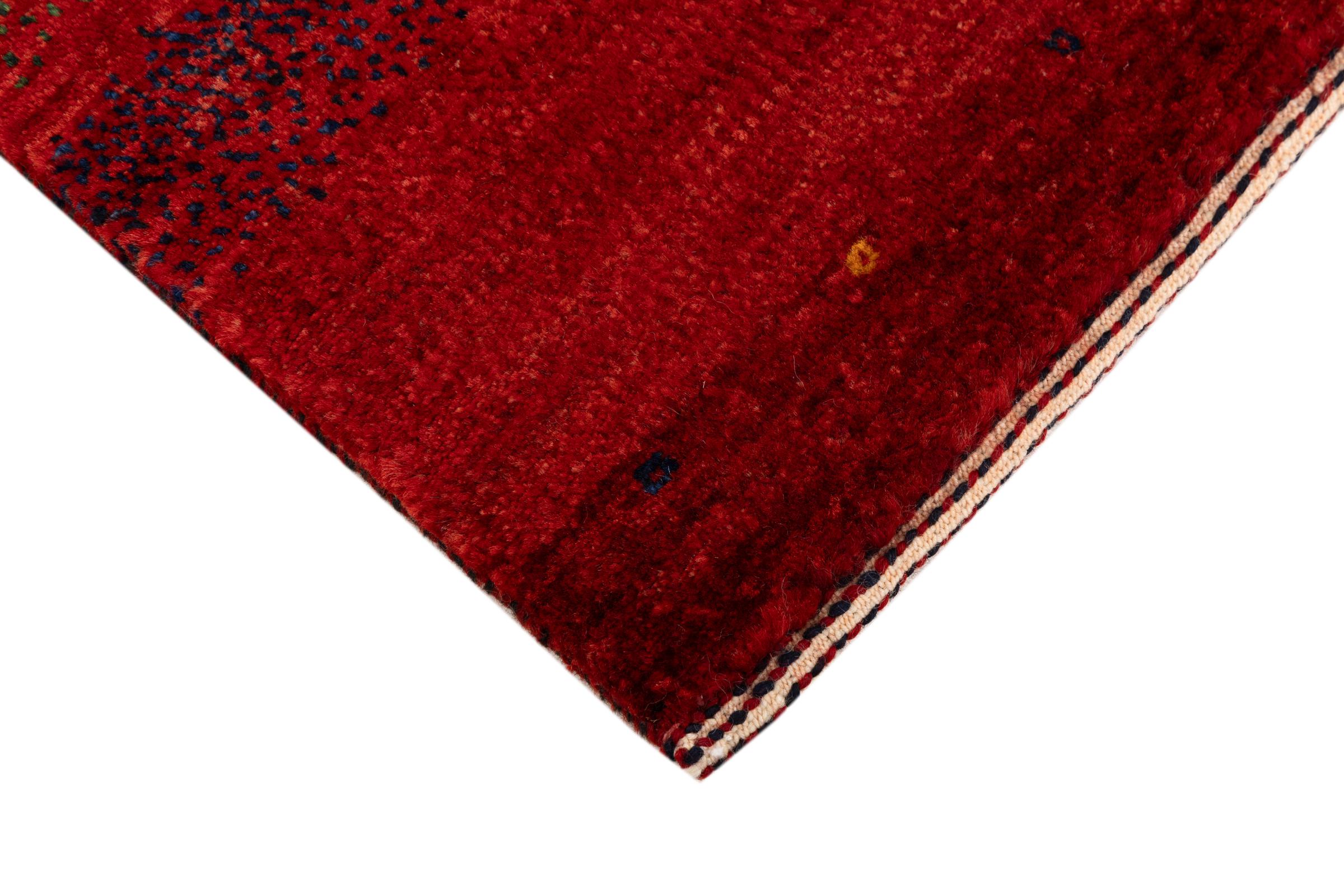 Ten piękny dywan jest perskim Gabbeh i dlatego należy do najwyższej jakości dywanów Gabbeh. Dywany są wiązane przez nomadów lub pół-nomadzi w Iranie zgodnie z tradycyjnym rzemiosłem. Proste motywy i wzory są w większości inspirowane bezpośrednim otoczeniem nomadów. Na przykład wielbłądy, drzewa lub krzewy można znaleźć na tradycyjnych dywanach. Perskie dywany Gabbeh wykonane są z wełny pochodzącej z lokalnie hodowanych stad owiec. Wełna jest więc w większości przypadków nadal obracana ręcznie. Tak więc każdy z tych orientalnych dywanów uosabia unikalny charakter wielowiekowej kultury.