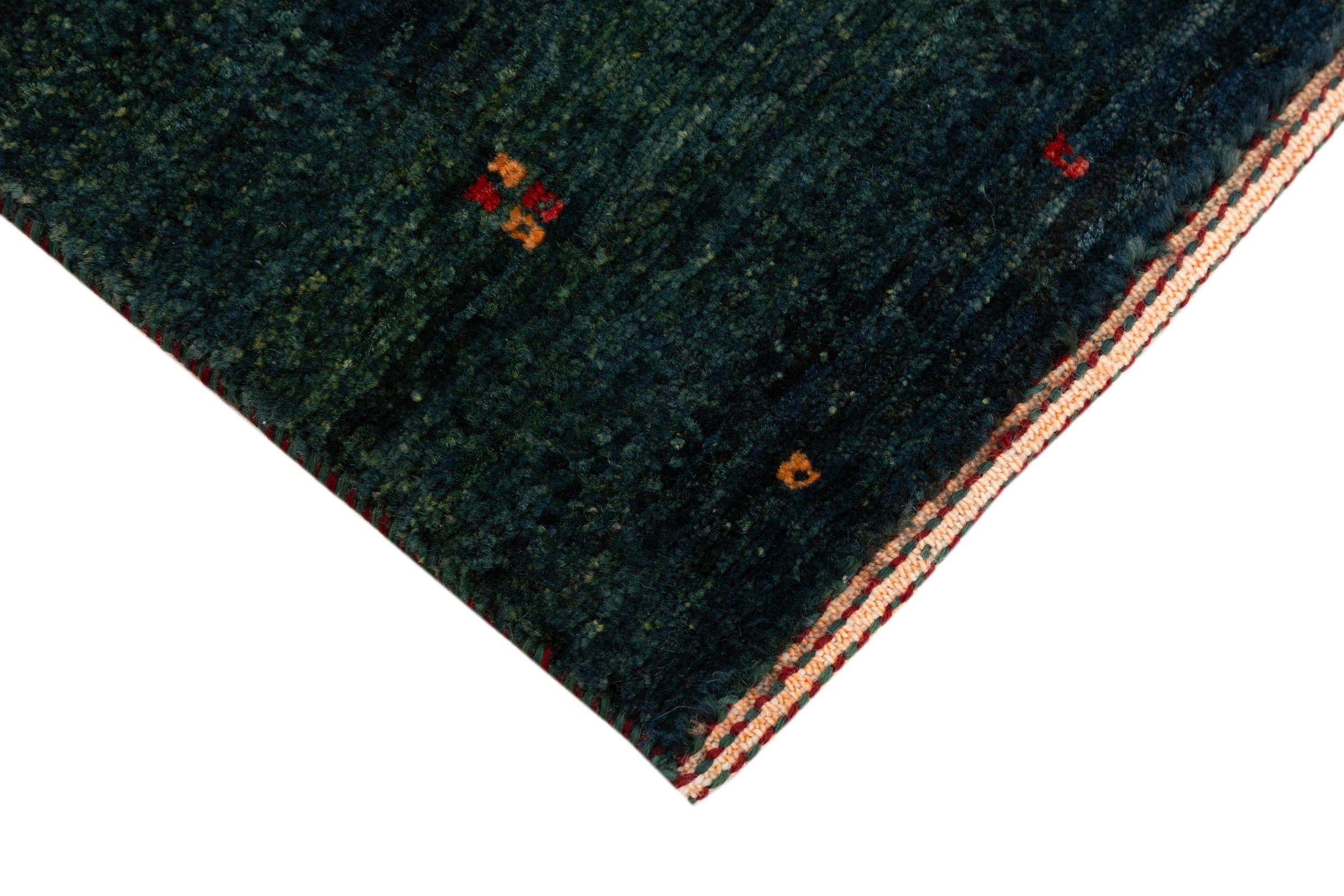 Ten piękny dywan jest perskim Gabbeh i dlatego należy do najwyższej jakości dywanów Gabbeh. Dywany są wiązane przez nomadów lub pół-nomadzi w Iranie zgodnie z tradycyjnym rzemiosłem. Proste motywy i wzory są w większości inspirowane bezpośrednim otoczeniem nomadów. Na przykład wielbłądy, drzewa lub krzewy można znaleźć na tradycyjnych dywanach. Perskie dywany Gabbeh wykonane są z wełny pochodzącej z lokalnie hodowanych stad owiec. Wełna jest więc w większości przypadków nadal obracana ręcznie. Tak więc każdy z tych orientalnych dywanów uosabia unikalny charakter wielowiekowej kultury.