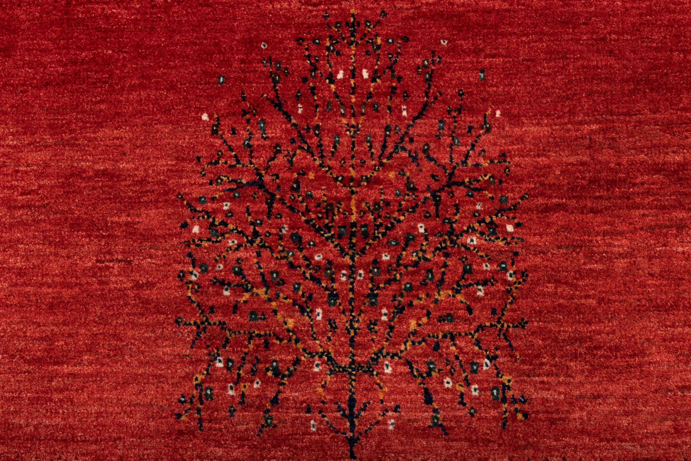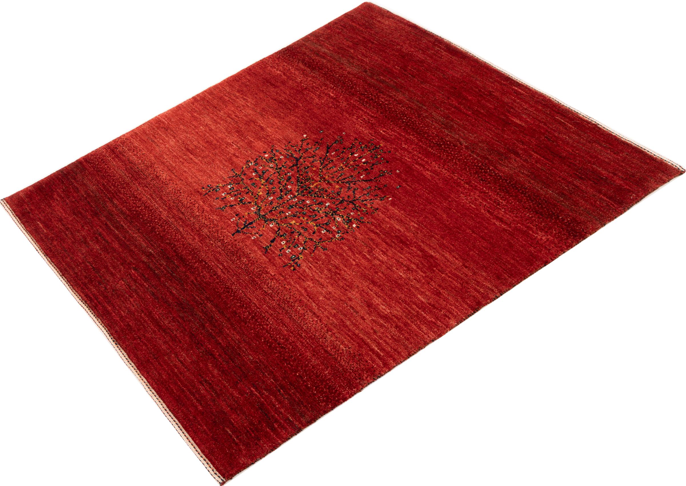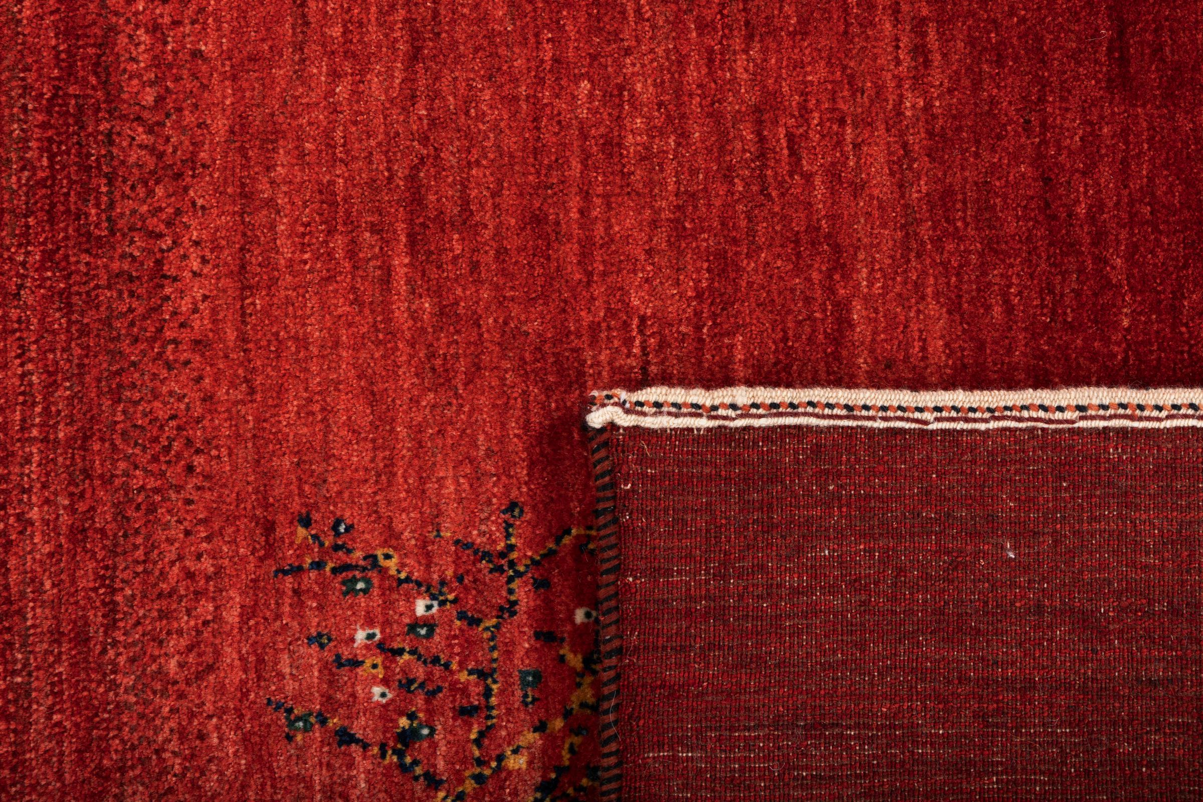 Ten piękny dywan jest perskim Gabbeh i dlatego należy do najwyższej jakości dywanów Gabbeh. Dywany są wiązane przez nomadów lub pół-nomadzi w Iranie zgodnie z tradycyjnym rzemiosłem. Proste motywy i wzory są w większości inspirowane bezpośrednim otoczeniem nomadów. Na przykład wielbłądy, drzewa lub krzewy można znaleźć na tradycyjnych dywanach. Perskie dywany Gabbeh wykonane są z wełny pochodzącej z lokalnie hodowanych stad owiec. Wełna jest więc w większości przypadków nadal obracana ręcznie. Tak więc każdy z tych orientalnych dywanów uosabia unikalny charakter wielowiekowej kultury.
