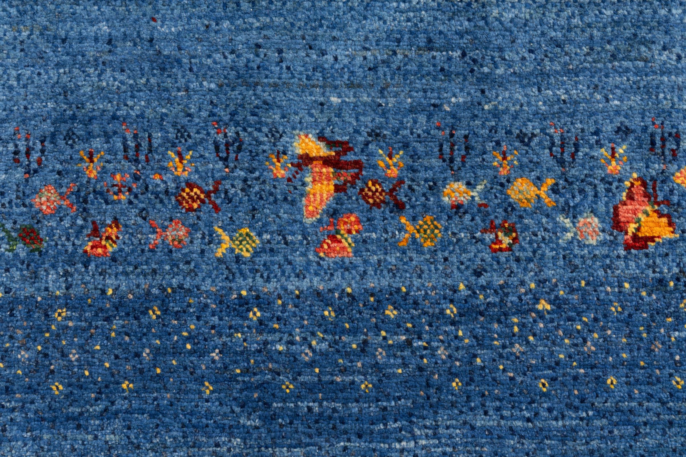 Ten piękny dywan jest perskim Gabbeh i dlatego należy do najwyższej jakości dywanów Gabbeh. Dywany są wiązane przez nomadów lub pół-nomadzi w Iranie zgodnie z tradycyjnym rzemiosłem. Proste motywy i wzory są w większości inspirowane bezpośrednim otoczeniem nomadów. Na przykład wielbłądy, drzewa lub krzewy można znaleźć na tradycyjnych dywanach. Perskie dywany Gabbeh wykonane są z wełny pochodzącej z lokalnie hodowanych stad owiec. Wełna jest więc w większości przypadków nadal obracana ręcznie. Tak więc każdy z tych orientalnych dywanów uosabia unikalny charakter wielowiekowej kultury.