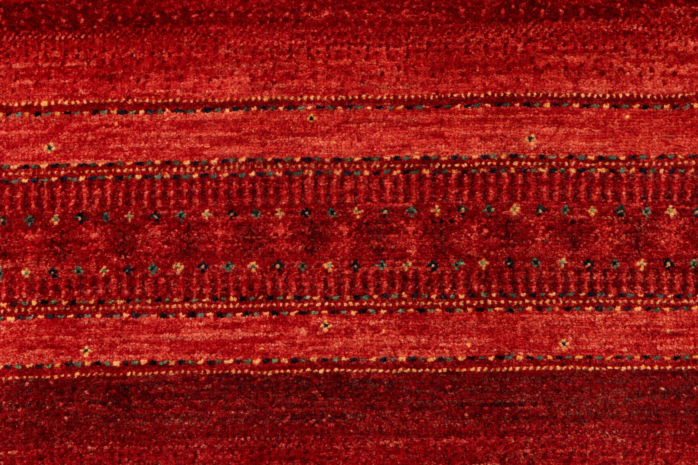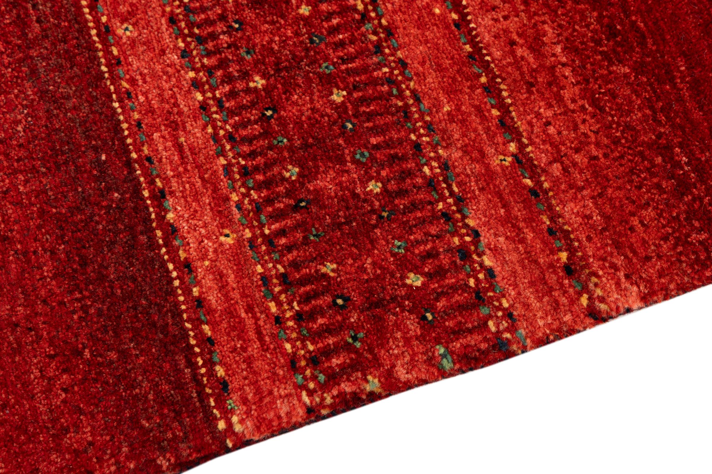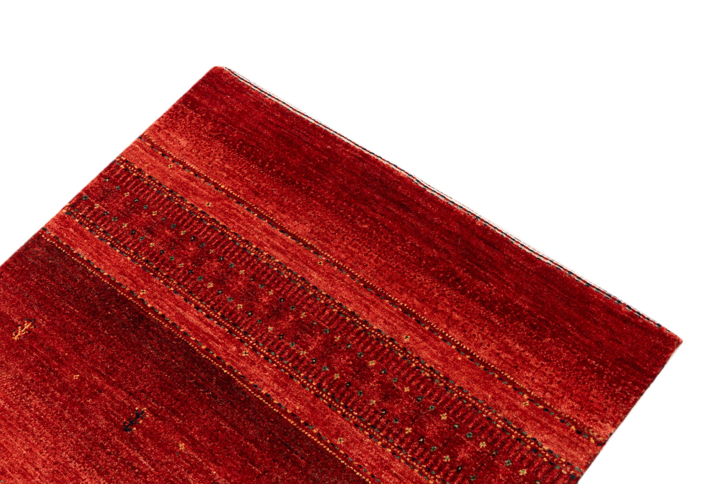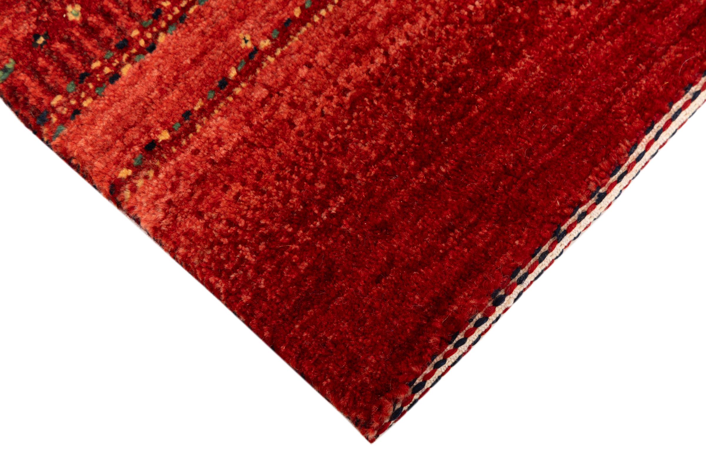Ten piękny dywan jest perskim Gabbeh i dlatego należy do najwyższej jakości dywanów Gabbeh. Dywany są wiązane przez nomadów lub pół-nomadzi w Iranie zgodnie z tradycyjnym rzemiosłem. Proste motywy i wzory są w większości inspirowane bezpośrednim otoczeniem nomadów. Na przykład wielbłądy, drzewa lub krzewy można znaleźć na tradycyjnych dywanach. Perskie dywany Gabbeh wykonane są z wełny pochodzącej z lokalnie hodowanych stad owiec. Wełna jest więc w większości przypadków nadal obracana ręcznie. Tak więc każdy z tych orientalnych dywanów uosabia unikalny charakter wielowiekowej kultury.