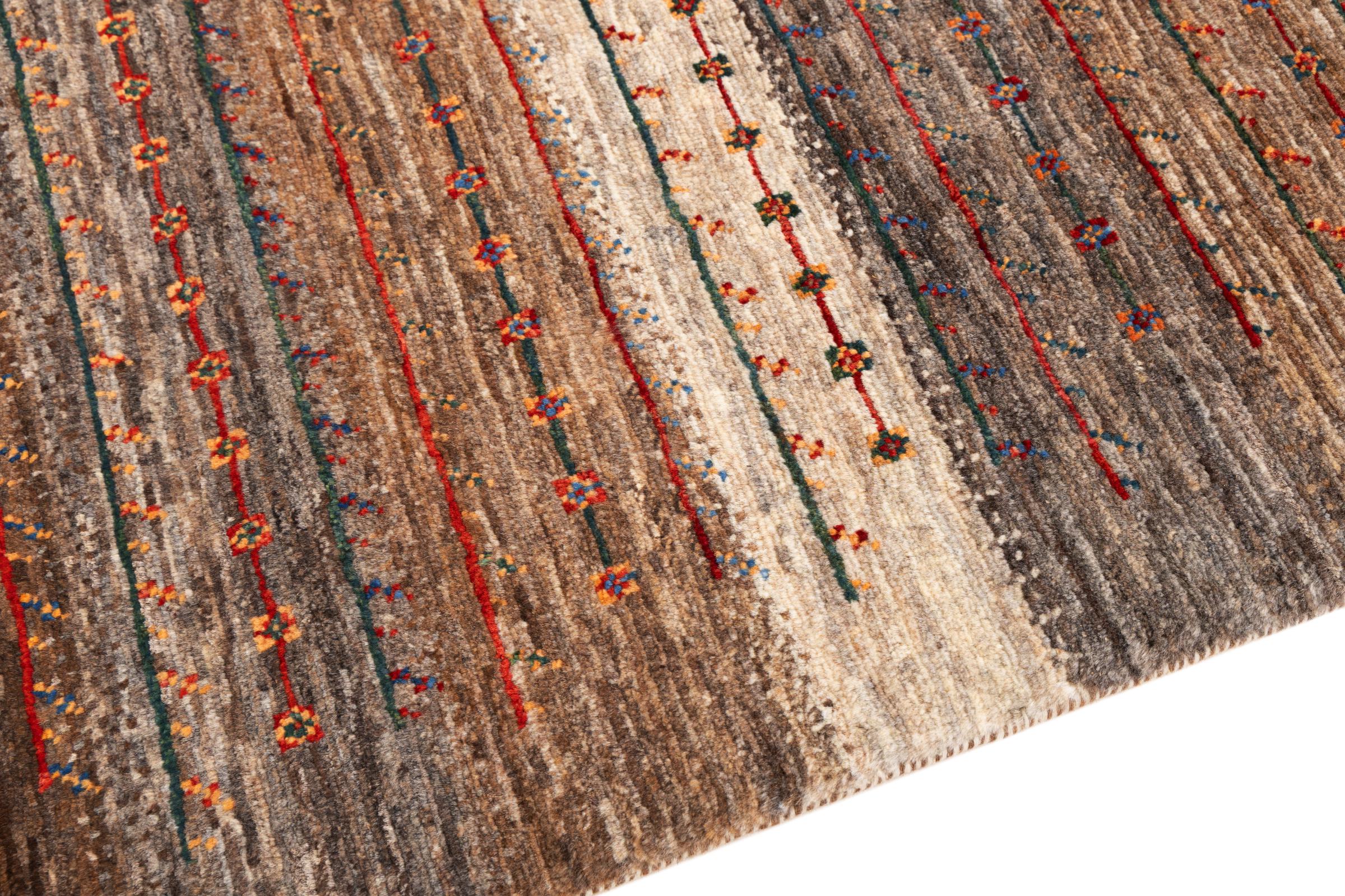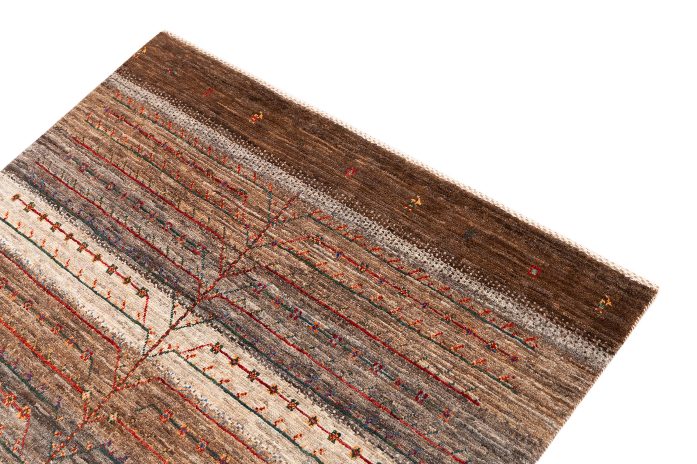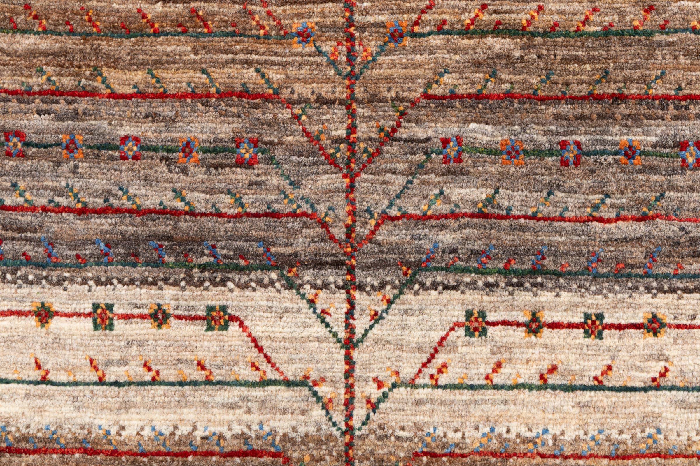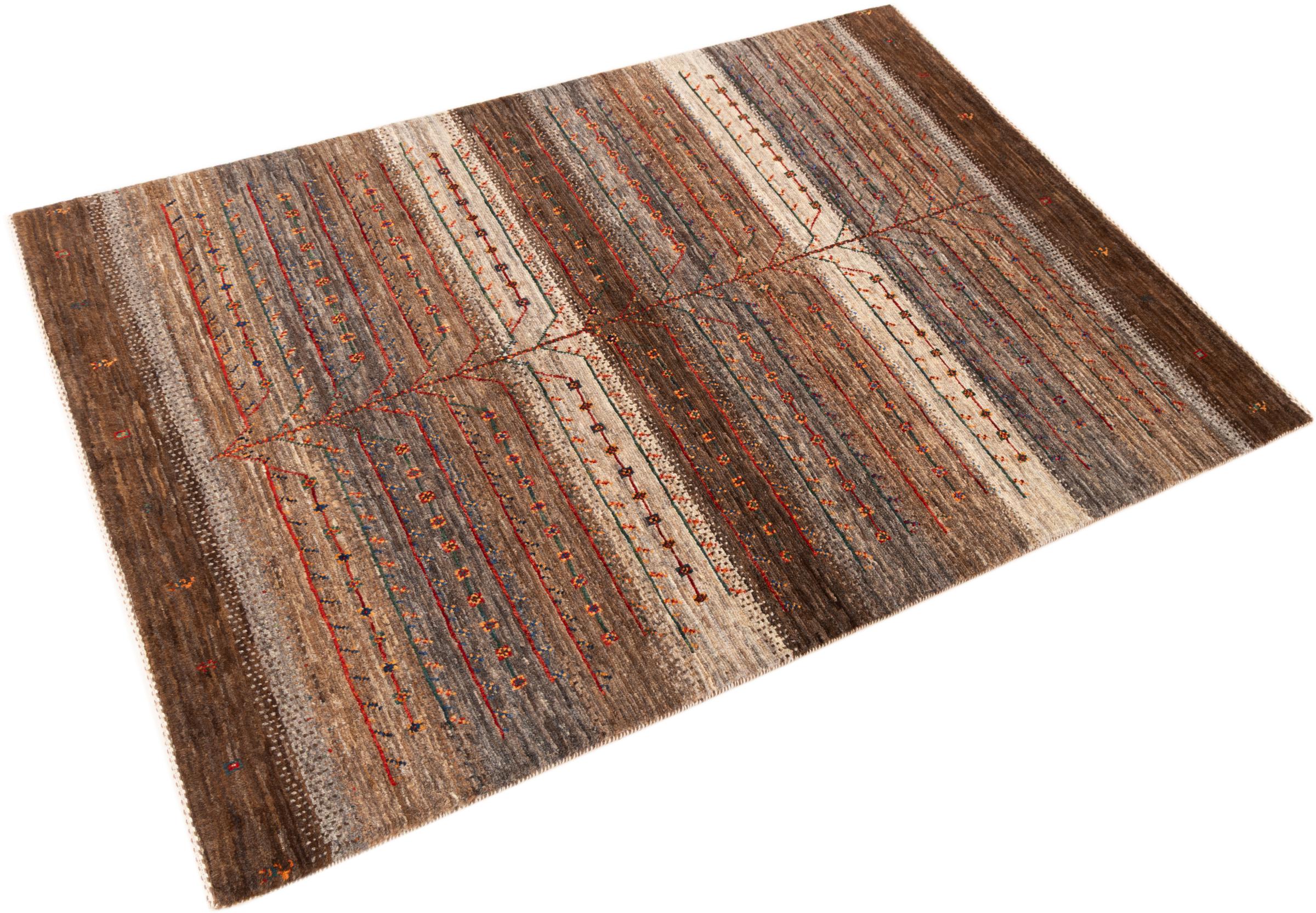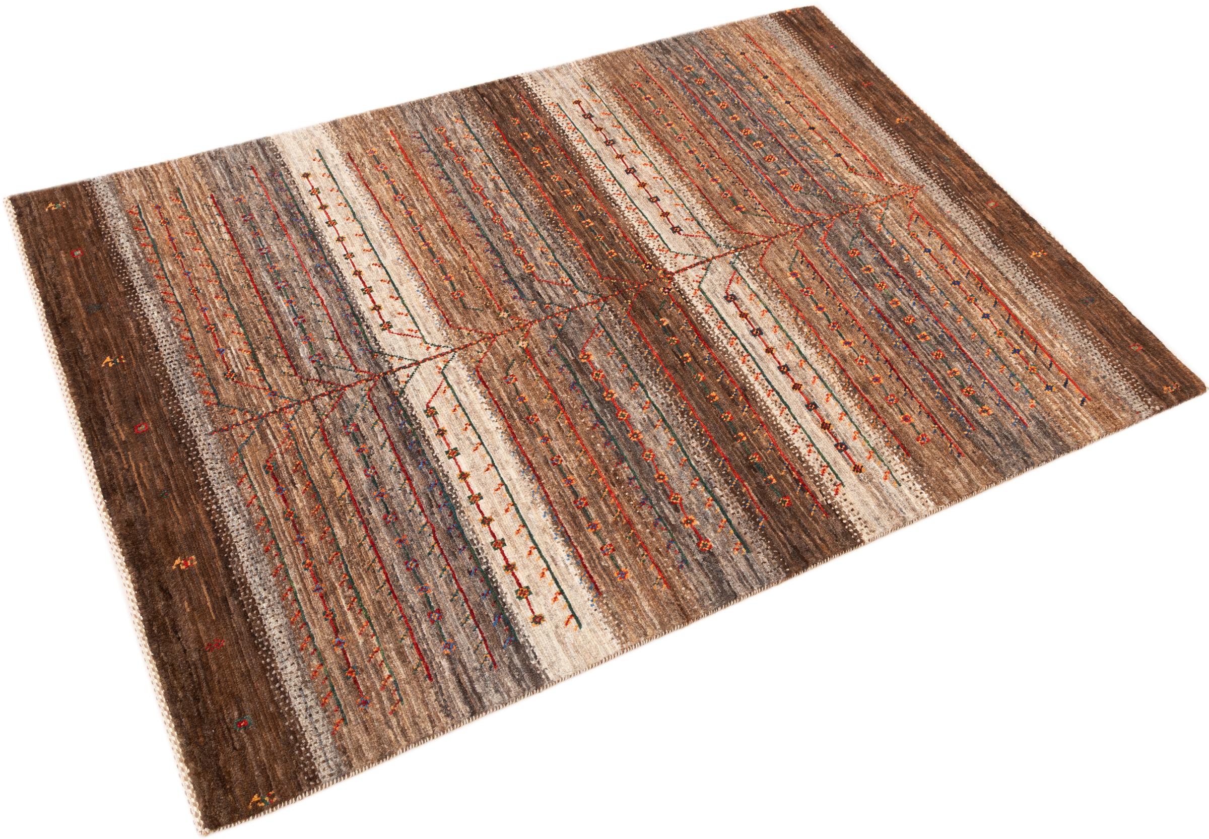 Ten piękny dywan jest perskim Gabbeh i dlatego należy do najwyższej jakości dywanów Gabbeh. Dywany są wiązane przez nomadów lub pół-nomadzi w Iranie zgodnie z tradycyjnym rzemiosłem. Proste motywy i wzory są w większości inspirowane bezpośrednim otoczeniem nomadów. Na przykład wielbłądy, drzewa lub krzewy można znaleźć na tradycyjnych dywanach. Perskie dywany Gabbeh wykonane są z wełny pochodzącej z lokalnie hodowanych stad owiec. Wełna jest więc w większości przypadków nadal obracana ręcznie. Tak więc każdy z tych orientalnych dywanów uosabia unikalny charakter wielowiekowej kultury.