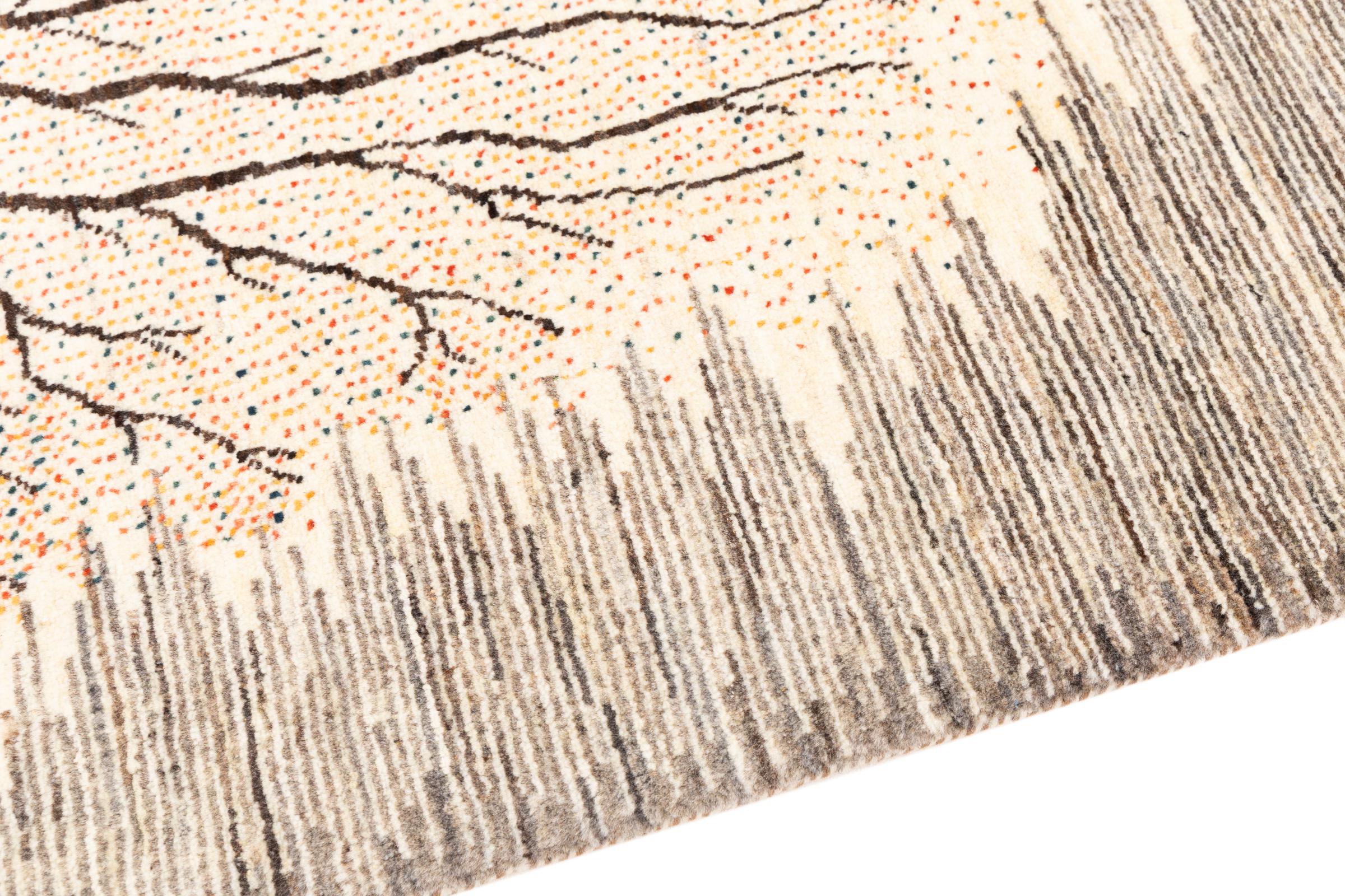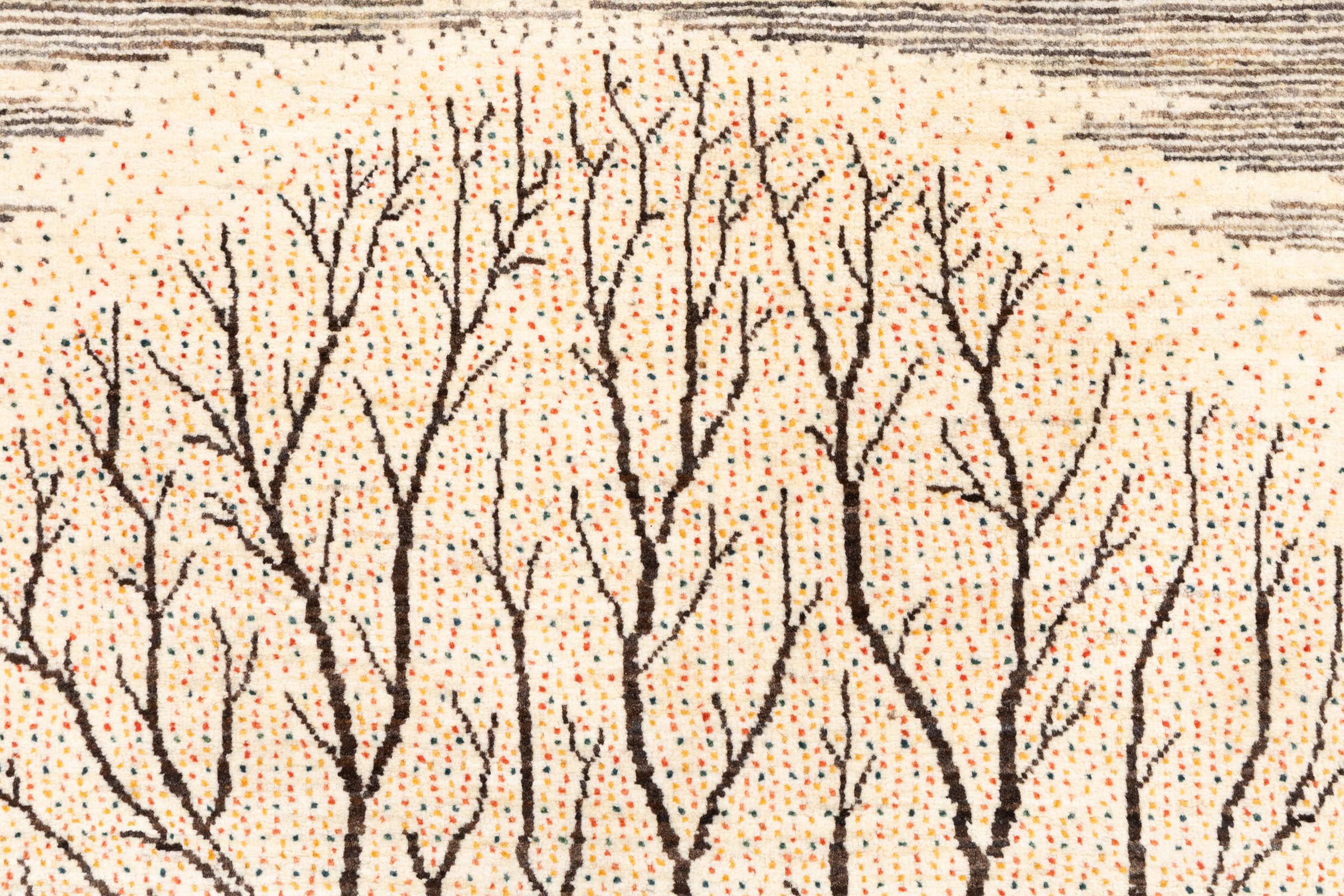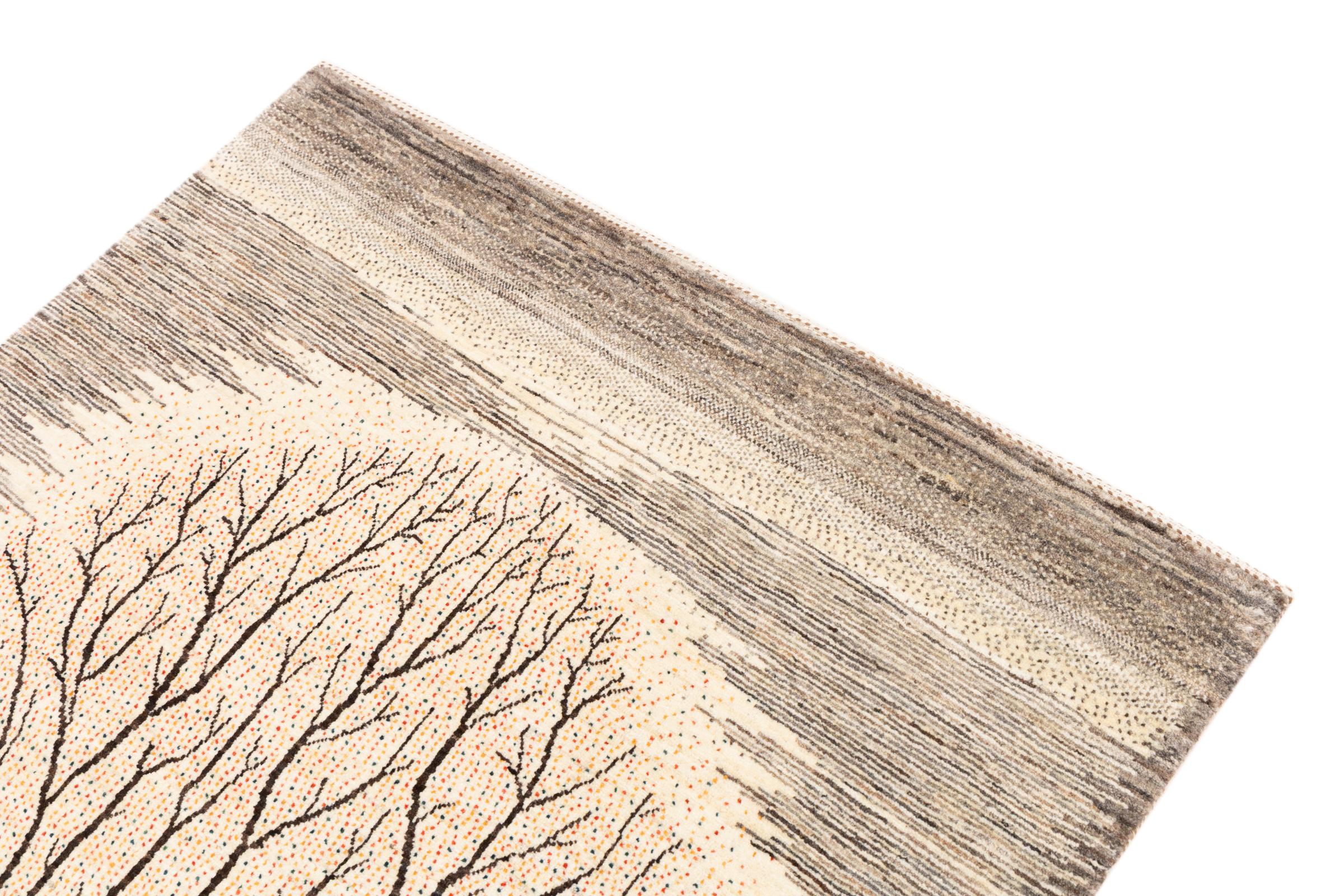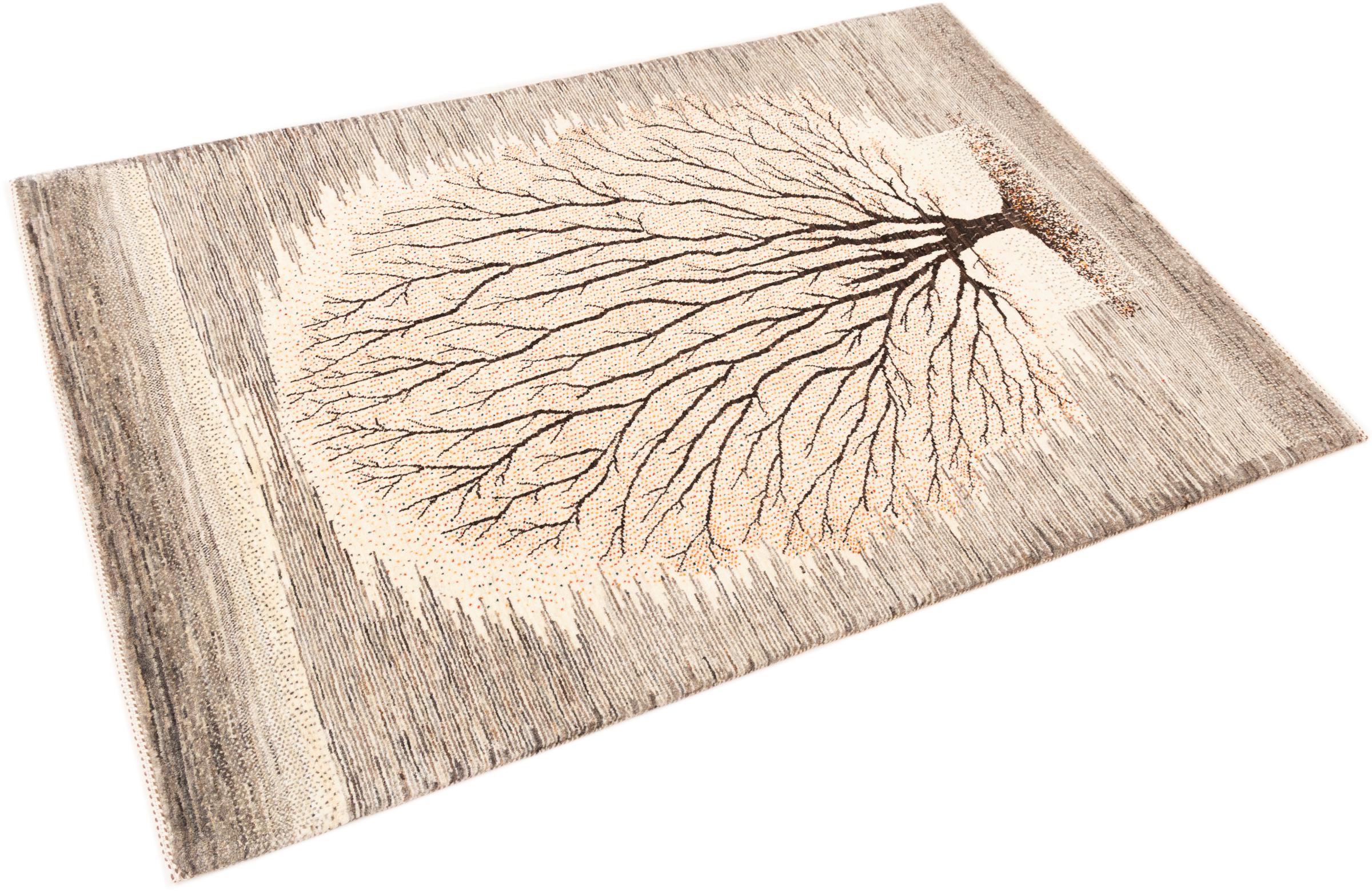 Ten piękny dywan jest perskim Gabbeh i dlatego należy do najwyższej jakości dywanów Gabbeh. Dywany są wiązane przez nomadów lub pół-nomadzi w Iranie zgodnie z tradycyjnym rzemiosłem. Proste motywy i wzory są w większości inspirowane bezpośrednim otoczeniem nomadów. Na przykład wielbłądy, drzewa lub krzewy można znaleźć na tradycyjnych dywanach. Perskie dywany Gabbeh wykonane są z wełny pochodzącej z lokalnie hodowanych stad owiec. Wełna jest więc w większości przypadków nadal obracana ręcznie. Tak więc każdy z tych orientalnych dywanów uosabia unikalny charakter wielowiekowej kultury.