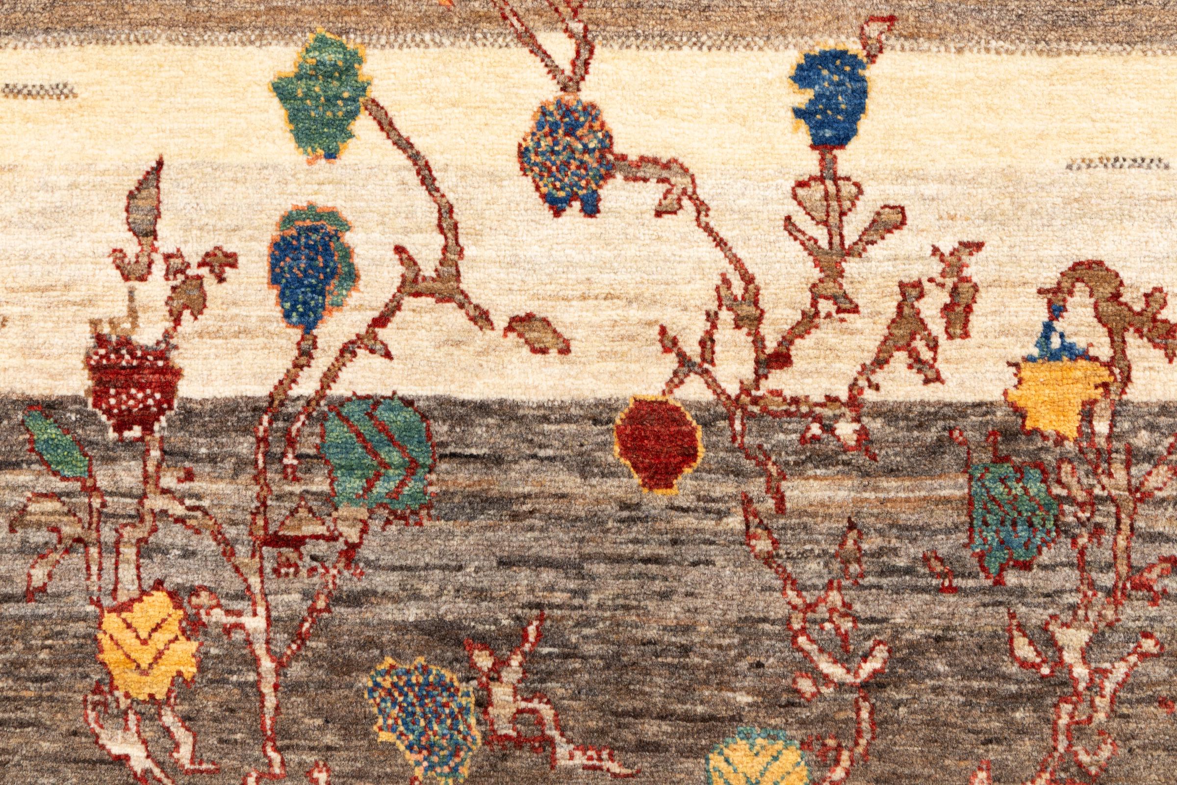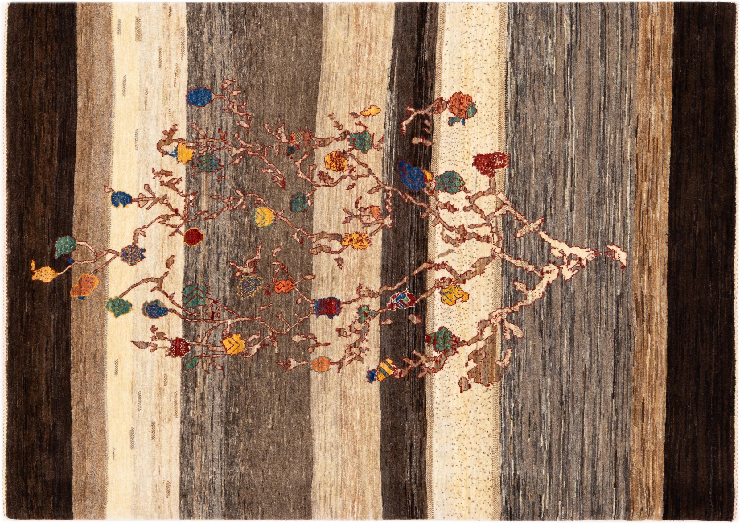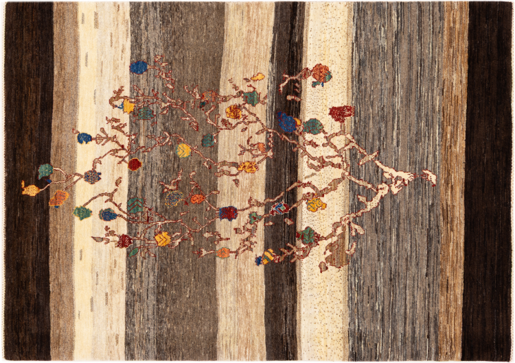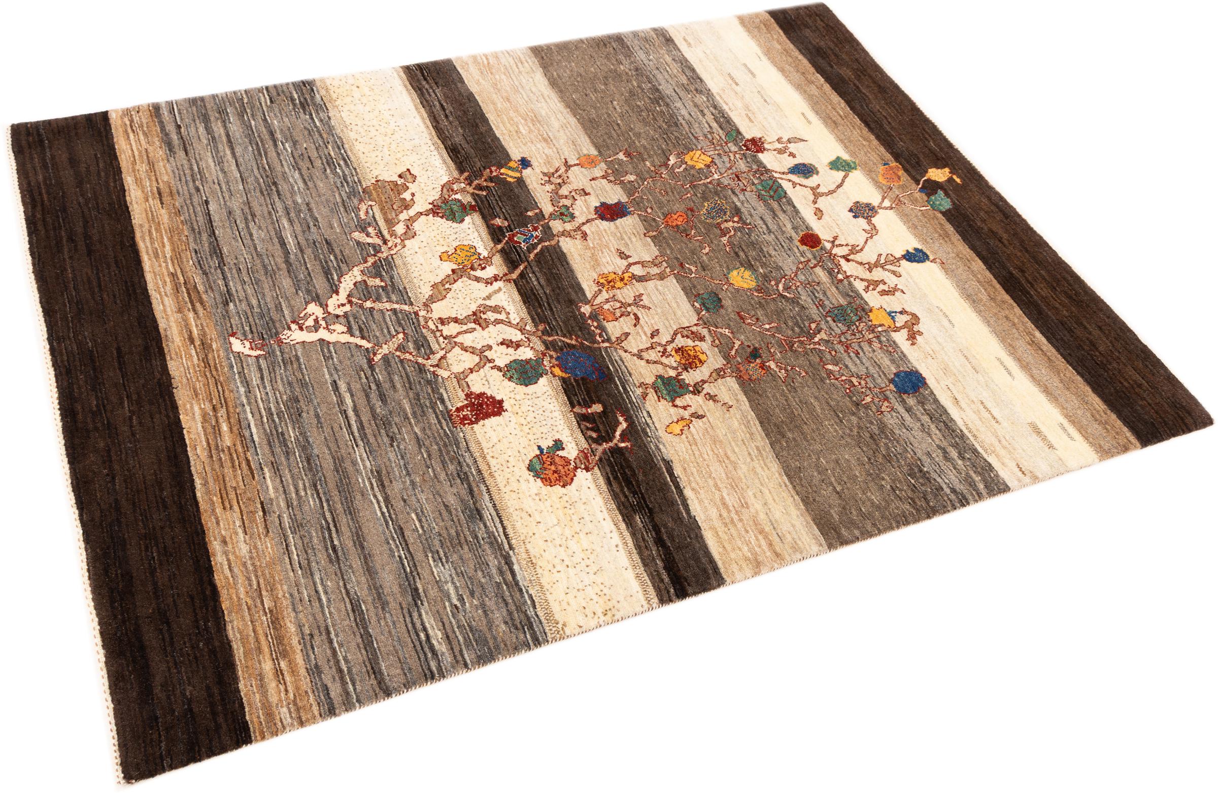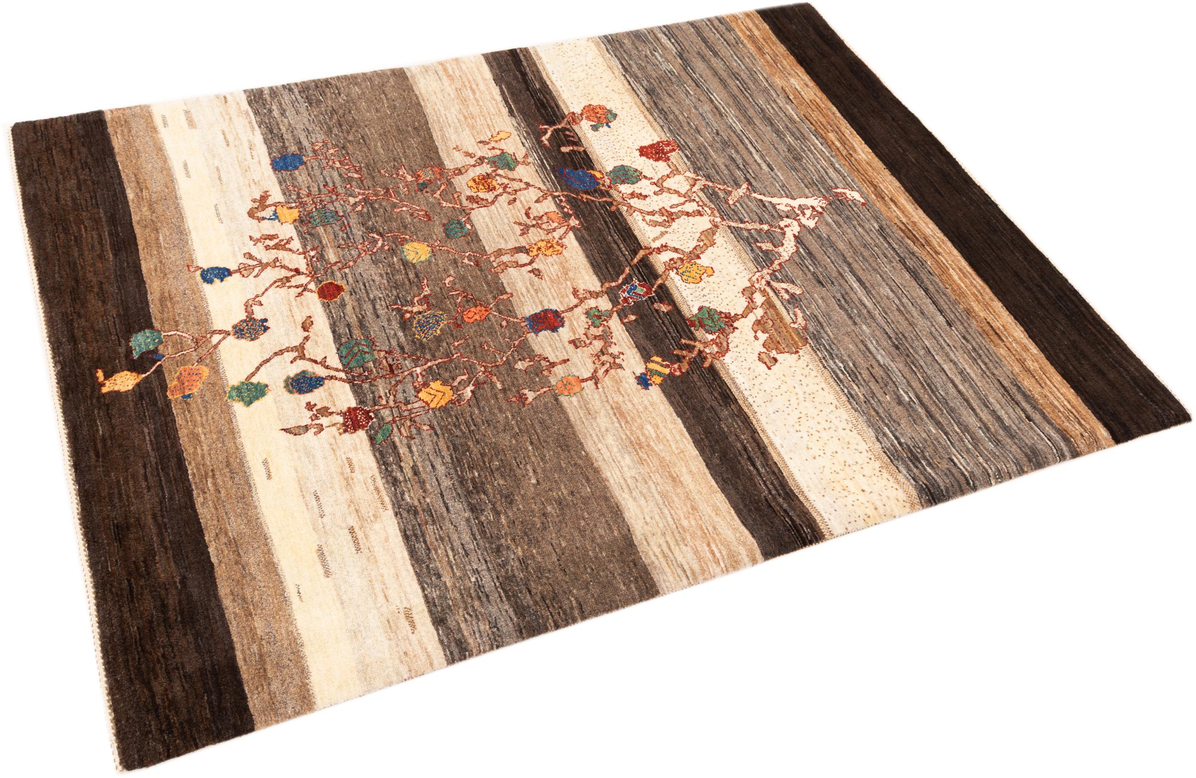 Ten piękny dywan jest perskim Gabbeh i dlatego należy do najwyższej jakości dywanów Gabbeh. Dywany są wiązane przez nomadów lub pół-nomadzi w Iranie zgodnie z tradycyjnym rzemiosłem. Proste motywy i wzory są w większości inspirowane bezpośrednim otoczeniem nomadów. Na przykład wielbłądy, drzewa lub krzewy można znaleźć na tradycyjnych dywanach. Perskie dywany Gabbeh wykonane są z wełny pochodzącej z lokalnie hodowanych stad owiec. Wełna jest więc w większości przypadków nadal obracana ręcznie. Tak więc każdy z tych orientalnych dywanów uosabia unikalny charakter wielowiekowej kultury.