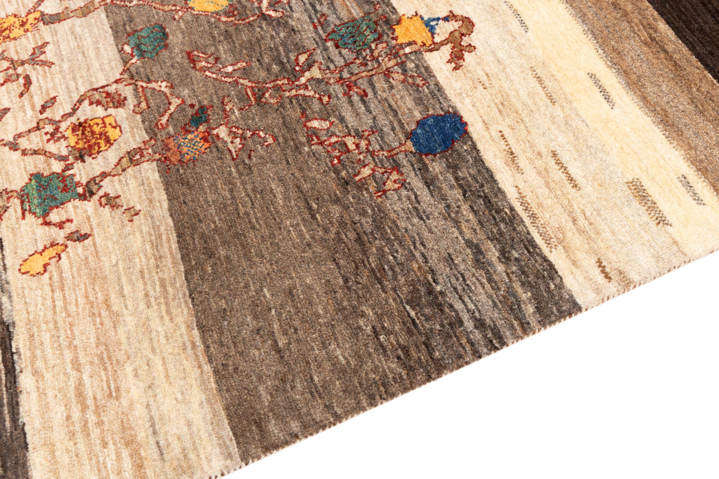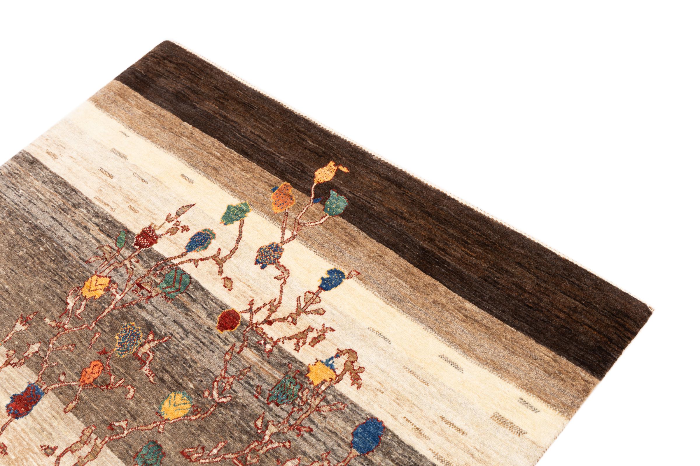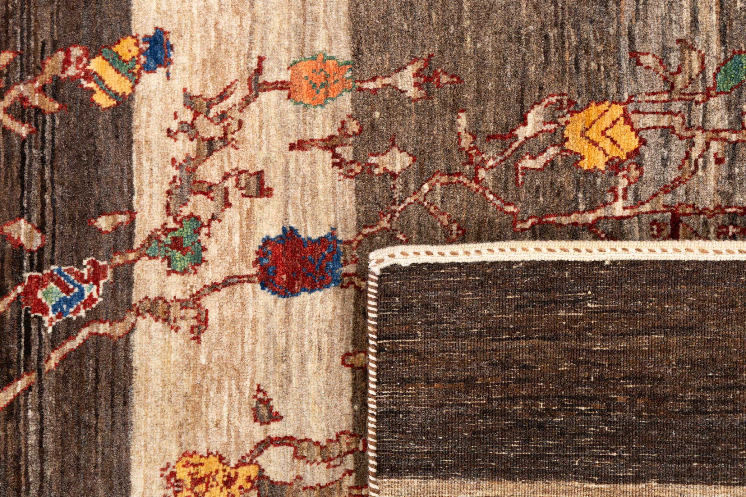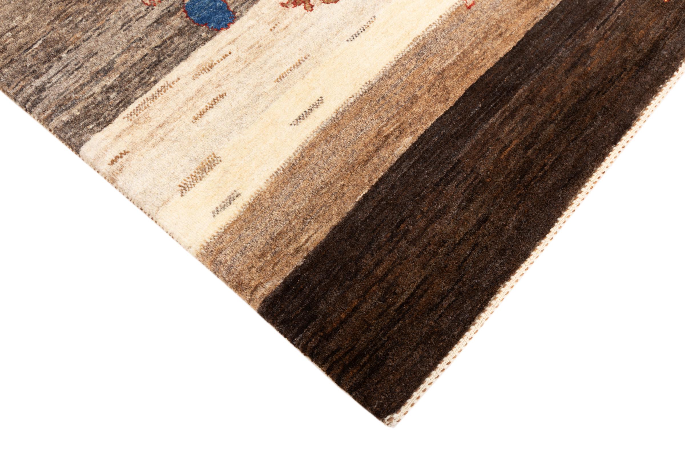 Ten piękny dywan jest perskim Gabbeh i dlatego należy do najwyższej jakości dywanów Gabbeh. Dywany są wiązane przez nomadów lub pół-nomadzi w Iranie zgodnie z tradycyjnym rzemiosłem. Proste motywy i wzory są w większości inspirowane bezpośrednim otoczeniem nomadów. Na przykład wielbłądy, drzewa lub krzewy można znaleźć na tradycyjnych dywanach. Perskie dywany Gabbeh wykonane są z wełny pochodzącej z lokalnie hodowanych stad owiec. Wełna jest więc w większości przypadków nadal obracana ręcznie. Tak więc każdy z tych orientalnych dywanów uosabia unikalny charakter wielowiekowej kultury.