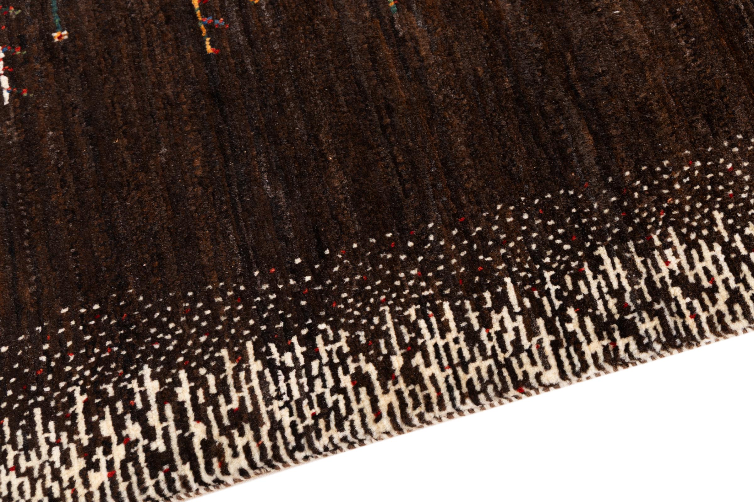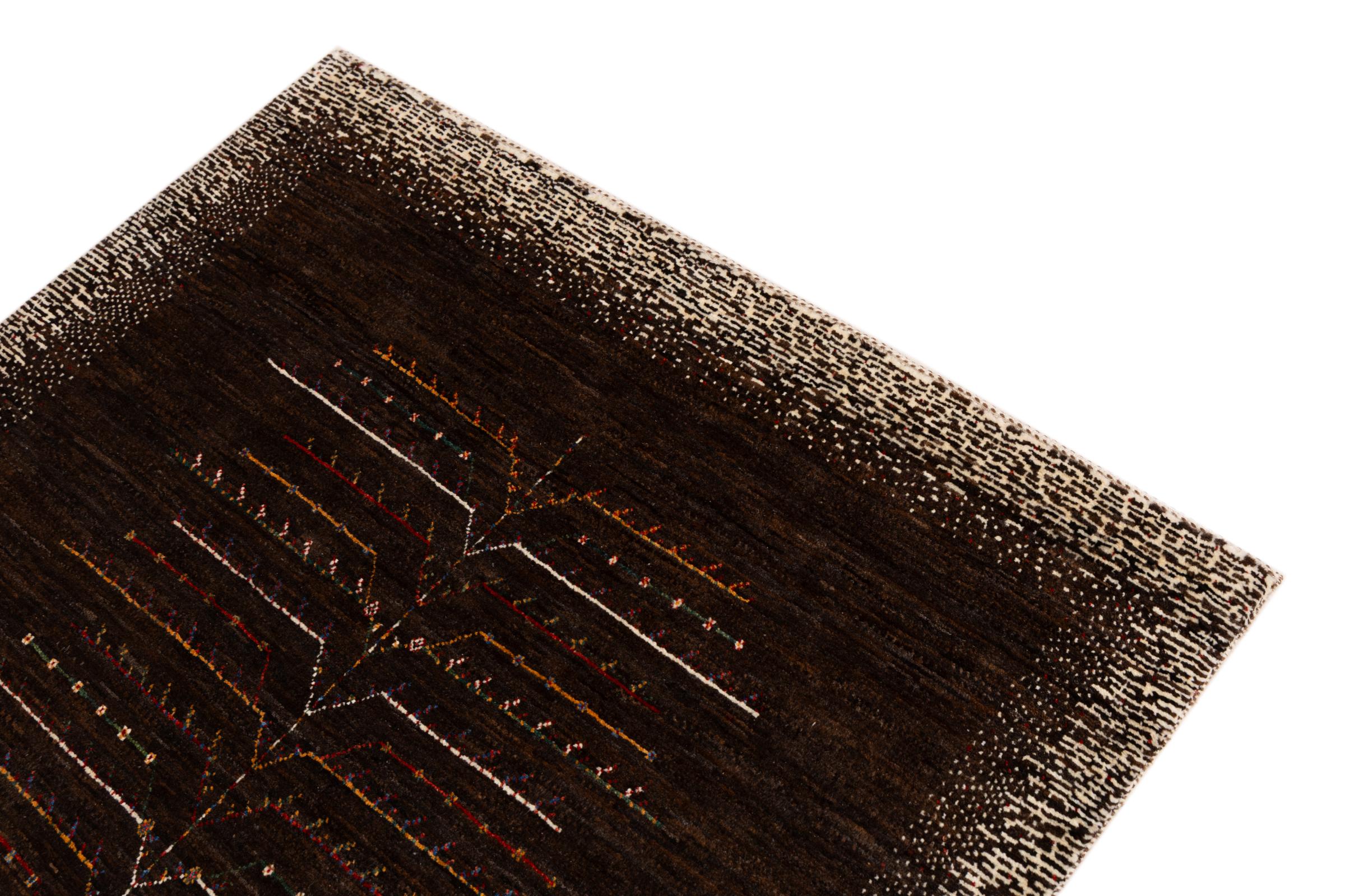 Ten piękny dywan jest perskim Gabbeh i dlatego należy do najwyższej jakości dywanów Gabbeh. Dywany są wiązane przez nomadów lub pół-nomadzi w Iranie zgodnie z tradycyjnym rzemiosłem. Proste motywy i wzory są w większości inspirowane bezpośrednim otoczeniem nomadów. Na przykład wielbłądy, drzewa lub krzewy można znaleźć na tradycyjnych dywanach. Perskie dywany Gabbeh wykonane są z wełny pochodzącej z lokalnie hodowanych stad owiec. Wełna jest więc w większości przypadków nadal obracana ręcznie. Tak więc każdy z tych orientalnych dywanów uosabia unikalny charakter wielowiekowej kultury.