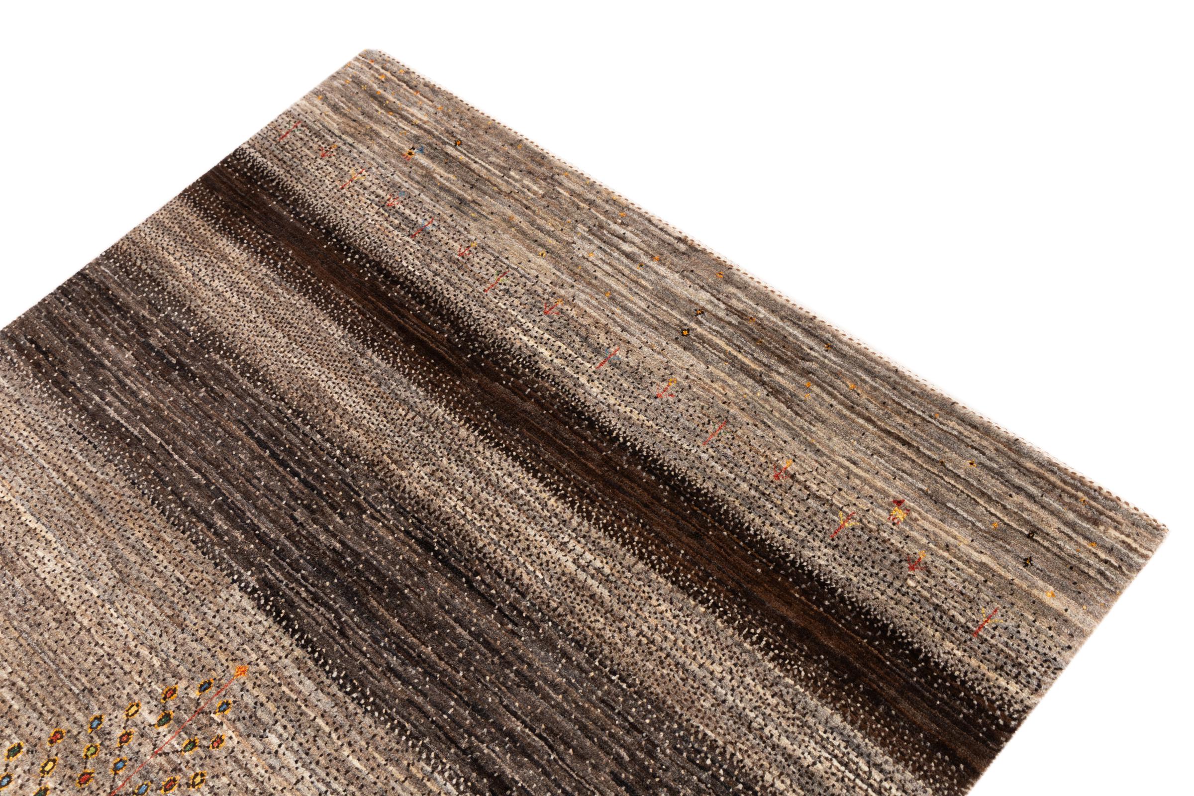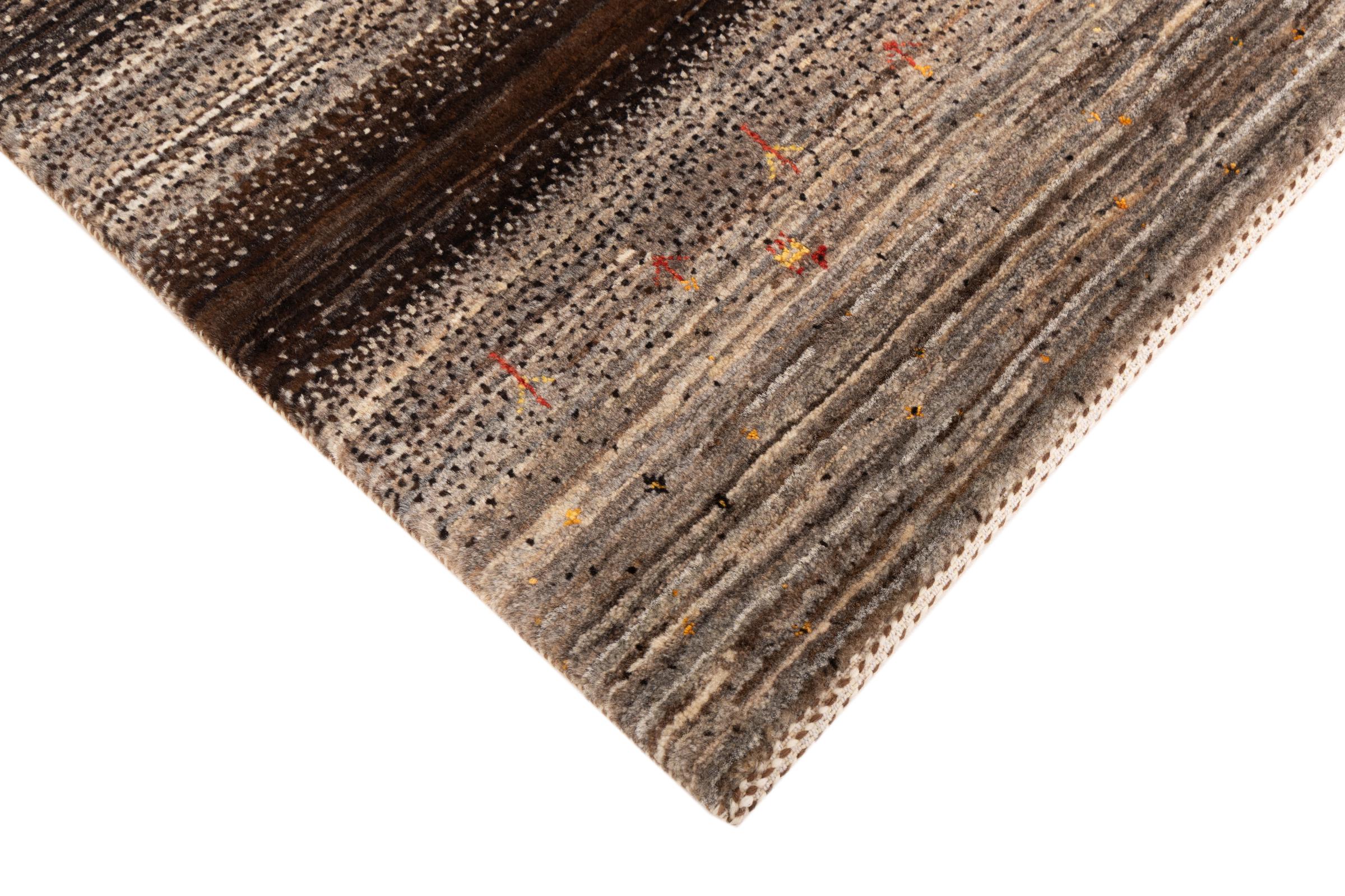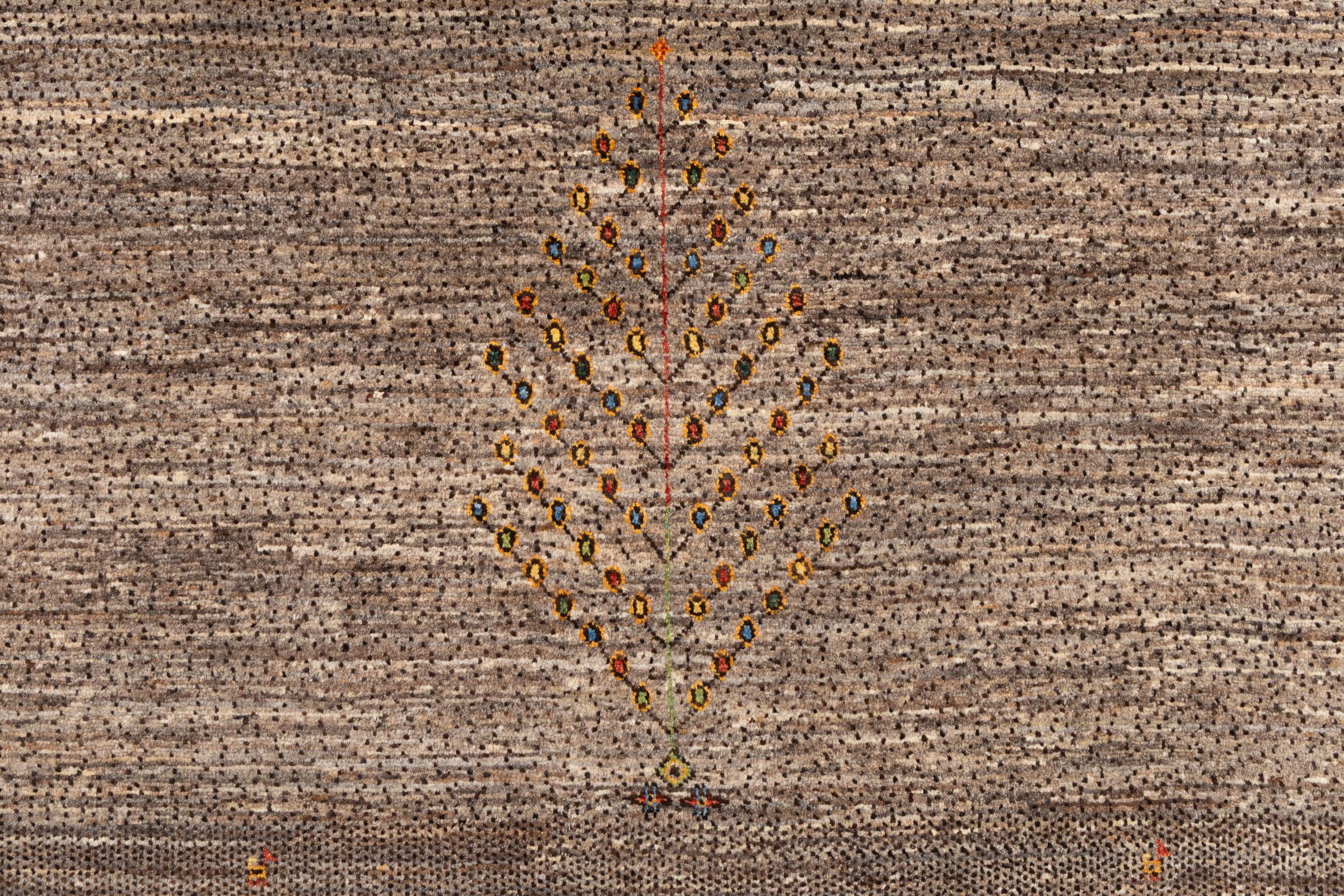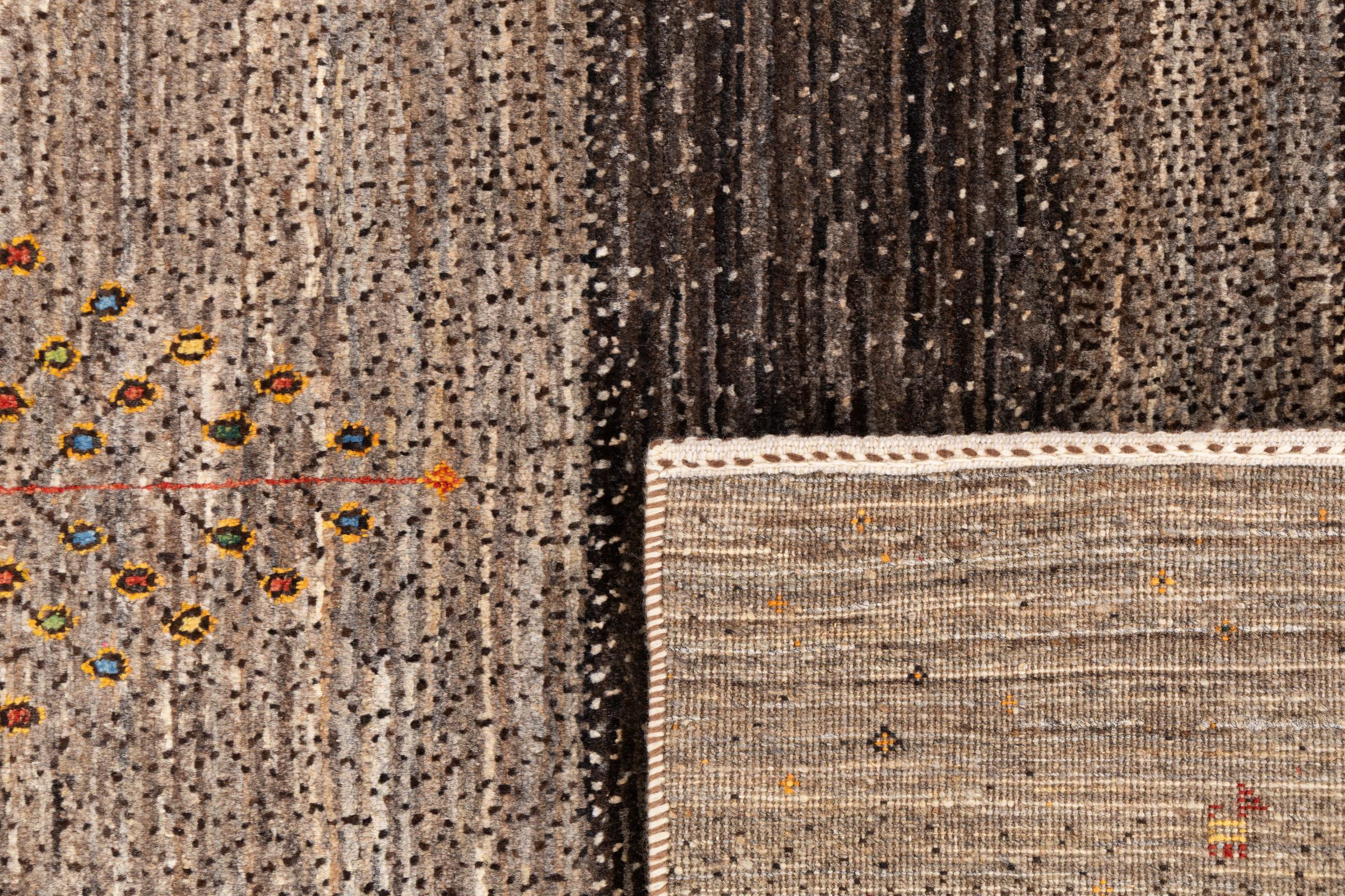 Ten piękny dywan jest perskim Gabbeh i dlatego należy do najwyższej jakości dywanów Gabbeh. Dywany są wiązane przez nomadów lub pół-nomadzi w Iranie zgodnie z tradycyjnym rzemiosłem. Proste motywy i wzory są w większości inspirowane bezpośrednim otoczeniem nomadów. Na przykład wielbłądy, drzewa lub krzewy można znaleźć na tradycyjnych dywanach. Perskie dywany Gabbeh wykonane są z wełny pochodzącej z lokalnie hodowanych stad owiec. Wełna jest więc w większości przypadków nadal obracana ręcznie. Tak więc każdy z tych orientalnych dywanów uosabia unikalny charakter wielowiekowej kultury.