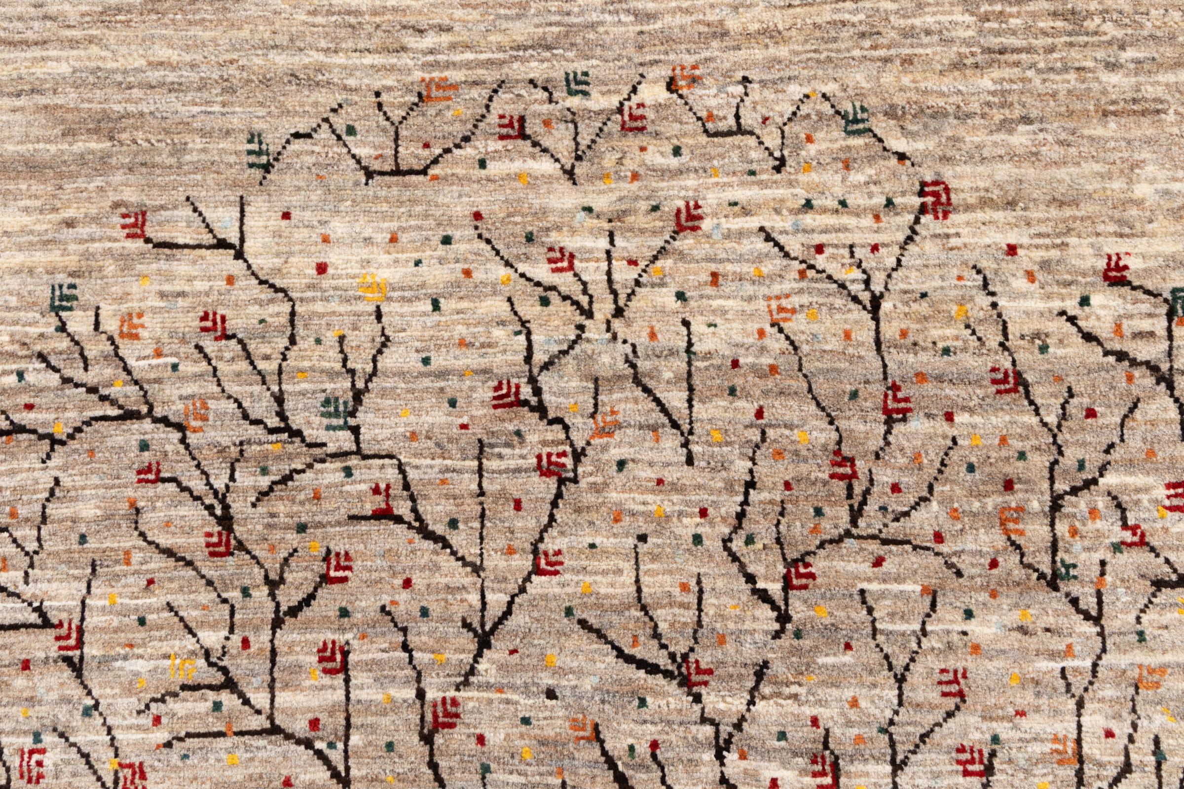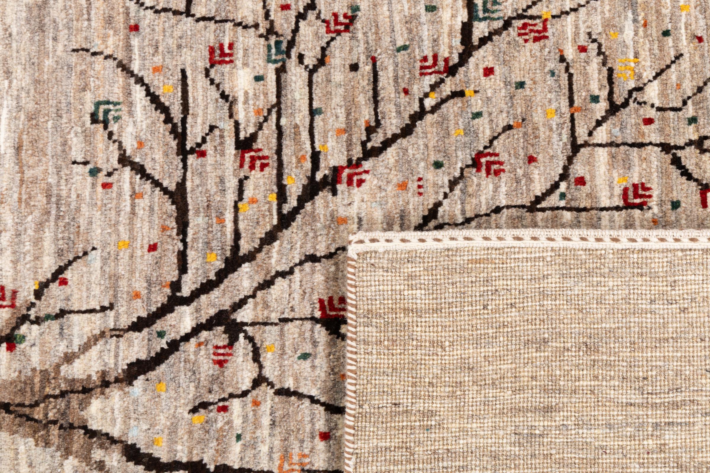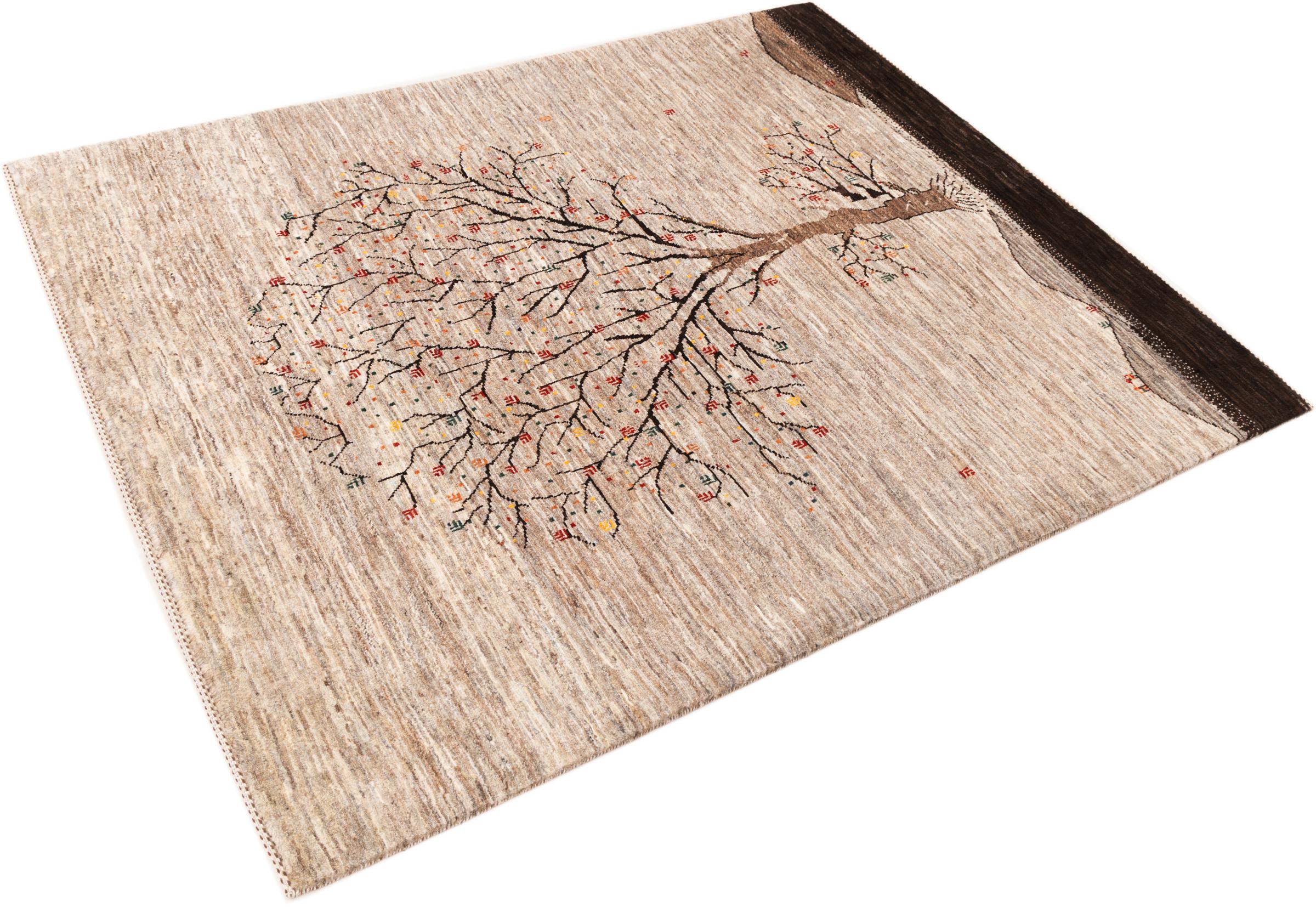 Ten piękny dywan jest perskim Gabbeh i dlatego należy do najwyższej jakości dywanów Gabbeh. Dywany są wiązane przez nomadów lub pół-nomadzi w Iranie zgodnie z tradycyjnym rzemiosłem. Proste motywy i wzory są w większości inspirowane bezpośrednim otoczeniem nomadów. Na przykład wielbłądy, drzewa lub krzewy można znaleźć na tradycyjnych dywanach. Perskie dywany Gabbeh wykonane są z wełny pochodzącej z lokalnie hodowanych stad owiec. Wełna jest więc w większości przypadków nadal obracana ręcznie. Tak więc każdy z tych orientalnych dywanów uosabia unikalny charakter wielowiekowej kultury.