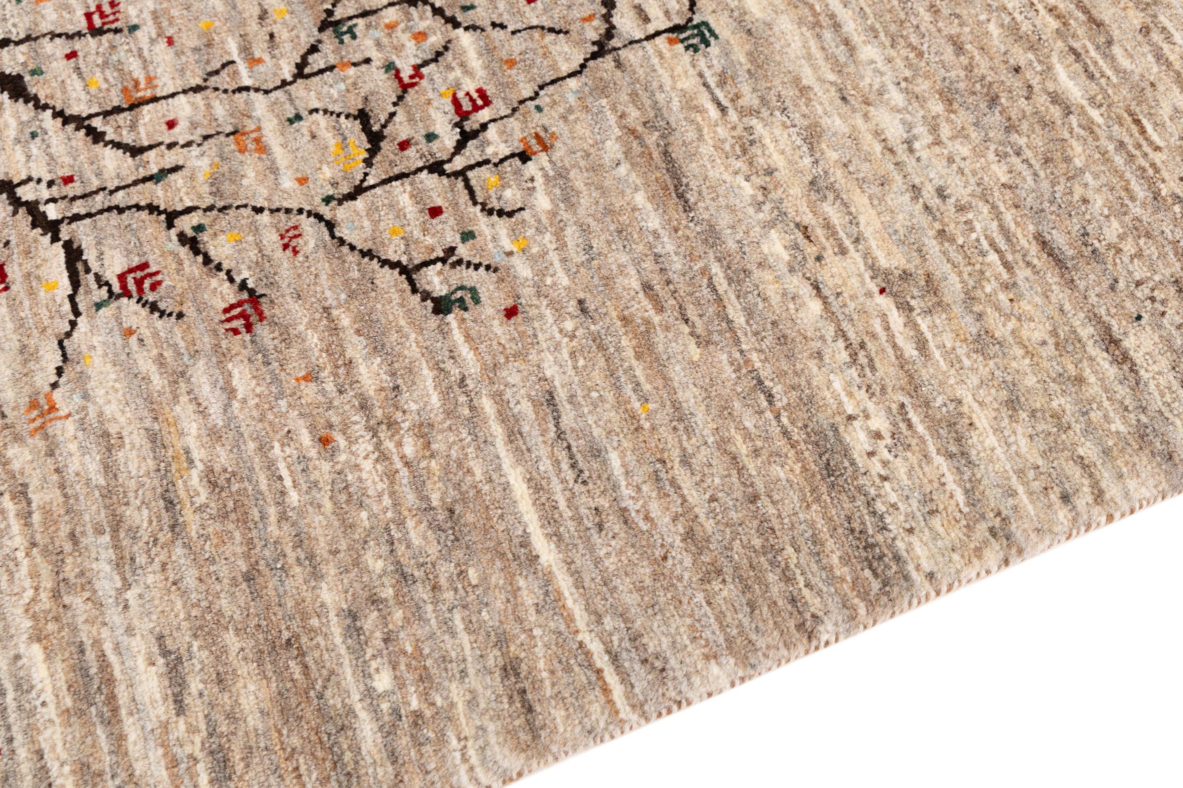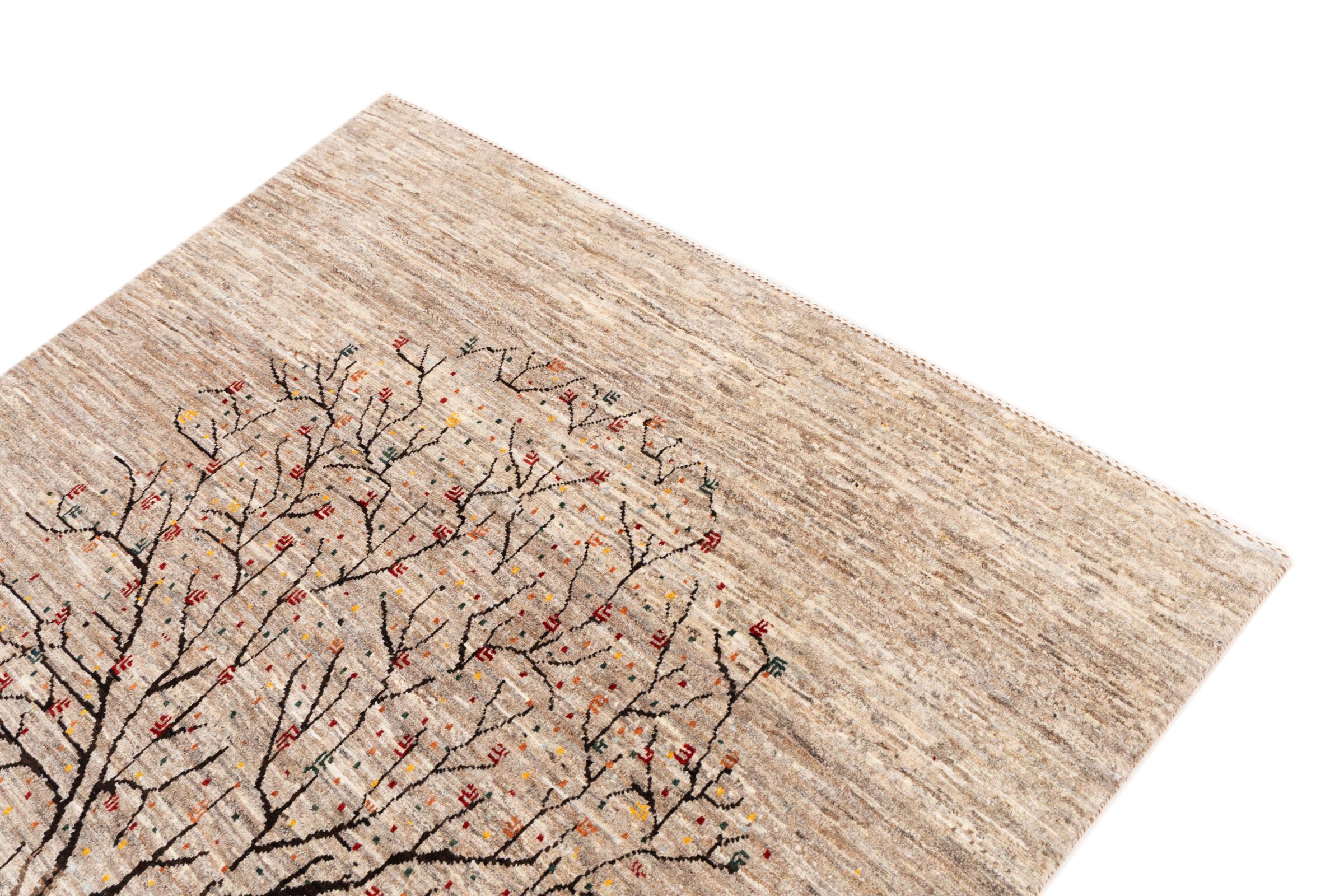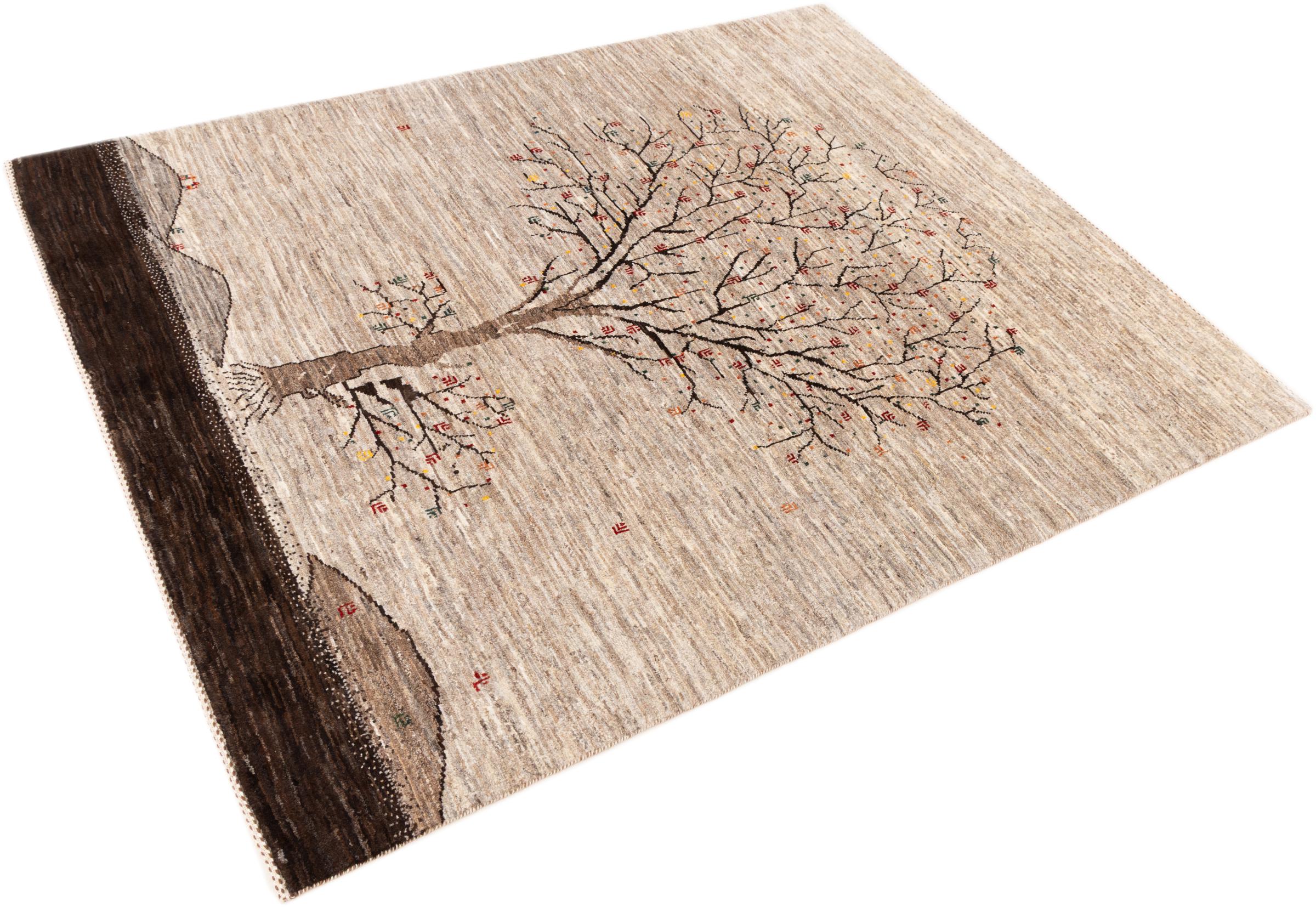 Ten piękny dywan jest perskim Gabbeh i dlatego należy do najwyższej jakości dywanów Gabbeh. Dywany są wiązane przez nomadów lub pół-nomadzi w Iranie zgodnie z tradycyjnym rzemiosłem. Proste motywy i wzory są w większości inspirowane bezpośrednim otoczeniem nomadów. Na przykład wielbłądy, drzewa lub krzewy można znaleźć na tradycyjnych dywanach. Perskie dywany Gabbeh wykonane są z wełny pochodzącej z lokalnie hodowanych stad owiec. Wełna jest więc w większości przypadków nadal obracana ręcznie. Tak więc każdy z tych orientalnych dywanów uosabia unikalny charakter wielowiekowej kultury.