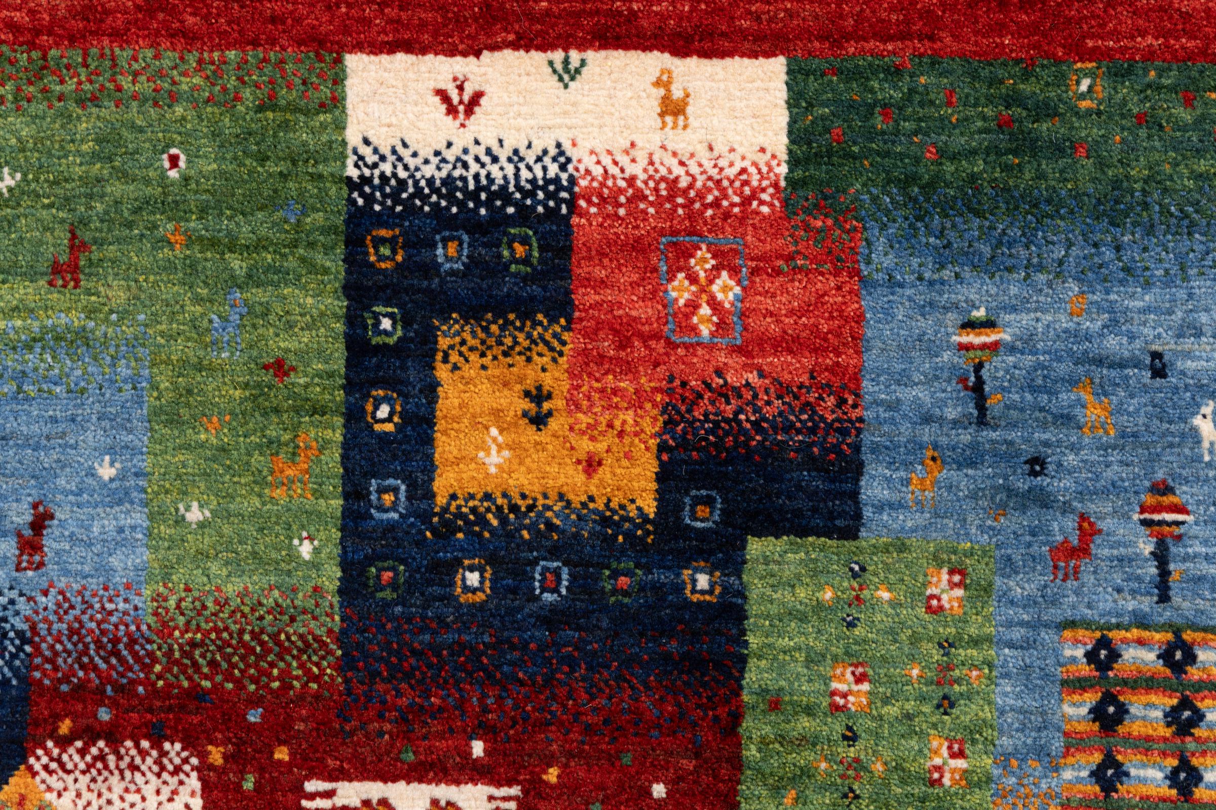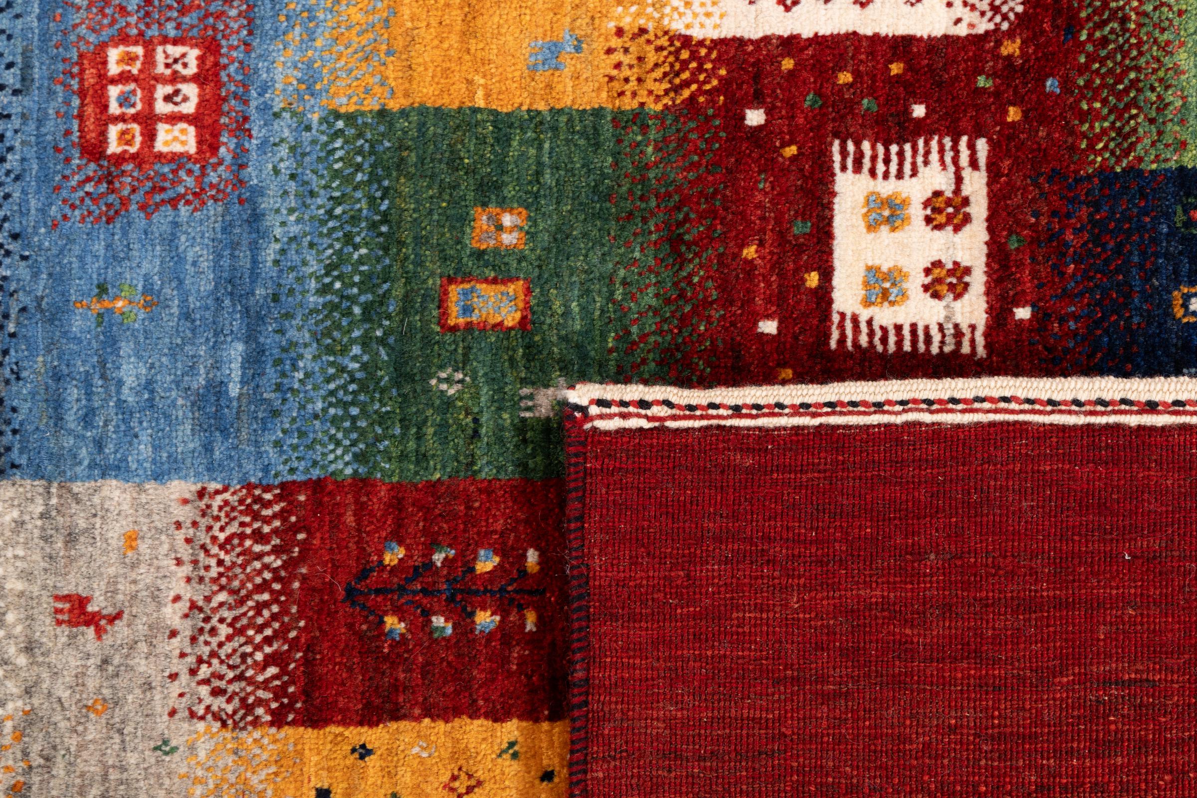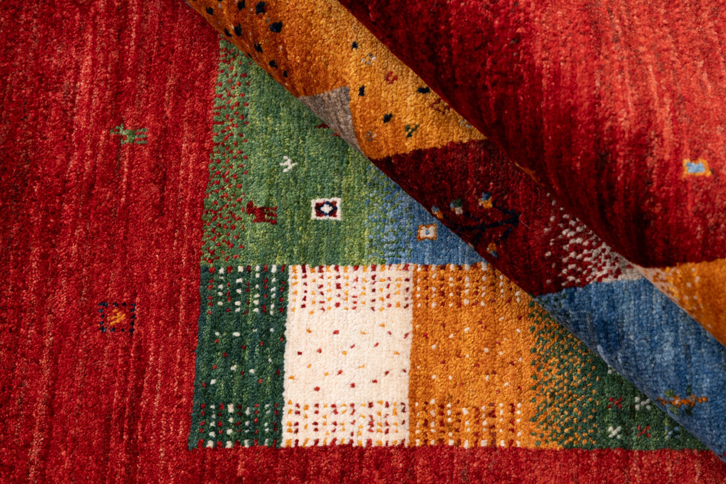 Ten piękny dywan jest perskim Gabbeh i dlatego należy do najwyższej jakości dywanów Gabbeh. Dywany są wiązane przez nomadów lub pół-nomadzi w Iranie zgodnie z tradycyjnym rzemiosłem. Proste motywy i wzory są w większości inspirowane bezpośrednim otoczeniem nomadów. Na przykład wielbłądy, drzewa lub krzewy można znaleźć na tradycyjnych dywanach. Perskie dywany Gabbeh wykonane są z wełny pochodzącej z lokalnie hodowanych stad owiec. Wełna jest więc w większości przypadków nadal obracana ręcznie. Tak więc każdy z tych orientalnych dywanów uosabia unikalny charakter wielowiekowej kultury.