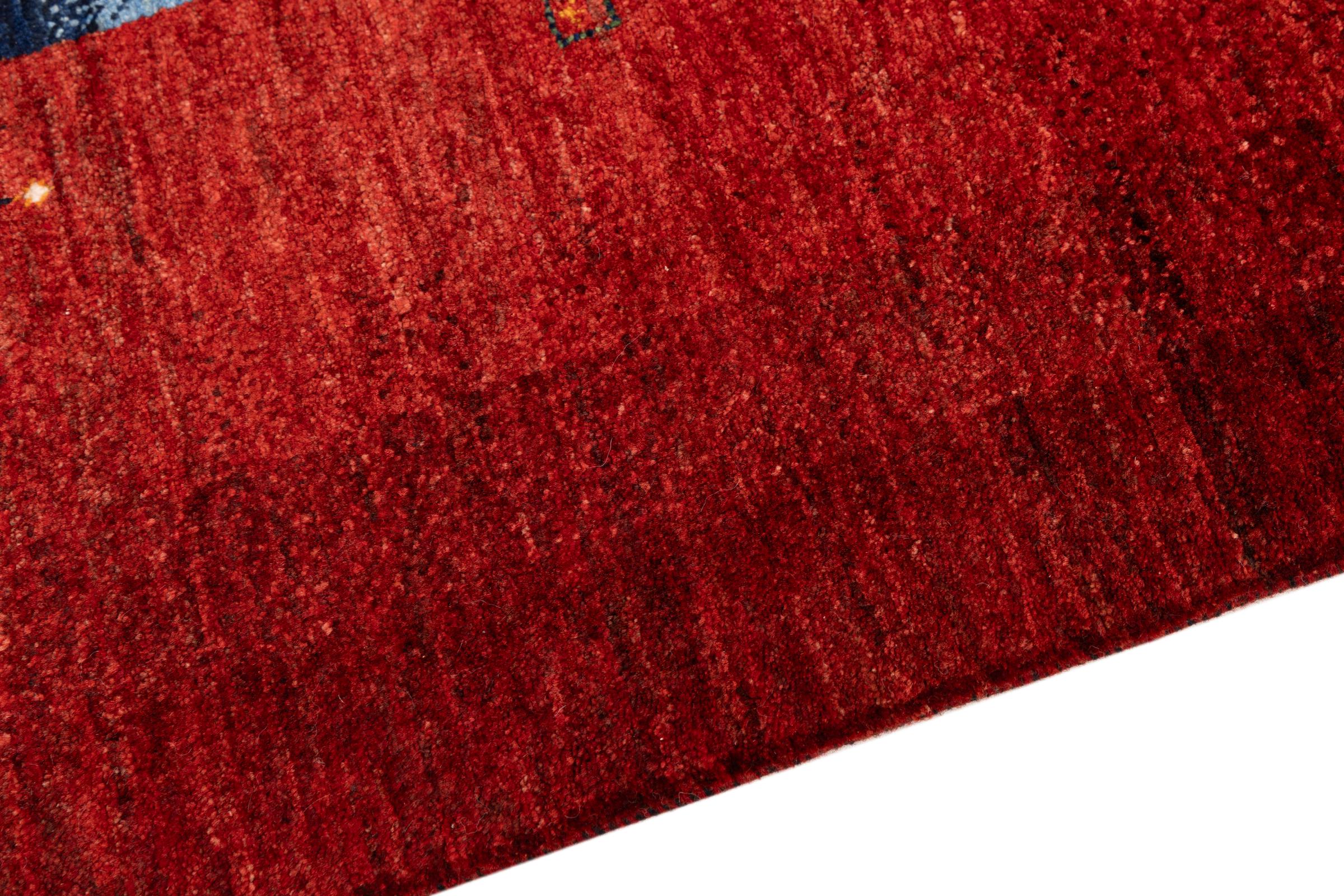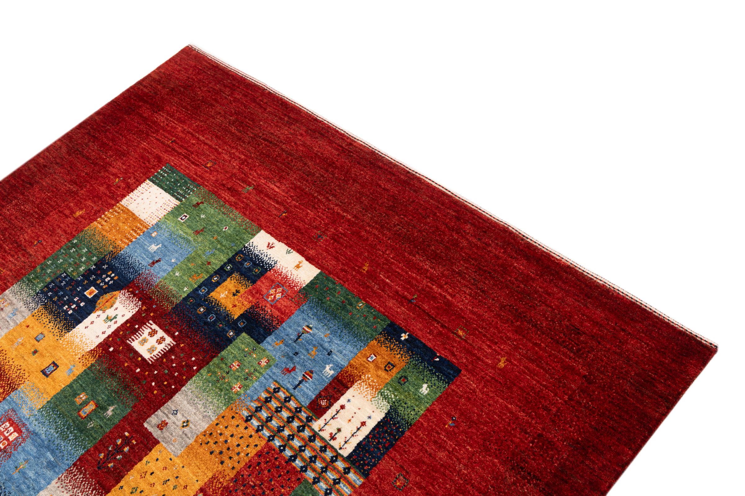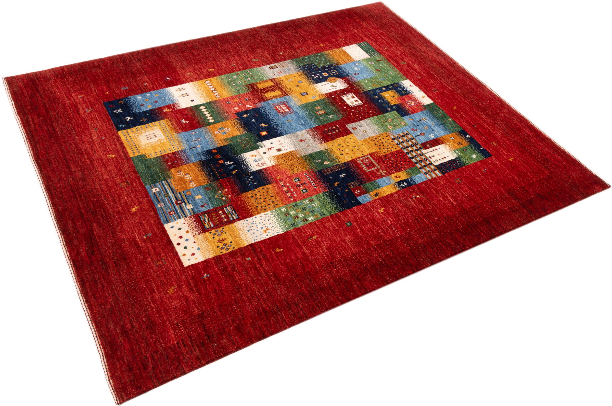 Ten piękny dywan jest perskim Gabbeh i dlatego należy do najwyższej jakości dywanów Gabbeh. Dywany są wiązane przez nomadów lub pół-nomadzi w Iranie zgodnie z tradycyjnym rzemiosłem. Proste motywy i wzory są w większości inspirowane bezpośrednim otoczeniem nomadów. Na przykład wielbłądy, drzewa lub krzewy można znaleźć na tradycyjnych dywanach. Perskie dywany Gabbeh wykonane są z wełny pochodzącej z lokalnie hodowanych stad owiec. Wełna jest więc w większości przypadków nadal obracana ręcznie. Tak więc każdy z tych orientalnych dywanów uosabia unikalny charakter wielowiekowej kultury.