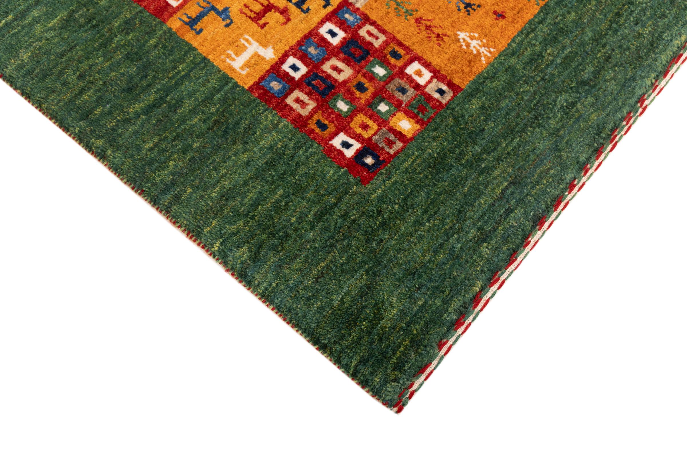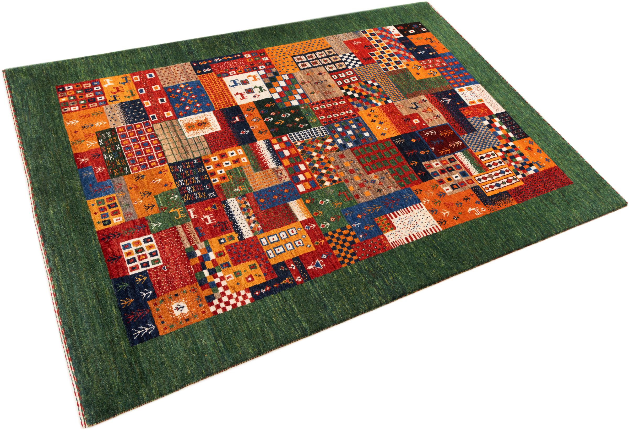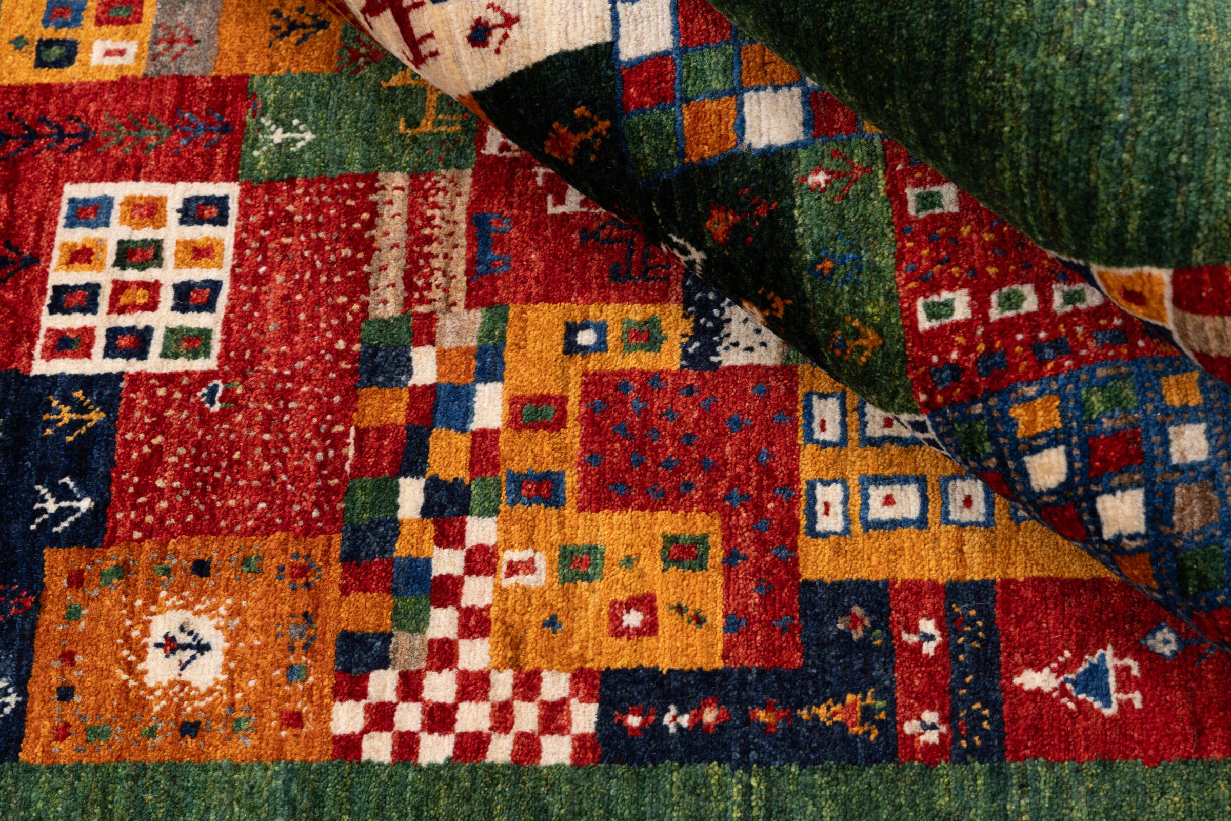 Ten piękny dywan jest perskim Gabbeh i dlatego należy do najwyższej jakości dywanów Gabbeh. Dywany są wiązane przez nomadów lub pół-nomadzi w Iranie zgodnie z tradycyjnym rzemiosłem. Proste motywy i wzory są w większości inspirowane bezpośrednim otoczeniem nomadów. Na przykład wielbłądy, drzewa lub krzewy można znaleźć na tradycyjnych dywanach. Perskie dywany Gabbeh wykonane są z wełny pochodzącej z lokalnie hodowanych stad owiec. Wełna jest więc w większości przypadków nadal obracana ręcznie. Tak więc każdy z tych orientalnych dywanów uosabia unikalny charakter wielowiekowej kultury.