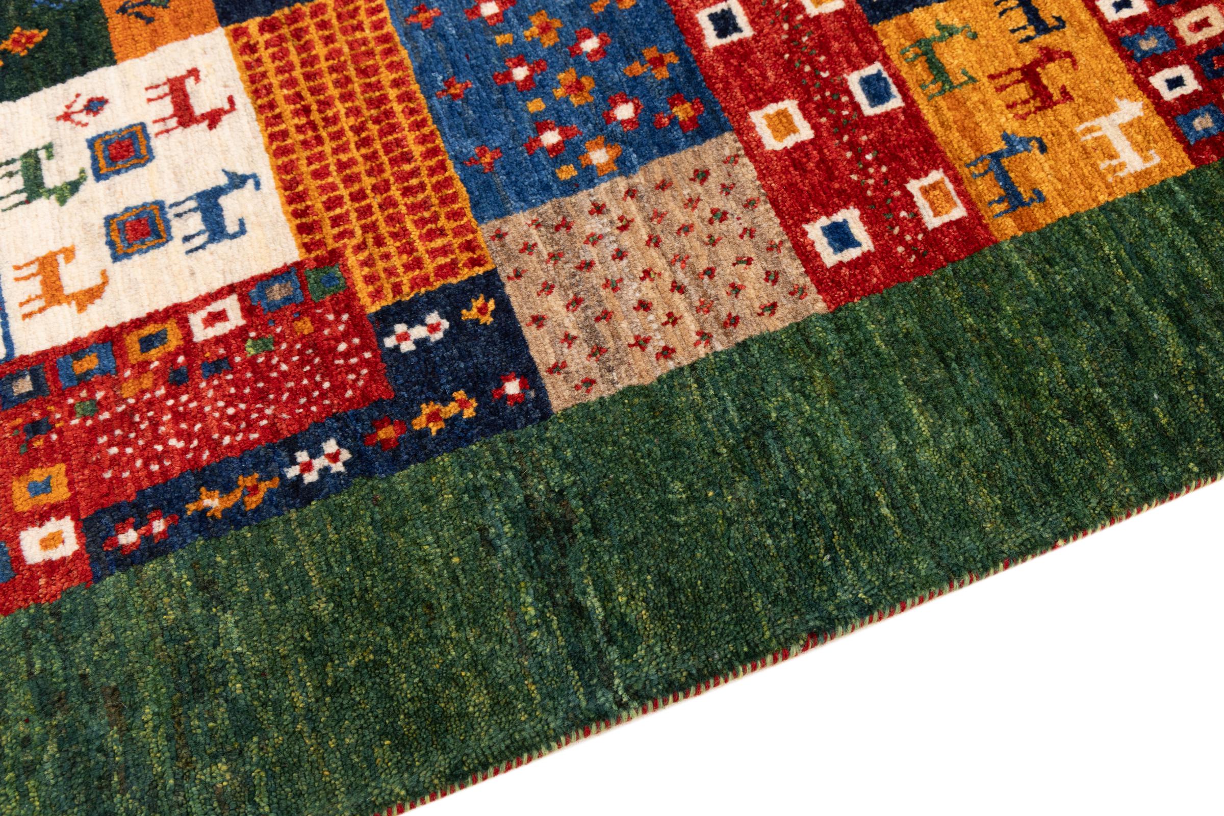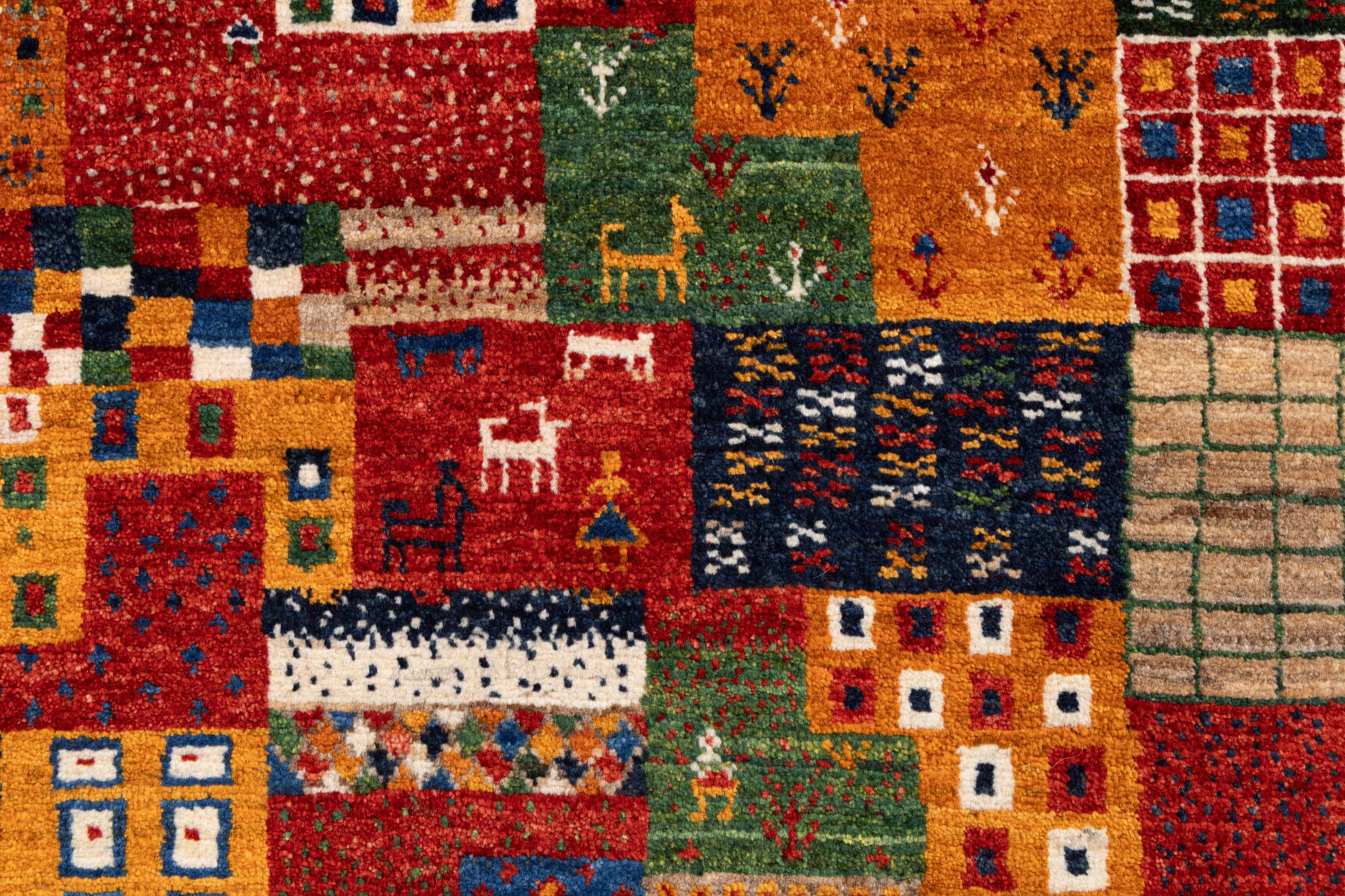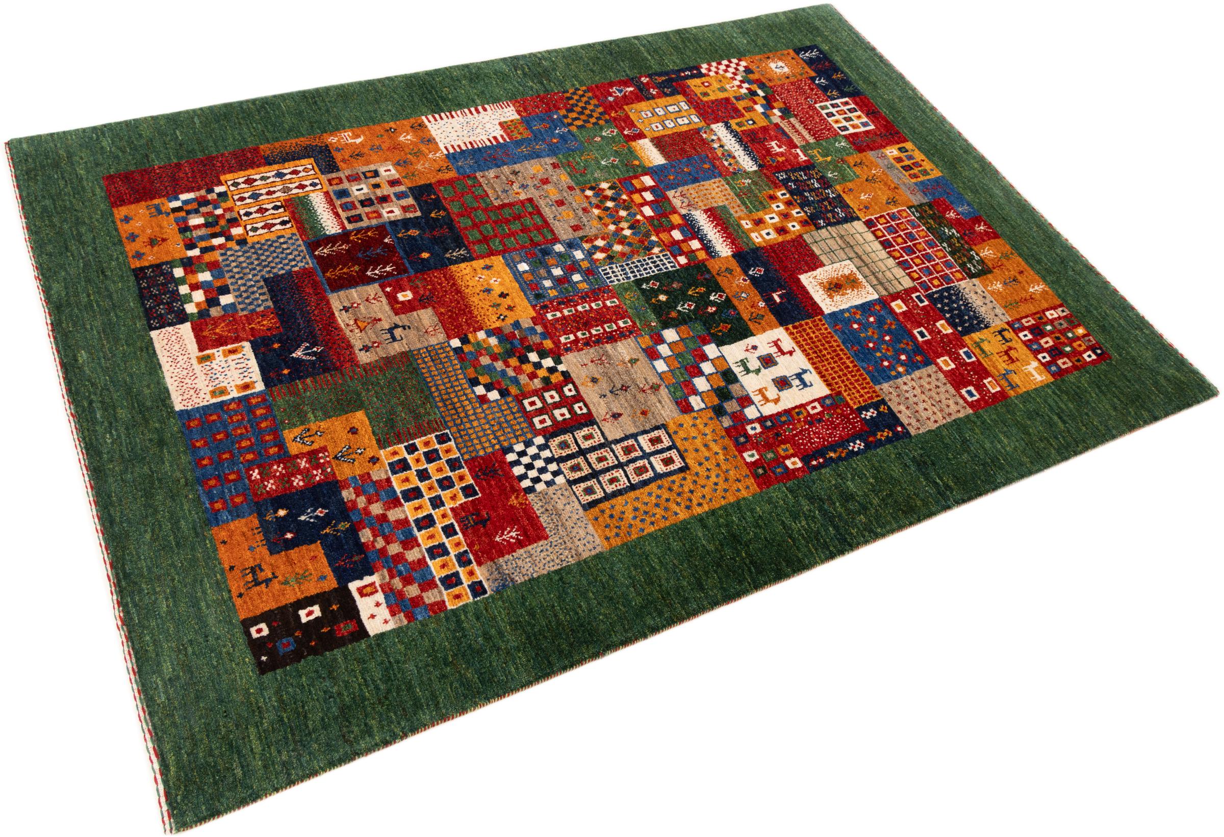 Ten piękny dywan jest perskim Gabbeh i dlatego należy do najwyższej jakości dywanów Gabbeh. Dywany są wiązane przez nomadów lub pół-nomadzi w Iranie zgodnie z tradycyjnym rzemiosłem. Proste motywy i wzory są w większości inspirowane bezpośrednim otoczeniem nomadów. Na przykład wielbłądy, drzewa lub krzewy można znaleźć na tradycyjnych dywanach. Perskie dywany Gabbeh wykonane są z wełny pochodzącej z lokalnie hodowanych stad owiec. Wełna jest więc w większości przypadków nadal obracana ręcznie. Tak więc każdy z tych orientalnych dywanów uosabia unikalny charakter wielowiekowej kultury.