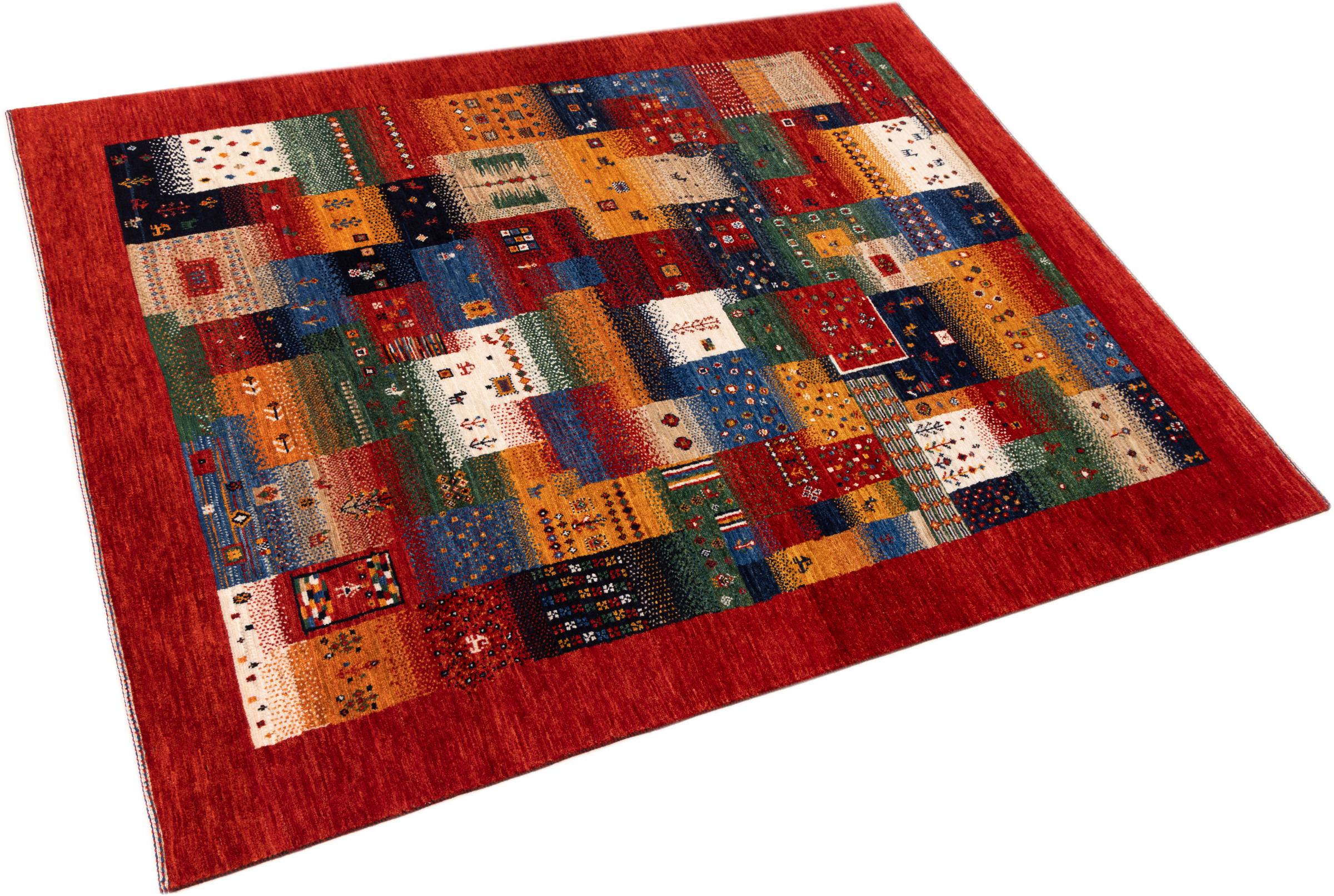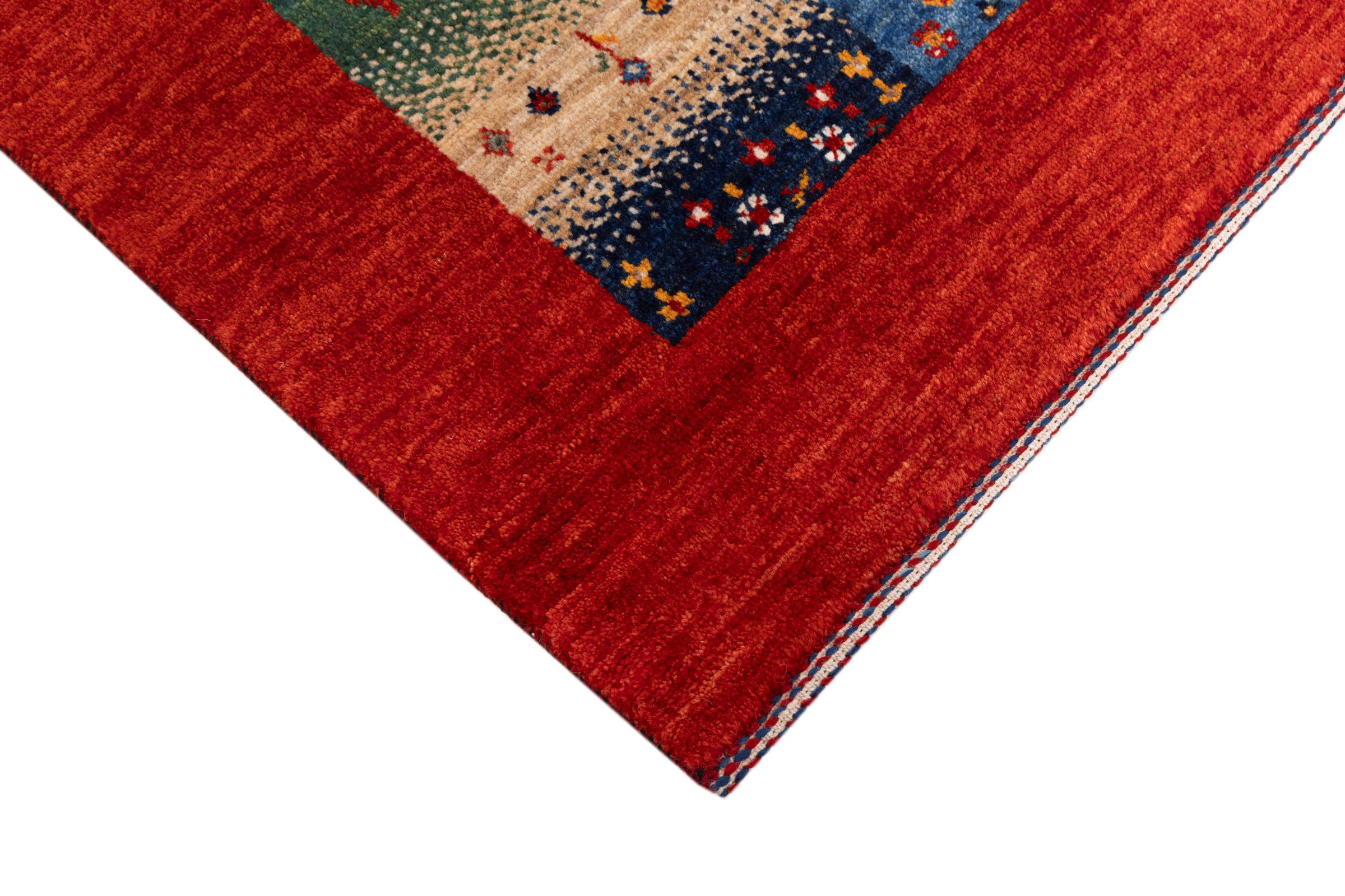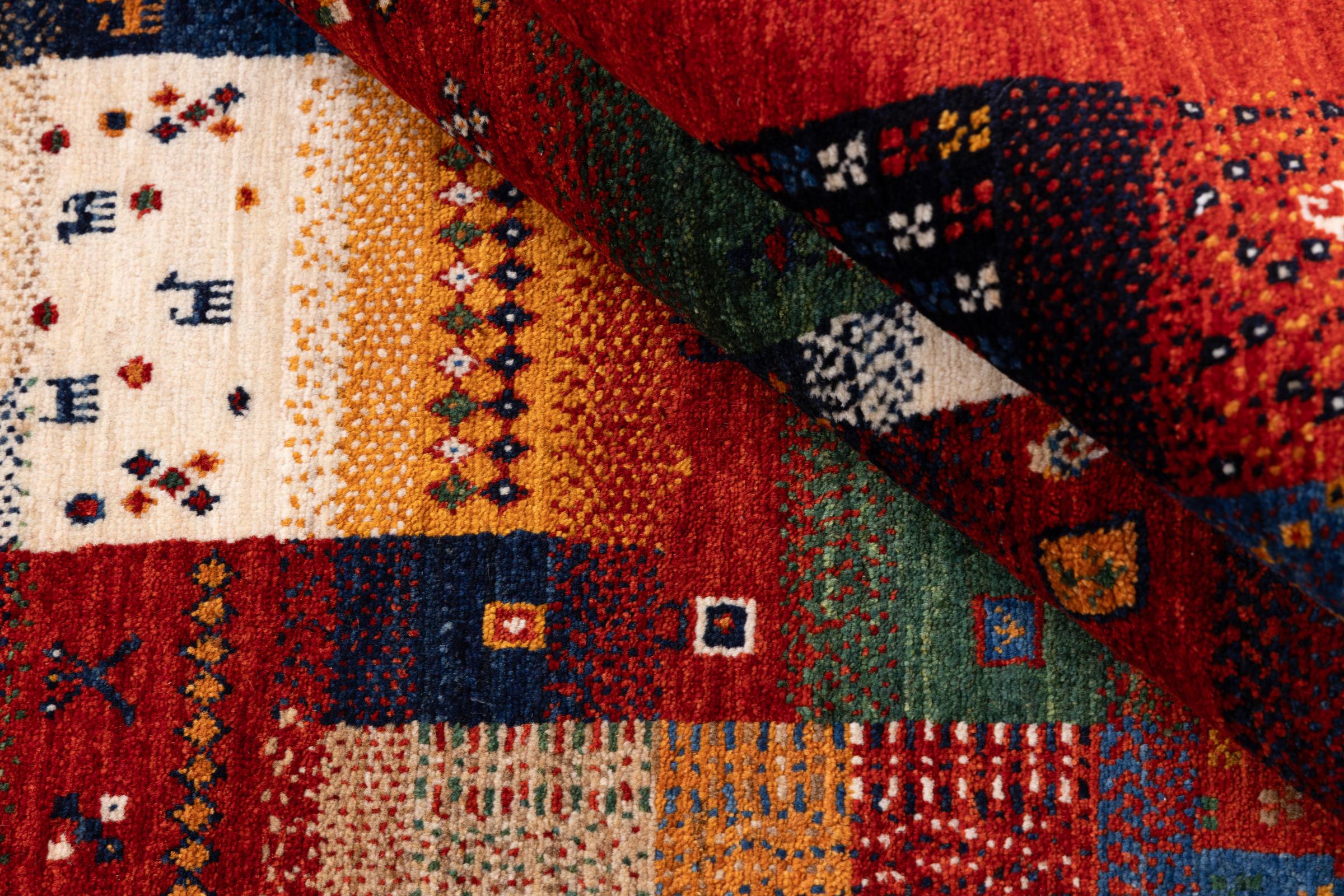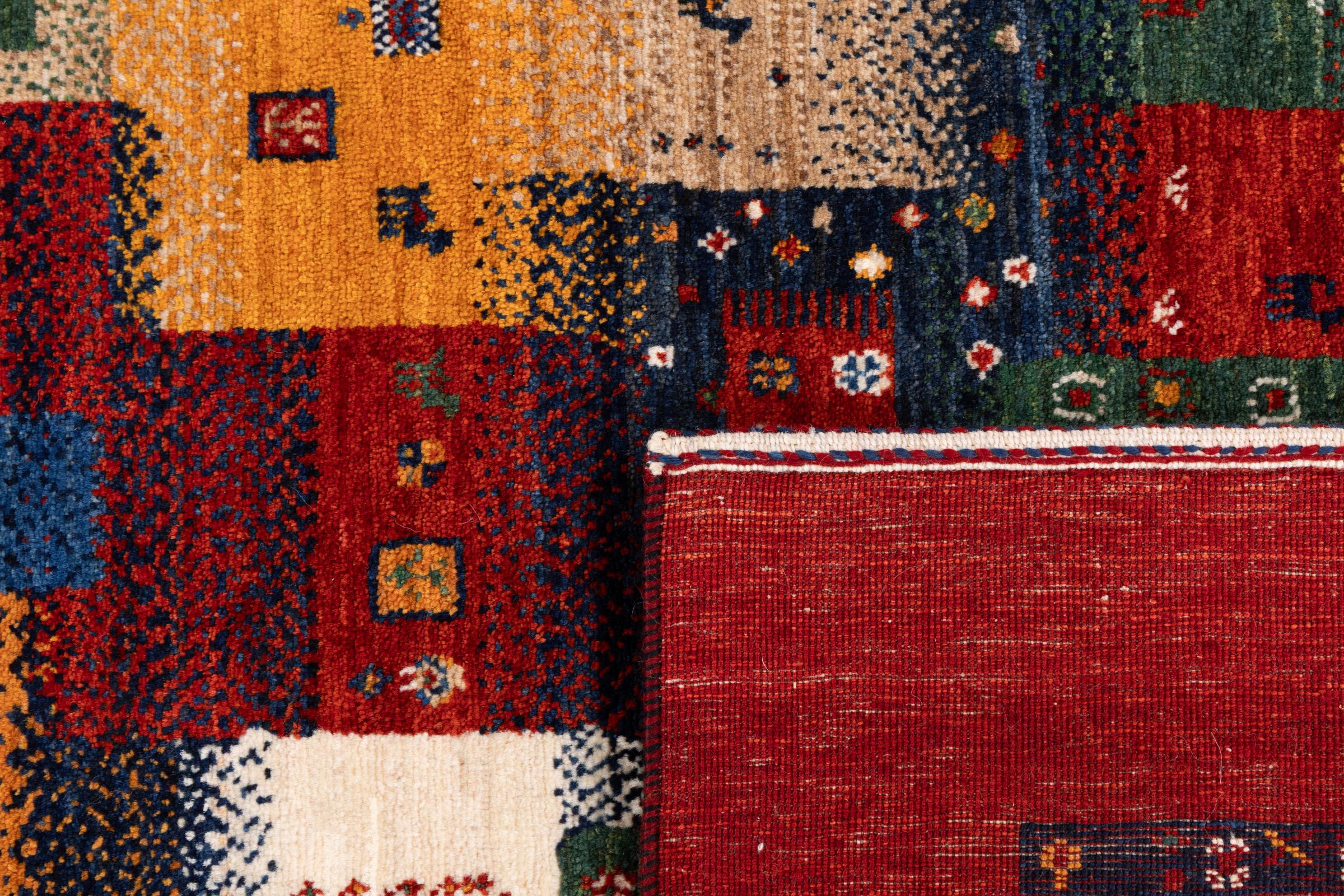 Ten piękny dywan jest perskim Gabbeh i dlatego należy do najwyższej jakości dywanów Gabbeh. Dywany są wiązane przez nomadów lub pół-nomadzi w Iranie zgodnie z tradycyjnym rzemiosłem. Proste motywy i wzory są w większości inspirowane bezpośrednim otoczeniem nomadów. Na przykład wielbłądy, drzewa lub krzewy można znaleźć na tradycyjnych dywanach. Perskie dywany Gabbeh wykonane są z wełny pochodzącej z lokalnie hodowanych stad owiec. Wełna jest więc w większości przypadków nadal obracana ręcznie. Tak więc każdy z tych orientalnych dywanów uosabia unikalny charakter wielowiekowej kultury.