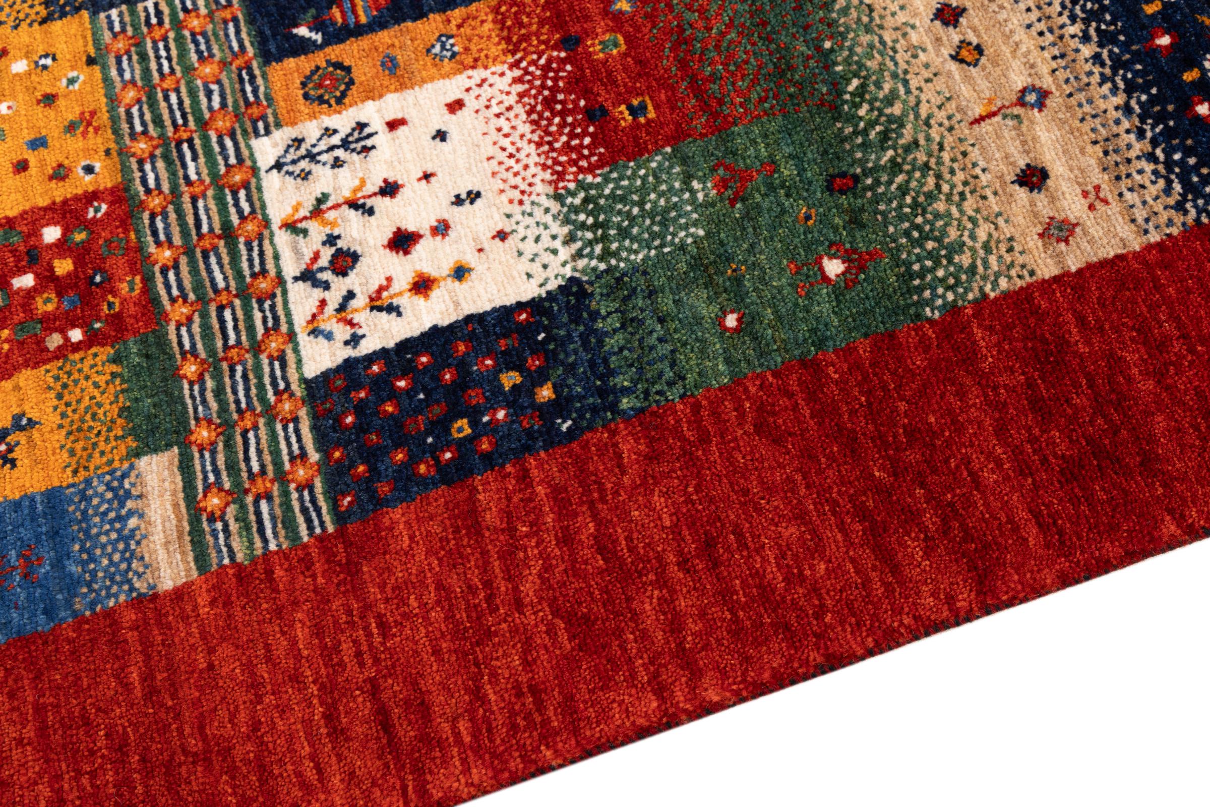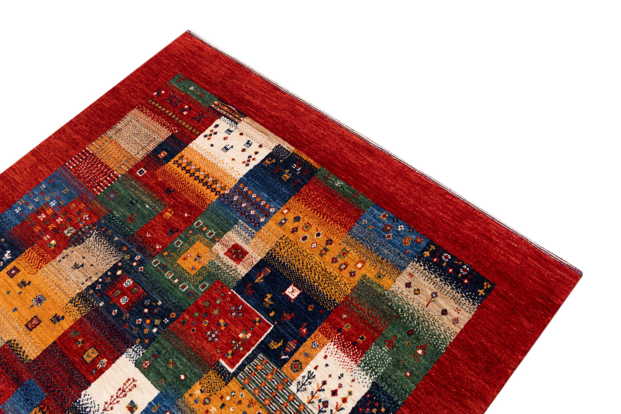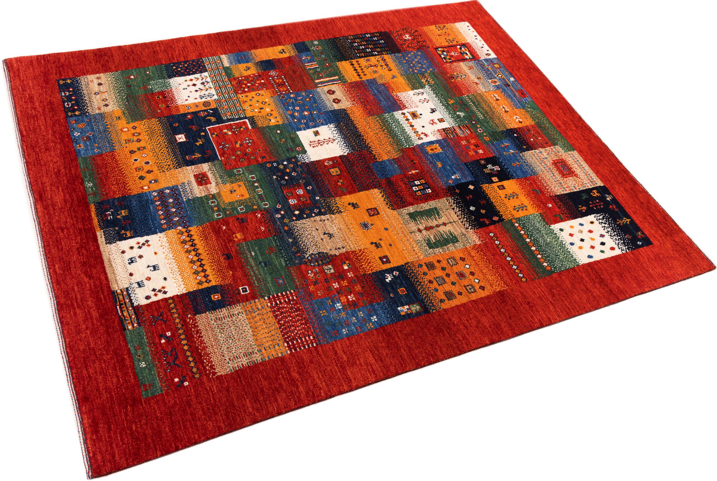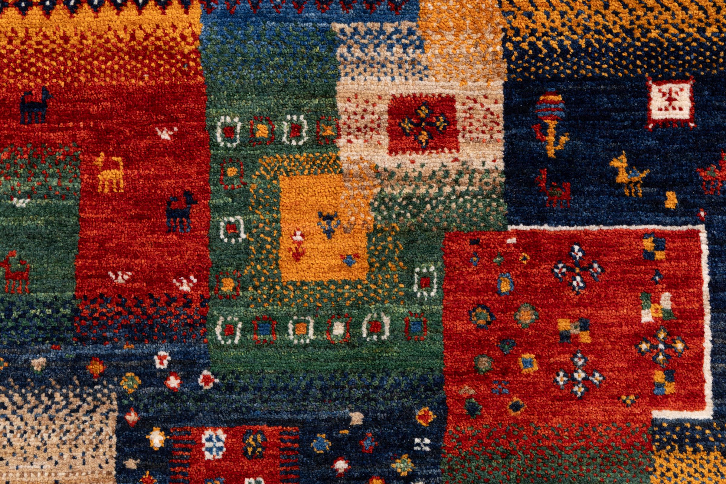 Ten piękny dywan jest perskim Gabbeh i dlatego należy do najwyższej jakości dywanów Gabbeh. Dywany są wiązane przez nomadów lub pół-nomadzi w Iranie zgodnie z tradycyjnym rzemiosłem. Proste motywy i wzory są w większości inspirowane bezpośrednim otoczeniem nomadów. Na przykład wielbłądy, drzewa lub krzewy można znaleźć na tradycyjnych dywanach. Perskie dywany Gabbeh wykonane są z wełny pochodzącej z lokalnie hodowanych stad owiec. Wełna jest więc w większości przypadków nadal obracana ręcznie. Tak więc każdy z tych orientalnych dywanów uosabia unikalny charakter wielowiekowej kultury.
