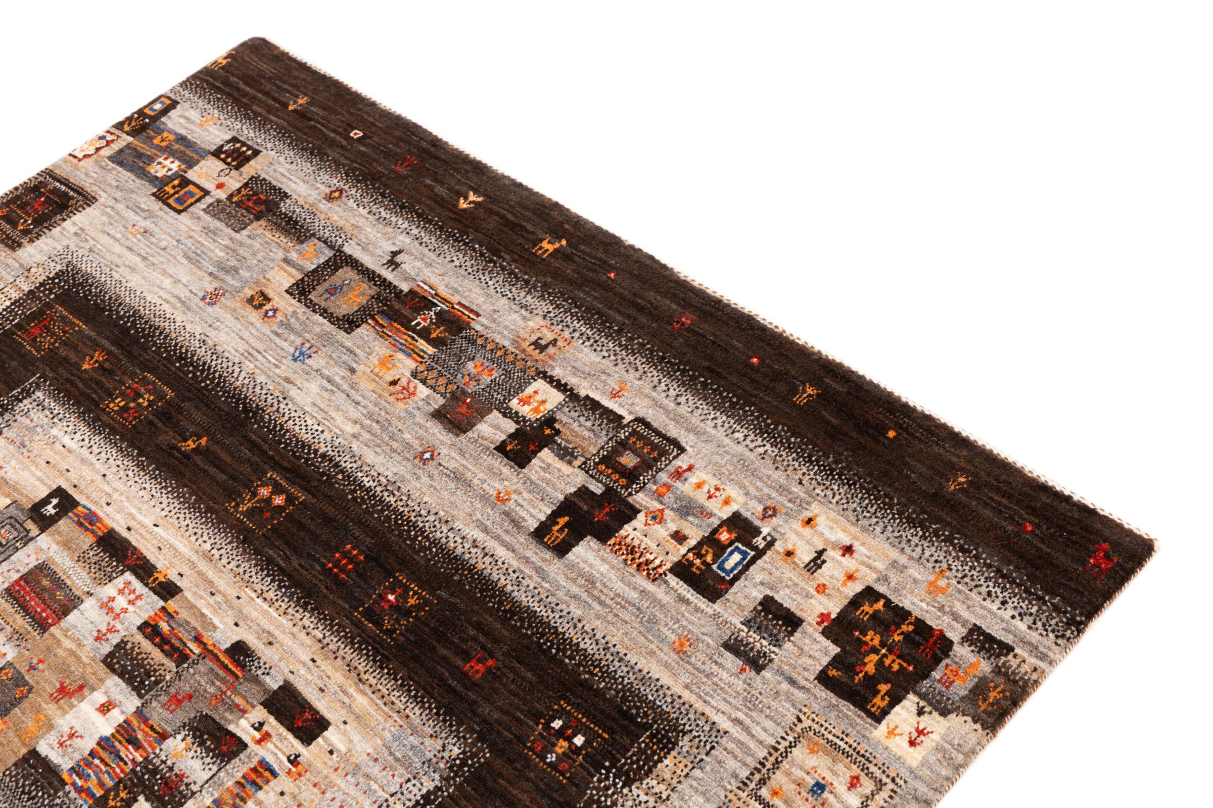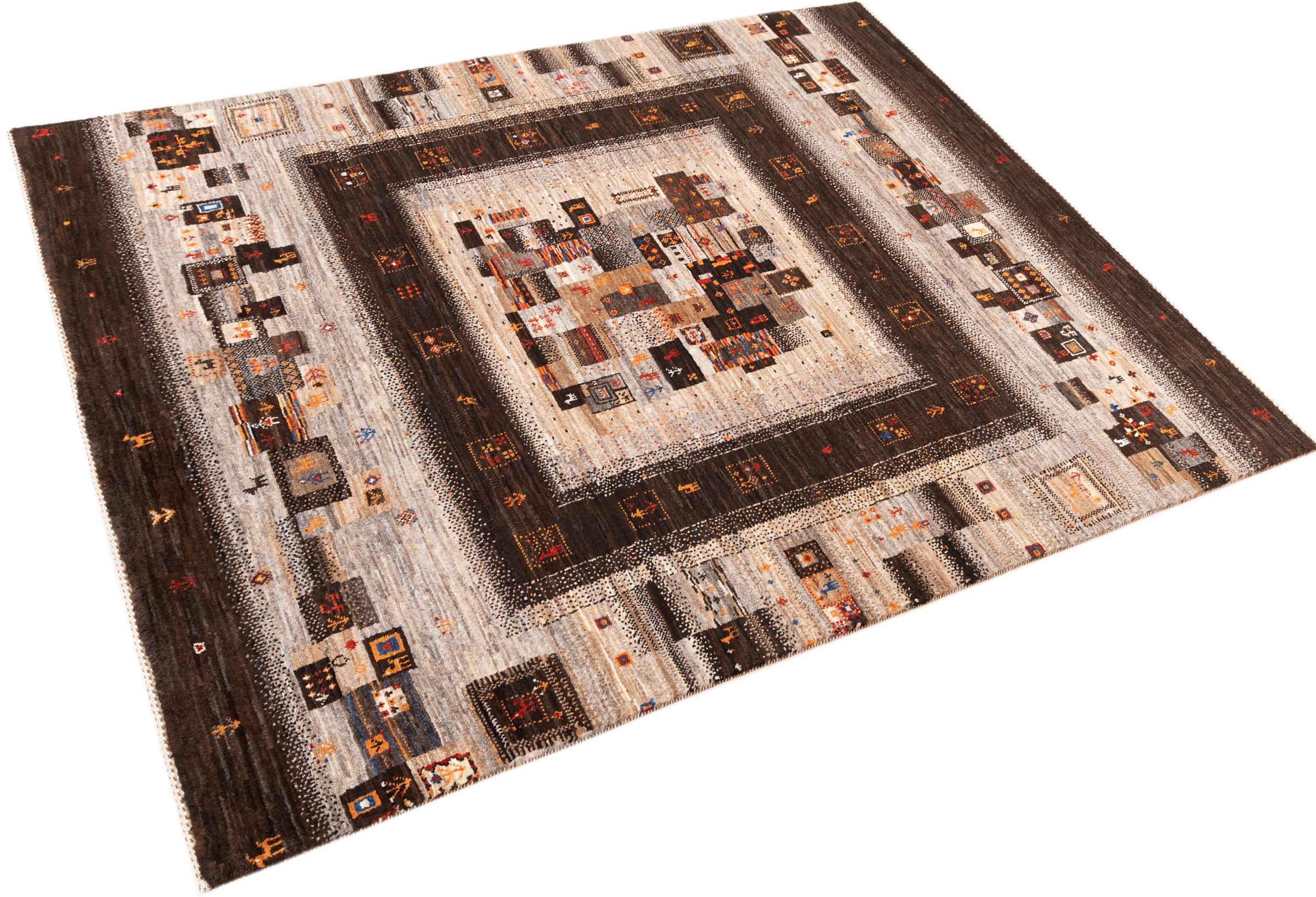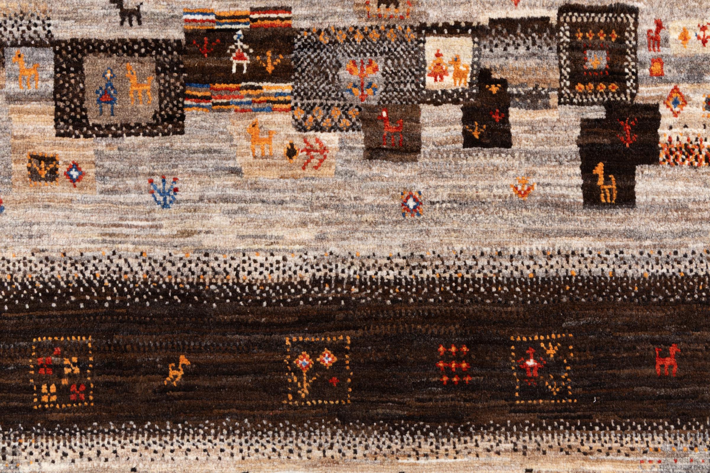 Ten piękny dywan jest perskim Gabbeh i dlatego należy do najwyższej jakości dywanów Gabbeh. Dywany są wiązane przez nomadów lub pół-nomadzi w Iranie zgodnie z tradycyjnym rzemiosłem. Proste motywy i wzory są w większości inspirowane bezpośrednim otoczeniem nomadów. Na przykład wielbłądy, drzewa lub krzewy można znaleźć na tradycyjnych dywanach. Perskie dywany Gabbeh wykonane są z wełny pochodzącej z lokalnie hodowanych stad owiec. Wełna jest więc w większości przypadków nadal obracana ręcznie. Tak więc każdy z tych orientalnych dywanów uosabia unikalny charakter wielowiekowej kultury.