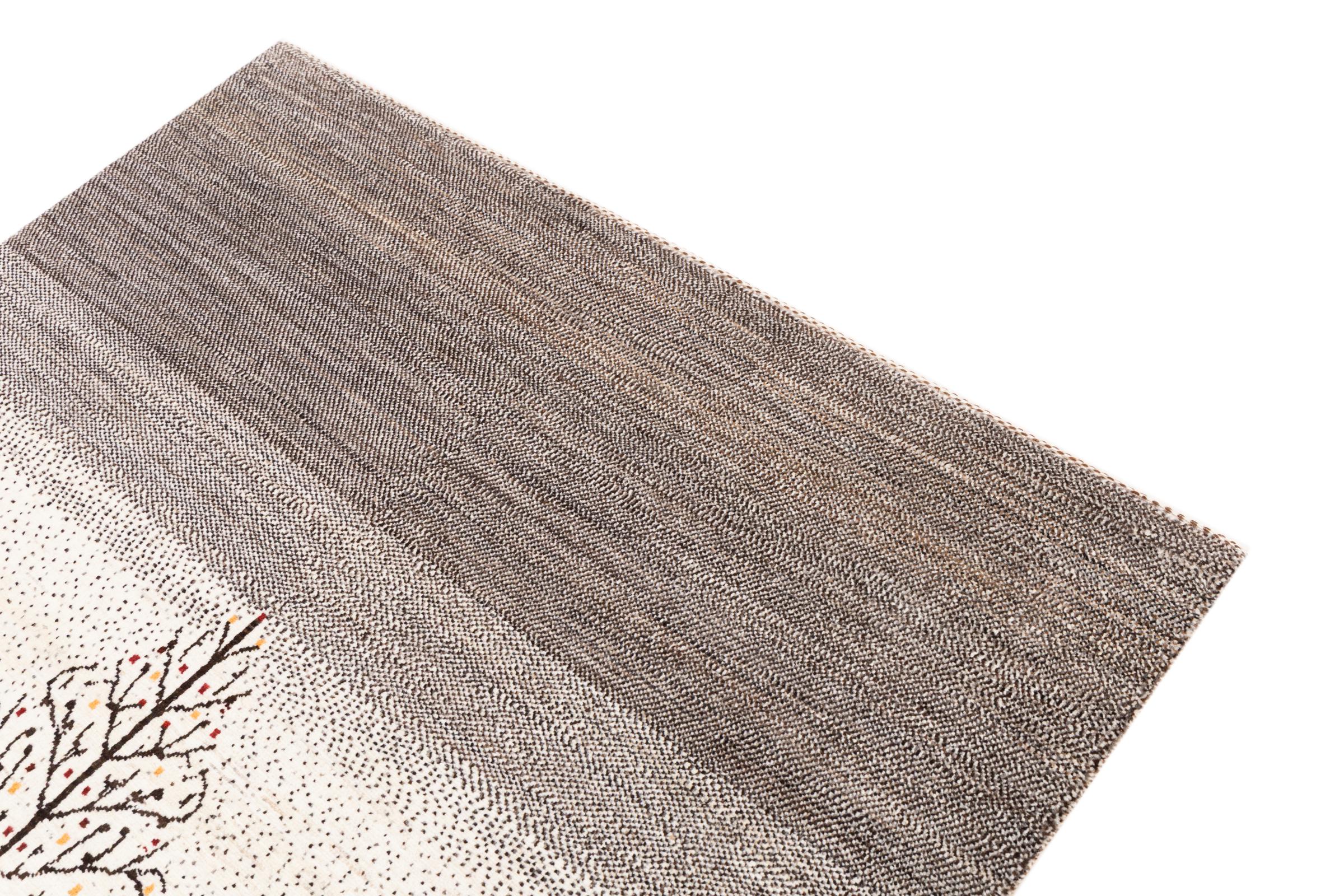 Ten piękny dywan jest perskim Gabbeh i dlatego należy do najwyższej jakości dywanów Gabbeh. Dywany są wiązane przez nomadów lub pół-nomadzi w Iranie zgodnie z tradycyjnym rzemiosłem. Proste motywy i wzory są w większości inspirowane bezpośrednim otoczeniem nomadów. Na przykład wielbłądy, drzewa lub krzewy można znaleźć na tradycyjnych dywanach. Perskie dywany Gabbeh wykonane są z wełny pochodzącej z lokalnie hodowanych stad owiec. Wełna jest więc w większości przypadków nadal obracana ręcznie. Tak więc każdy z tych orientalnych dywanów uosabia unikalny charakter wielowiekowej kultury.