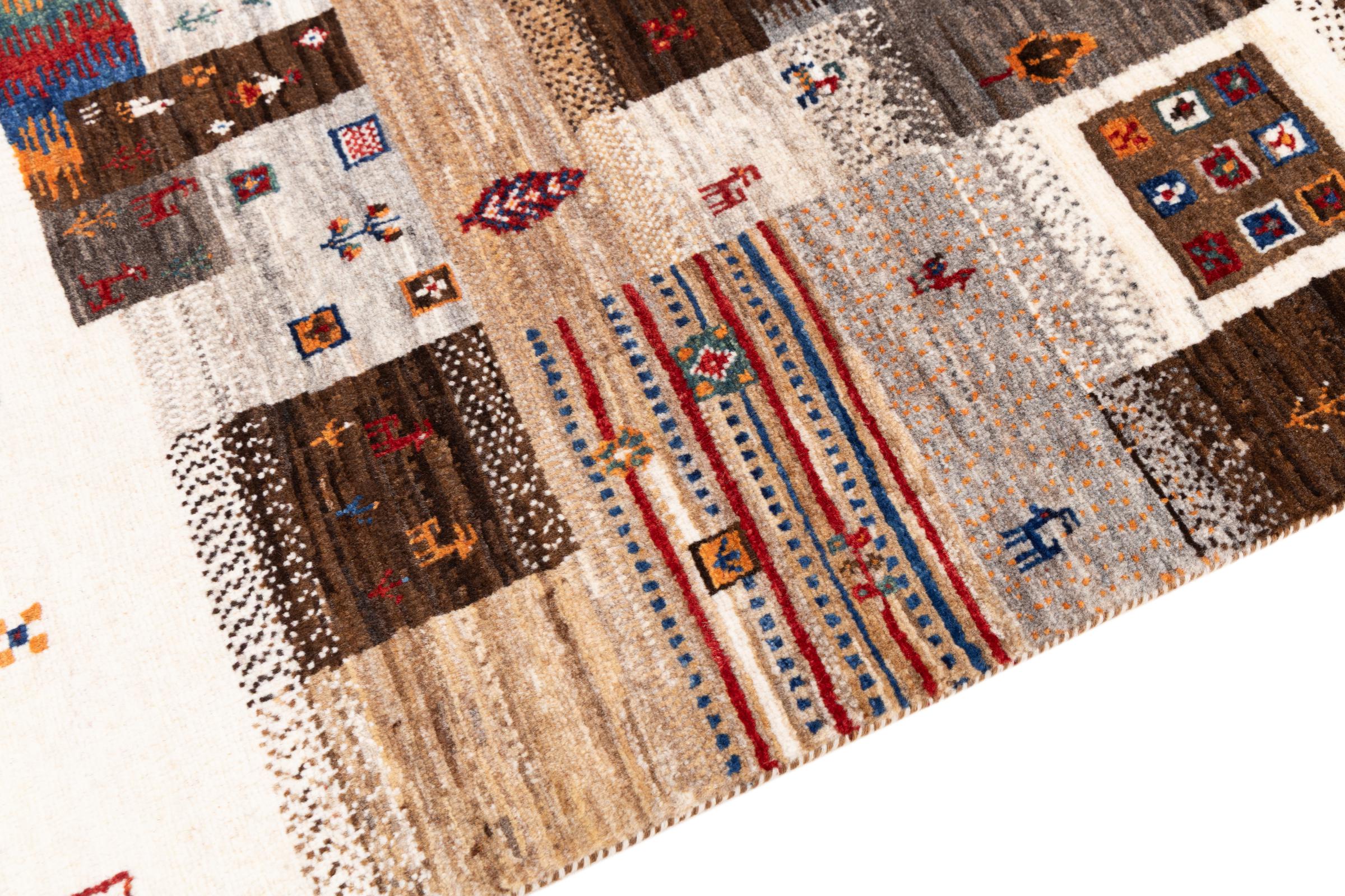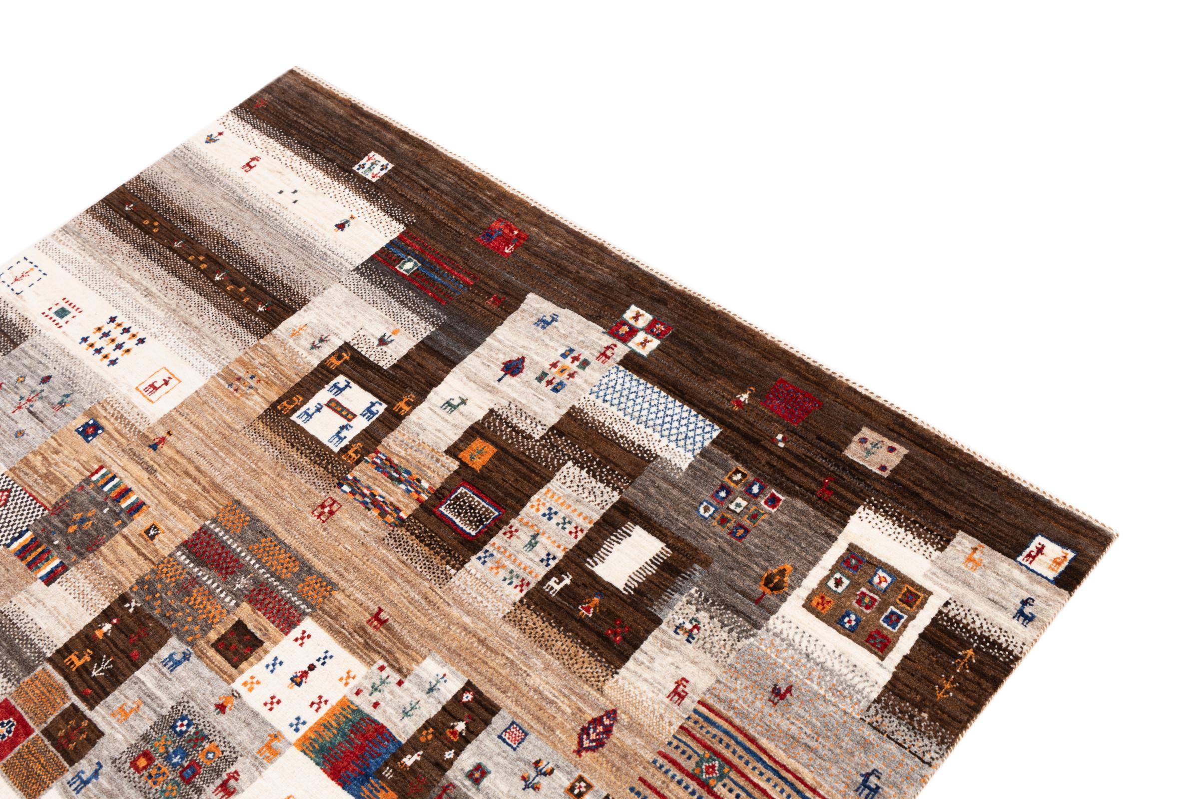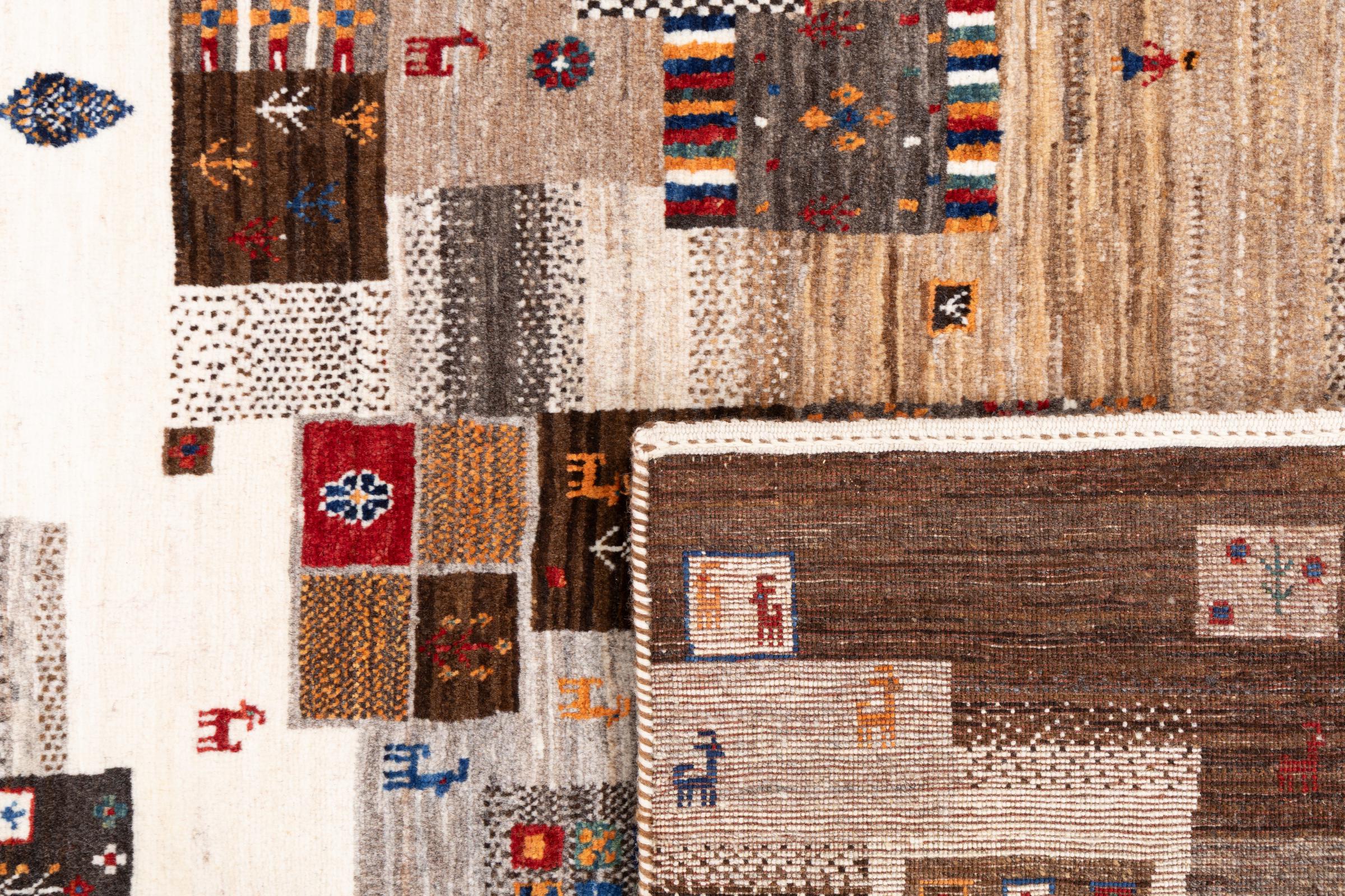 Ten piękny dywan jest perskim Gabbeh i dlatego należy do najwyższej jakości dywanów Gabbeh. Dywany są wiązane przez nomadów lub pół-nomadzi w Iranie zgodnie z tradycyjnym rzemiosłem. Proste motywy i wzory są w większości inspirowane bezpośrednim otoczeniem nomadów. Na przykład wielbłądy, drzewa lub krzewy można znaleźć na tradycyjnych dywanach. Perskie dywany Gabbeh wykonane są z wełny pochodzącej z lokalnie hodowanych stad owiec. Wełna jest więc w większości przypadków nadal obracana ręcznie. Tak więc każdy z tych orientalnych dywanów uosabia unikalny charakter wielowiekowej kultury.