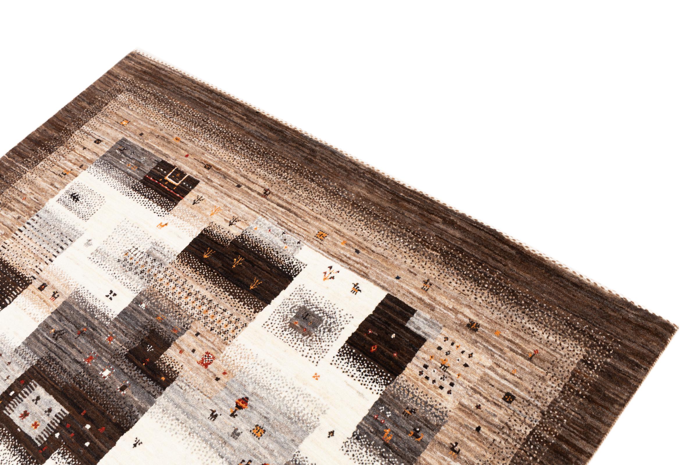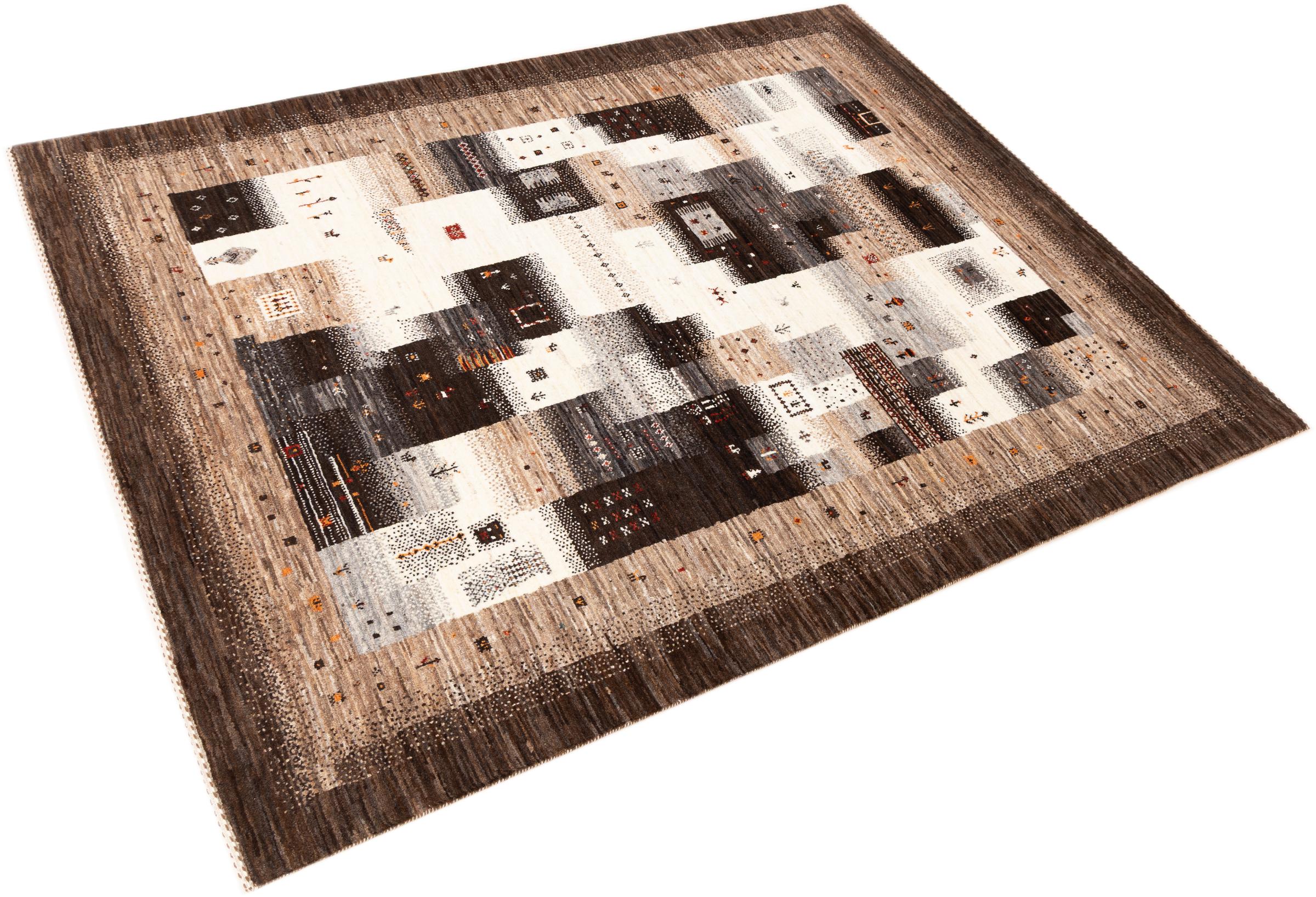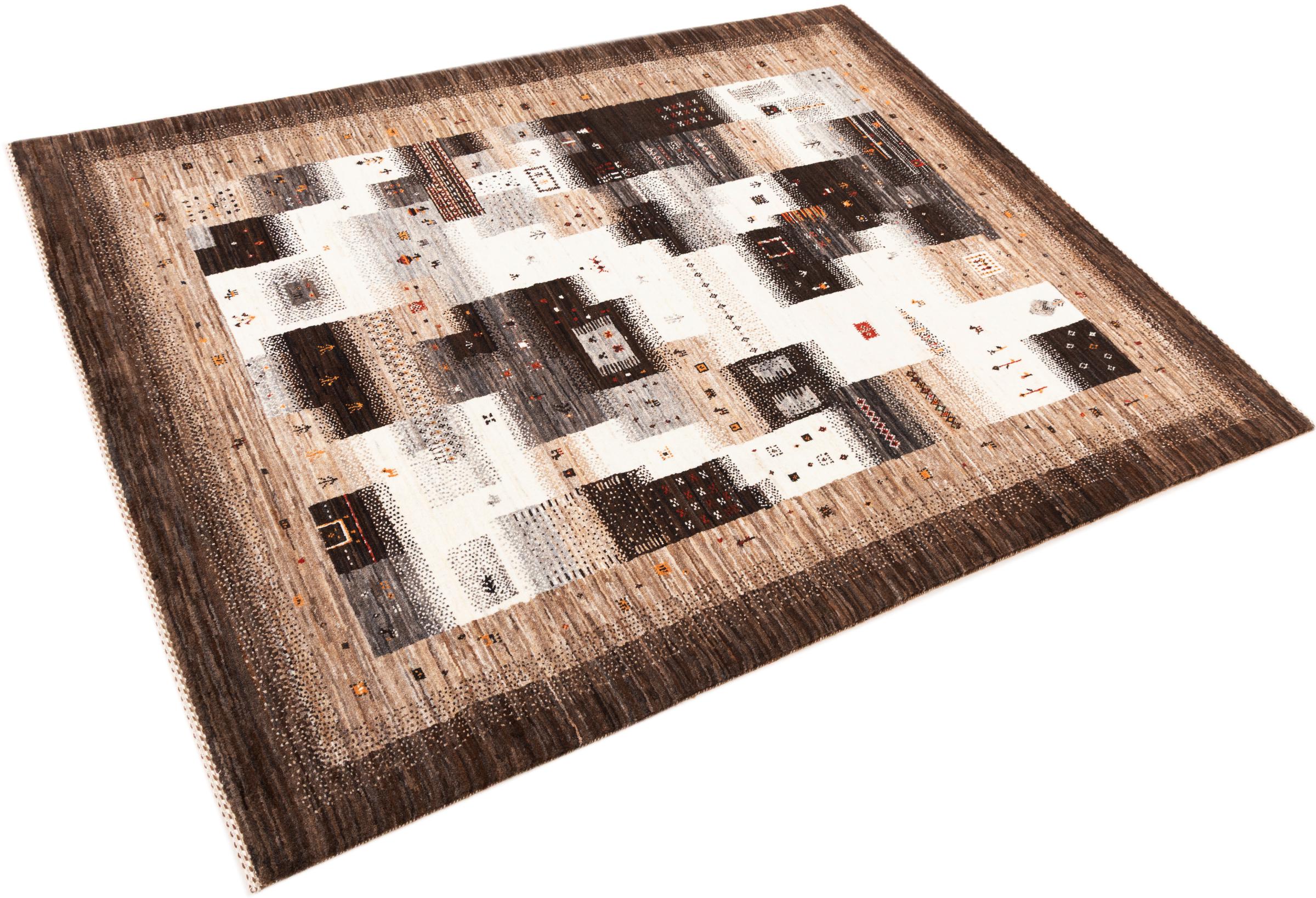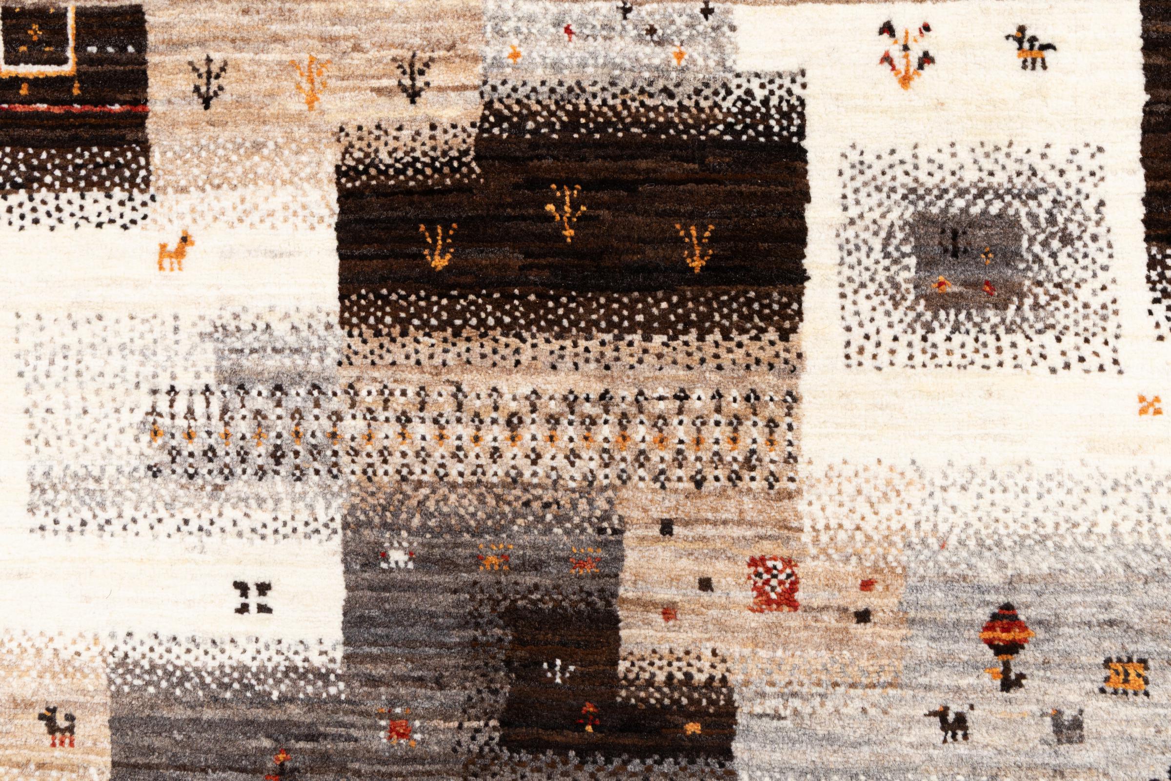 Ten piękny dywan jest perskim Gabbeh i dlatego należy do najwyższej jakości dywanów Gabbeh. Dywany są wiązane przez nomadów lub pół-nomadzi w Iranie zgodnie z tradycyjnym rzemiosłem. Proste motywy i wzory są w większości inspirowane bezpośrednim otoczeniem nomadów. Na przykład wielbłądy, drzewa lub krzewy można znaleźć na tradycyjnych dywanach. Perskie dywany Gabbeh wykonane są z wełny pochodzącej z lokalnie hodowanych stad owiec. Wełna jest więc w większości przypadków nadal obracana ręcznie. Tak więc każdy z tych orientalnych dywanów uosabia unikalny charakter wielowiekowej kultury.