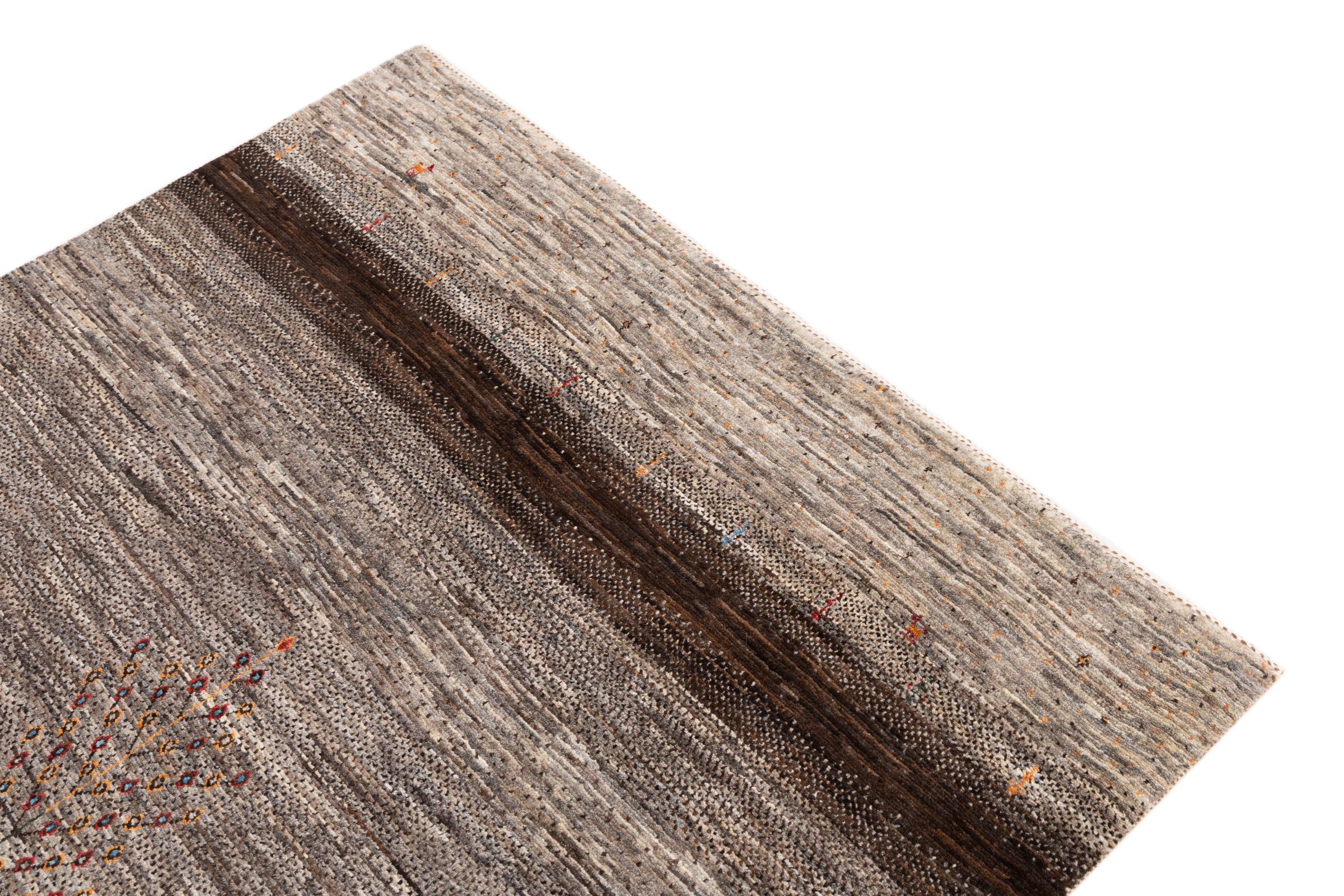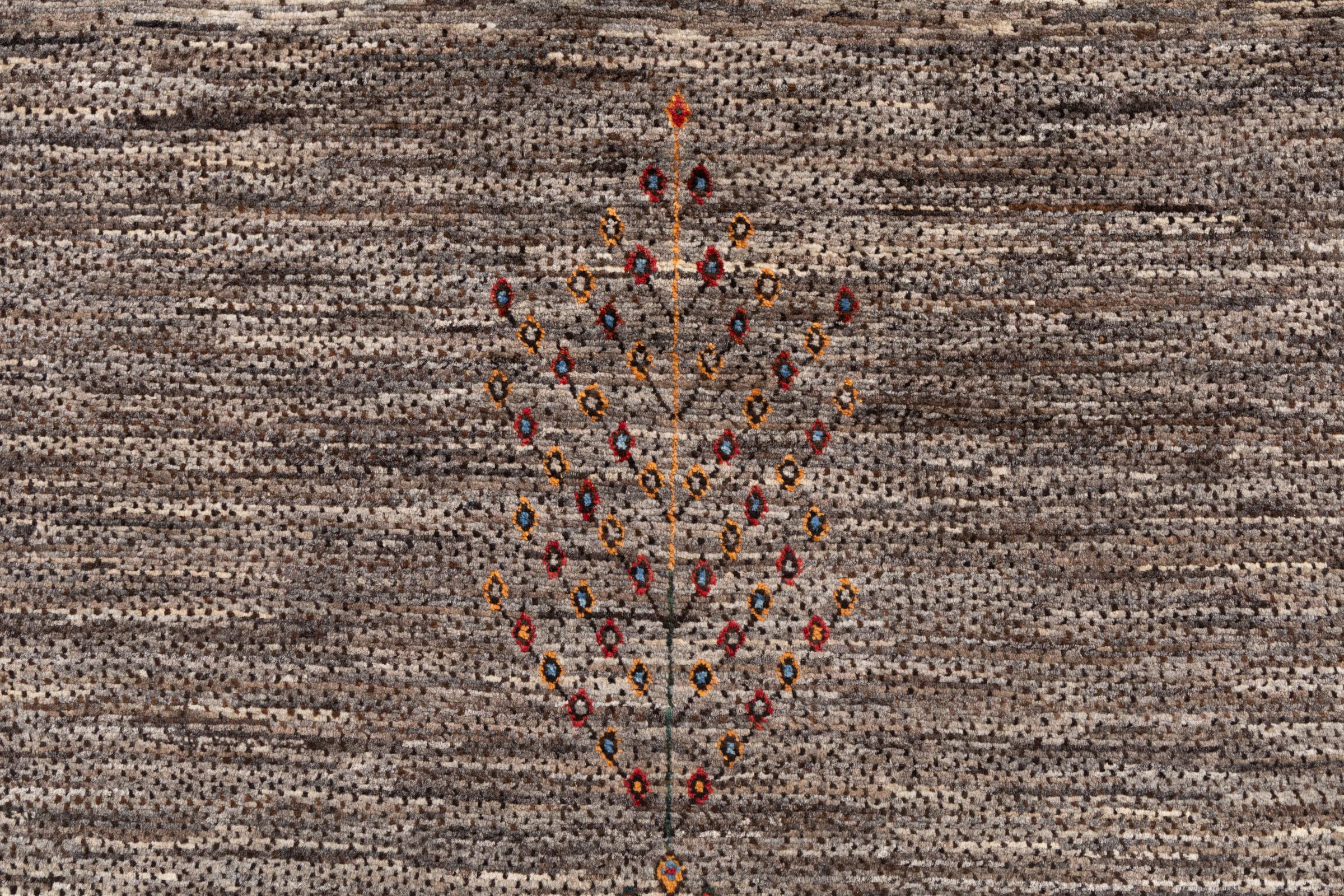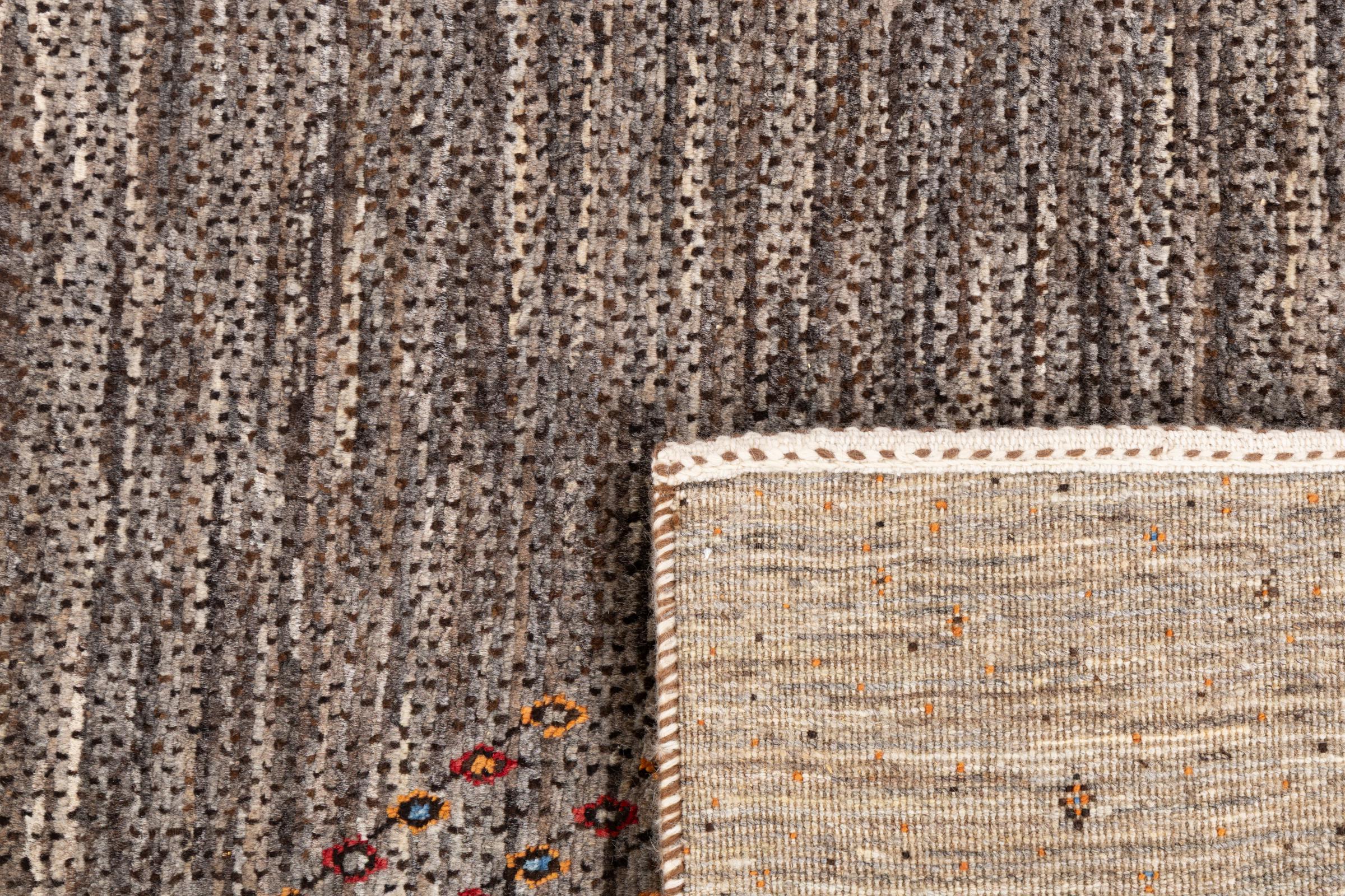 Ten piękny dywan jest perskim Gabbeh i dlatego należy do najwyższej jakości dywanów Gabbeh. Dywany są wiązane przez nomadów lub pół-nomadzi w Iranie zgodnie z tradycyjnym rzemiosłem. Proste motywy i wzory są w większości inspirowane bezpośrednim otoczeniem nomadów. Na przykład wielbłądy, drzewa lub krzewy można znaleźć na tradycyjnych dywanach. Perskie dywany Gabbeh wykonane są z wełny pochodzącej z lokalnie hodowanych stad owiec. Wełna jest więc w większości przypadków nadal obracana ręcznie. Tak więc każdy z tych orientalnych dywanów uosabia unikalny charakter wielowiekowej kultury.