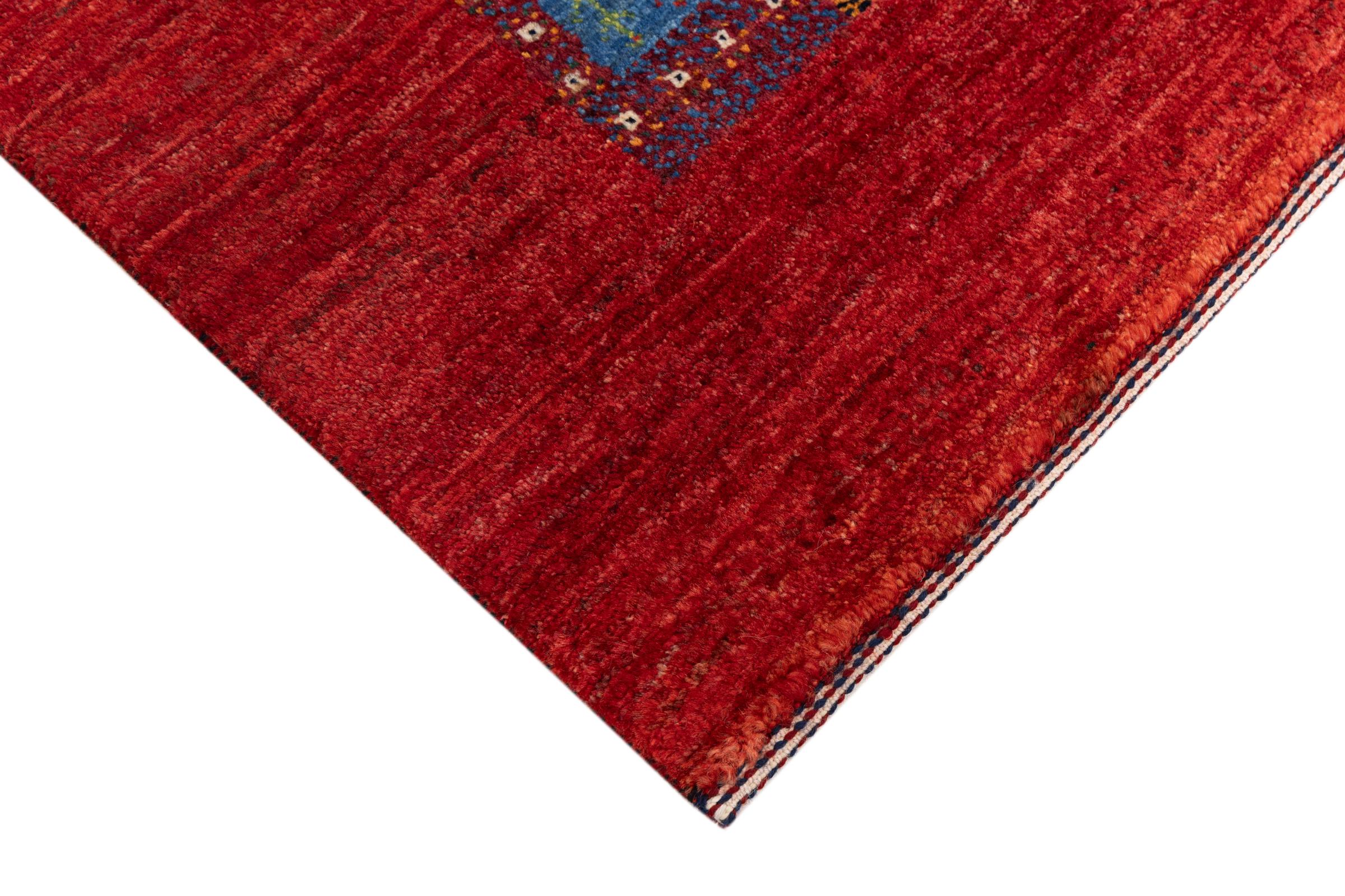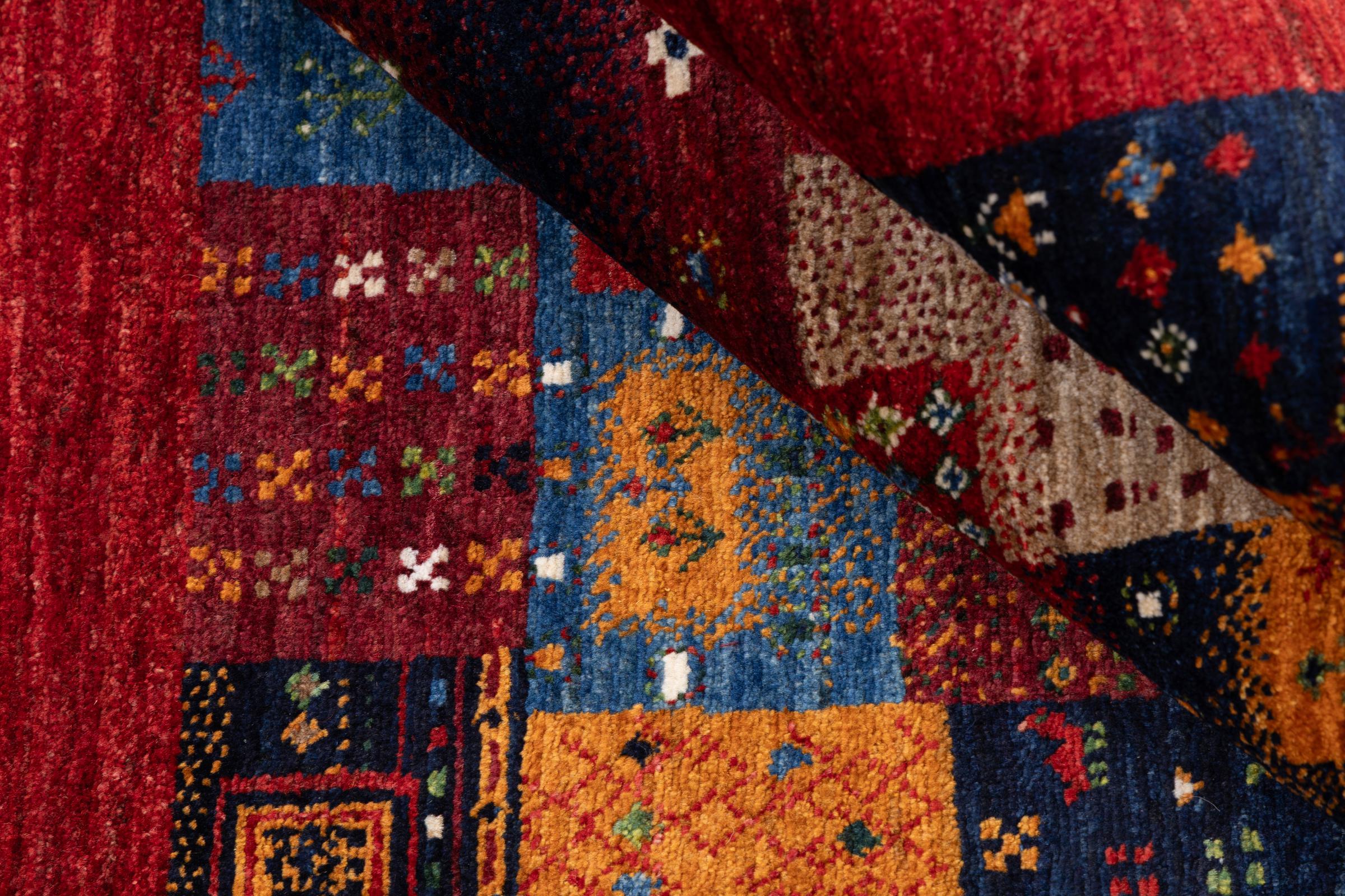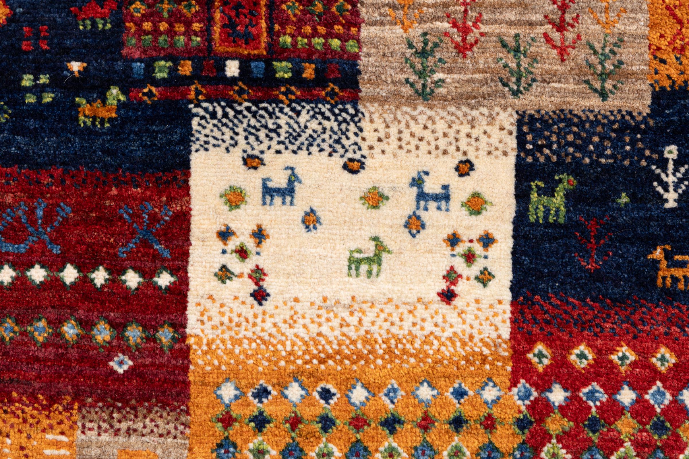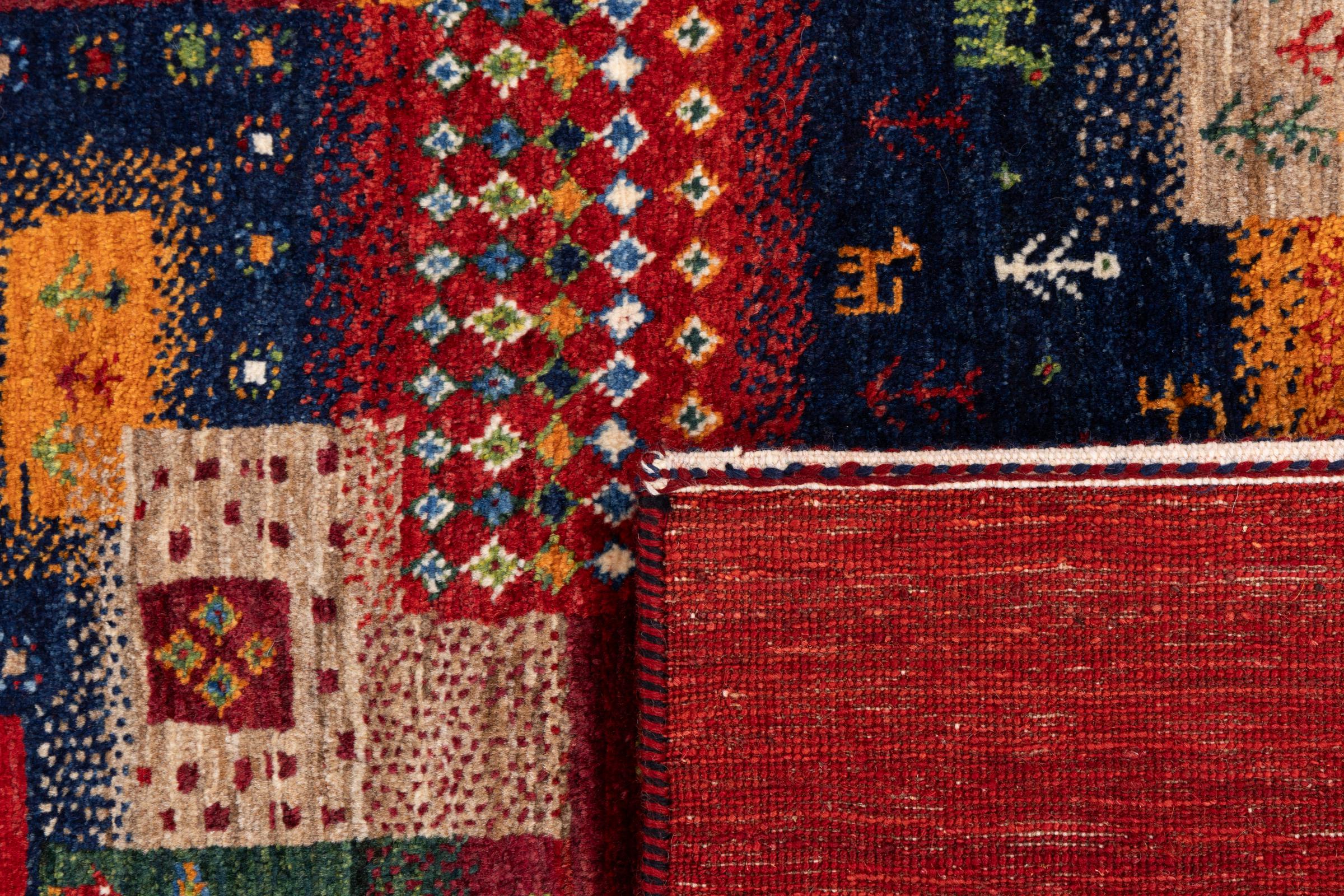 Ten piękny dywan jest perskim Gabbeh i dlatego należy do najwyższej jakości dywanów Gabbeh. Dywany są wiązane przez nomadów lub pół-nomadzi w Iranie zgodnie z tradycyjnym rzemiosłem. Proste motywy i wzory są w większości inspirowane bezpośrednim otoczeniem nomadów. Na przykład wielbłądy, drzewa lub krzewy można znaleźć na tradycyjnych dywanach. Perskie dywany Gabbeh wykonane są z wełny pochodzącej z lokalnie hodowanych stad owiec. Wełna jest więc w większości przypadków nadal obracana ręcznie. Tak więc każdy z tych orientalnych dywanów uosabia unikalny charakter wielowiekowej kultury.
