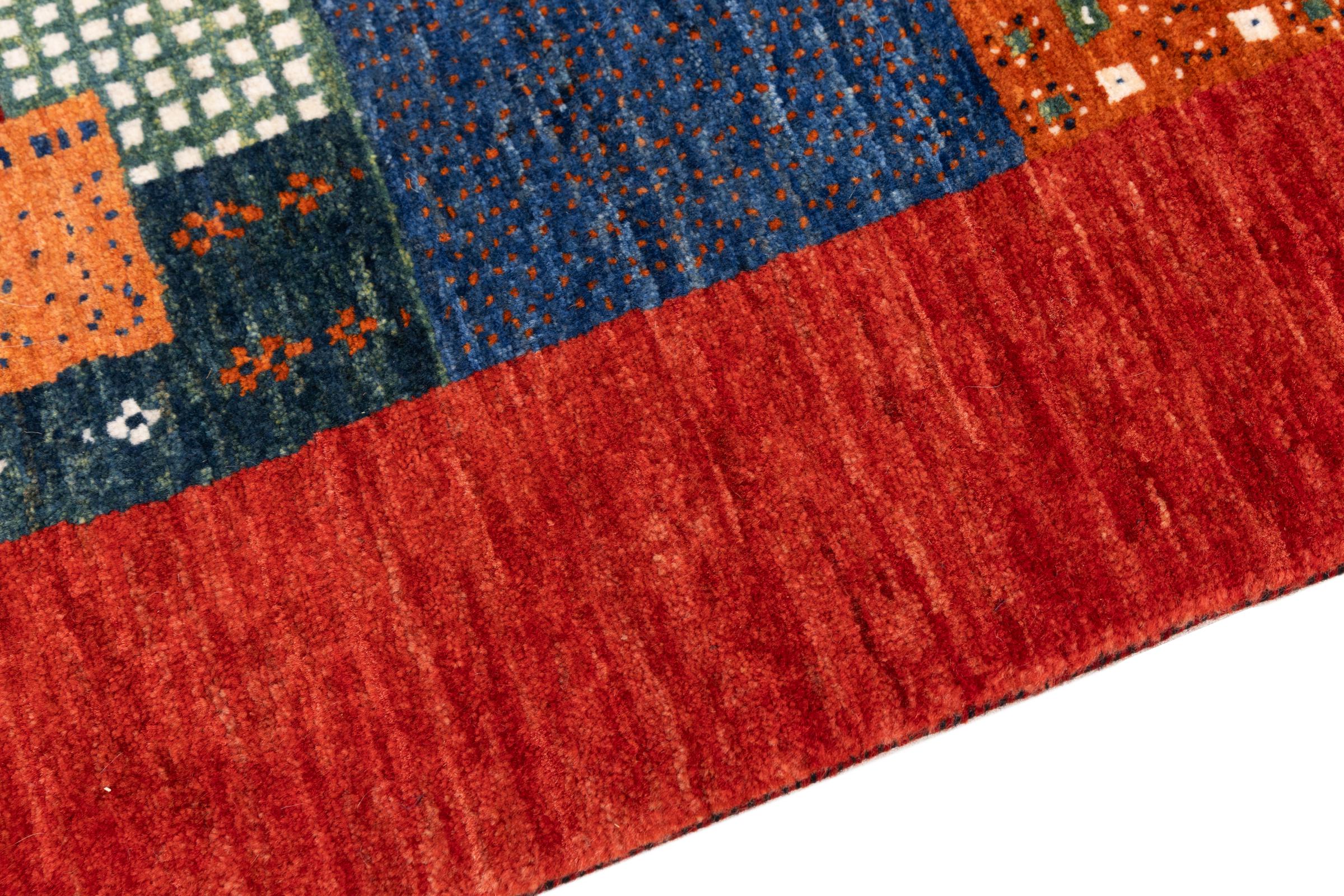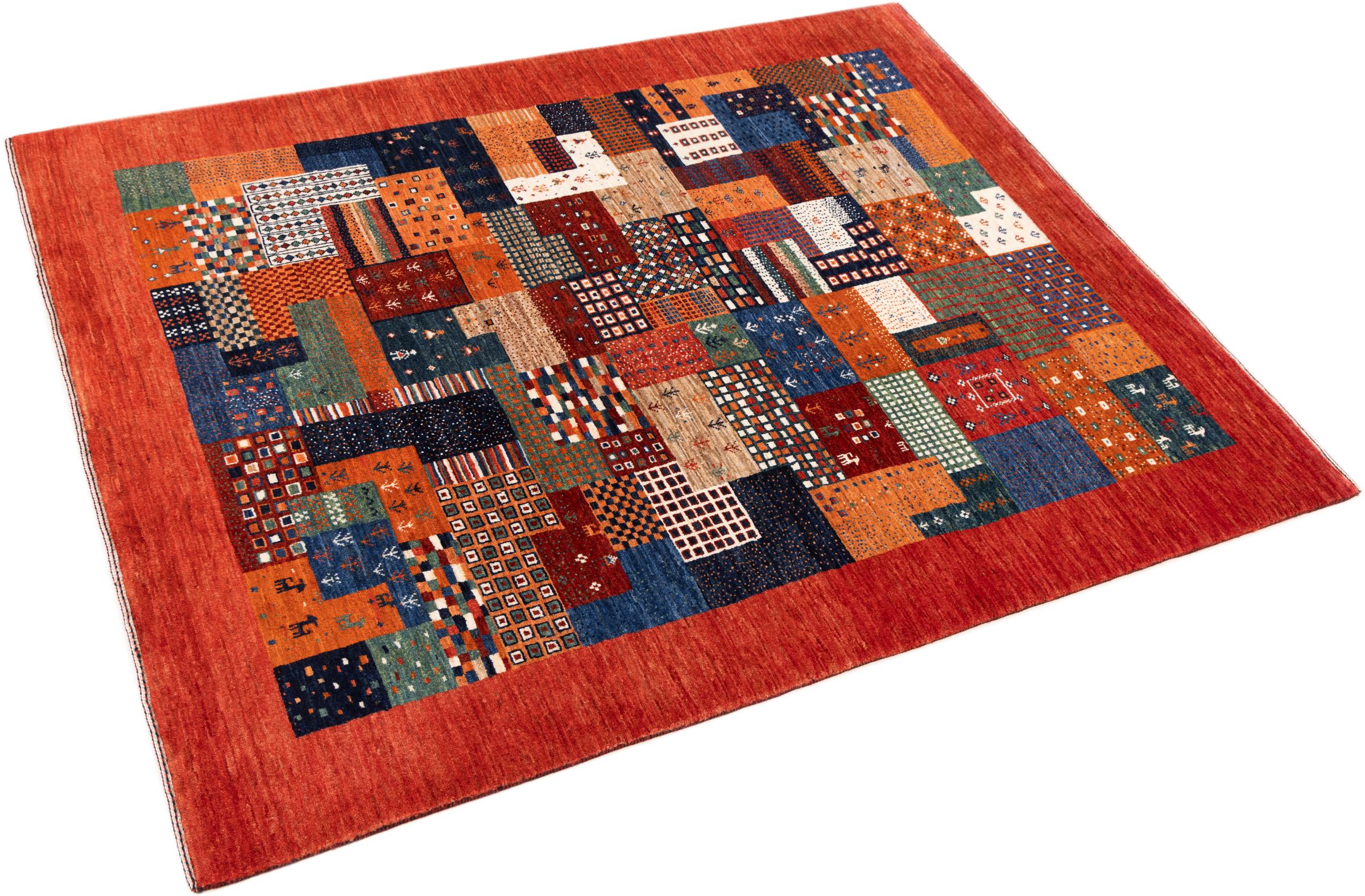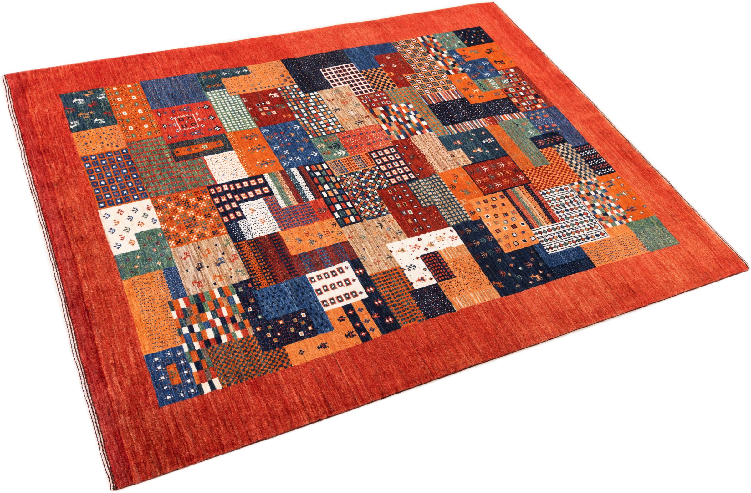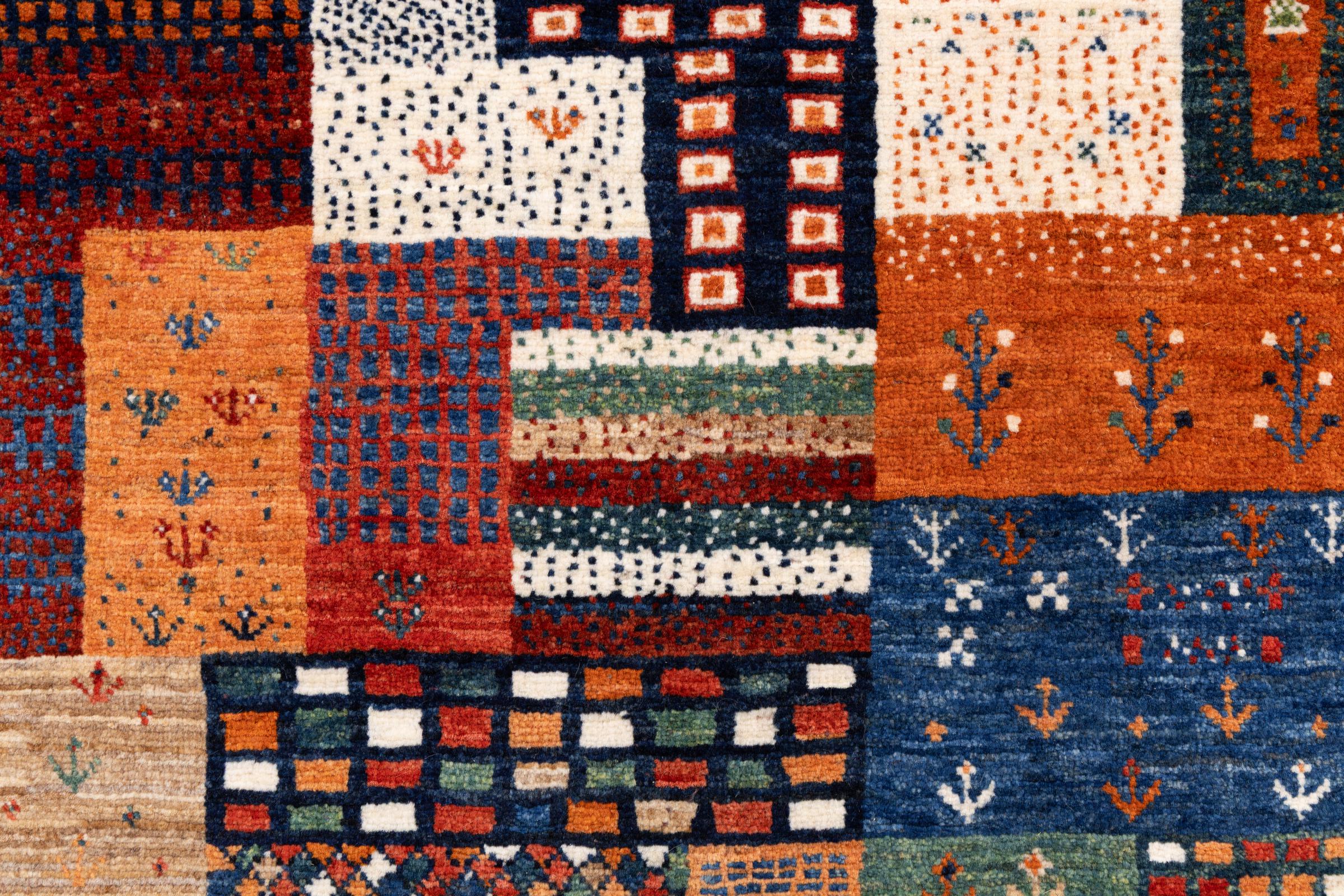 Ten piękny dywan jest perskim Gabbeh i dlatego należy do najwyższej jakości dywanów Gabbeh. Dywany są wiązane przez nomadów lub pół-nomadzi w Iranie zgodnie z tradycyjnym rzemiosłem. Proste motywy i wzory są w większości inspirowane bezpośrednim otoczeniem nomadów. Na przykład wielbłądy, drzewa lub krzewy można znaleźć na tradycyjnych dywanach. Perskie dywany Gabbeh wykonane są z wełny pochodzącej z lokalnie hodowanych stad owiec. Wełna jest więc w większości przypadków nadal obracana ręcznie. Tak więc każdy z tych orientalnych dywanów uosabia unikalny charakter wielowiekowej kultury.