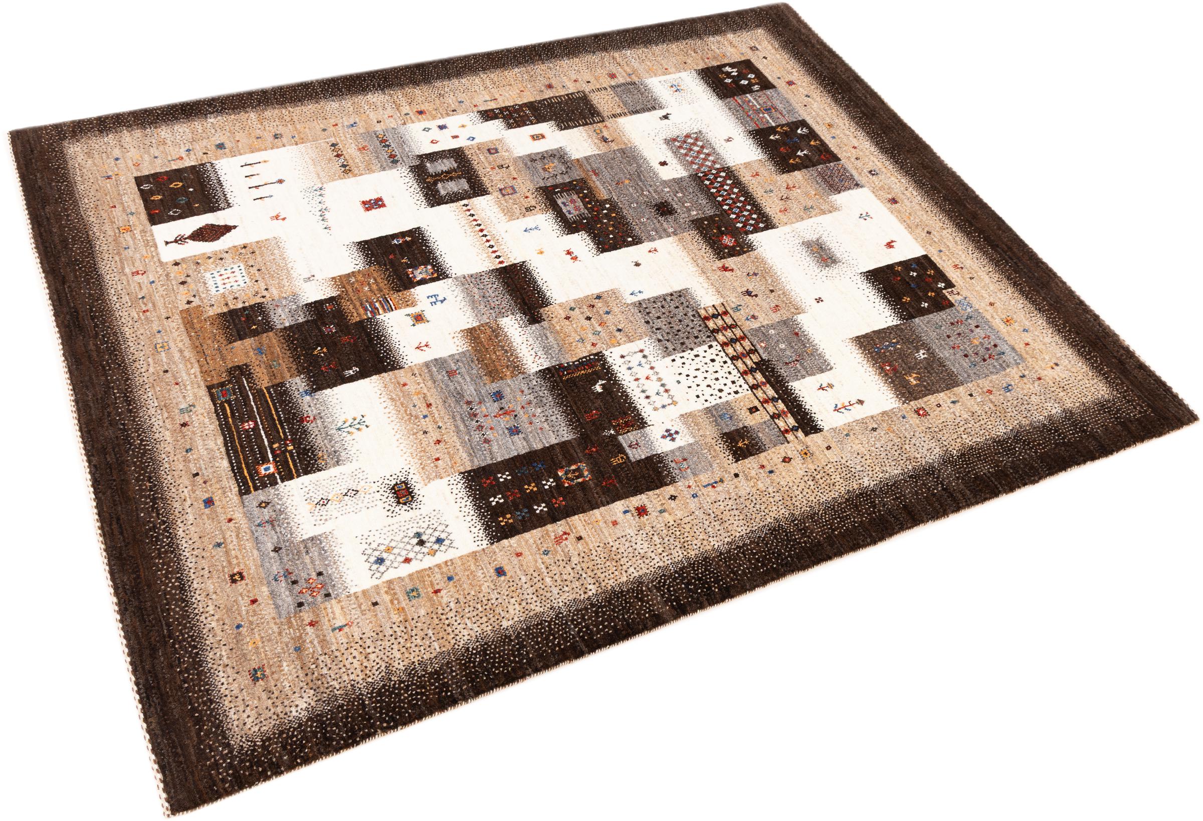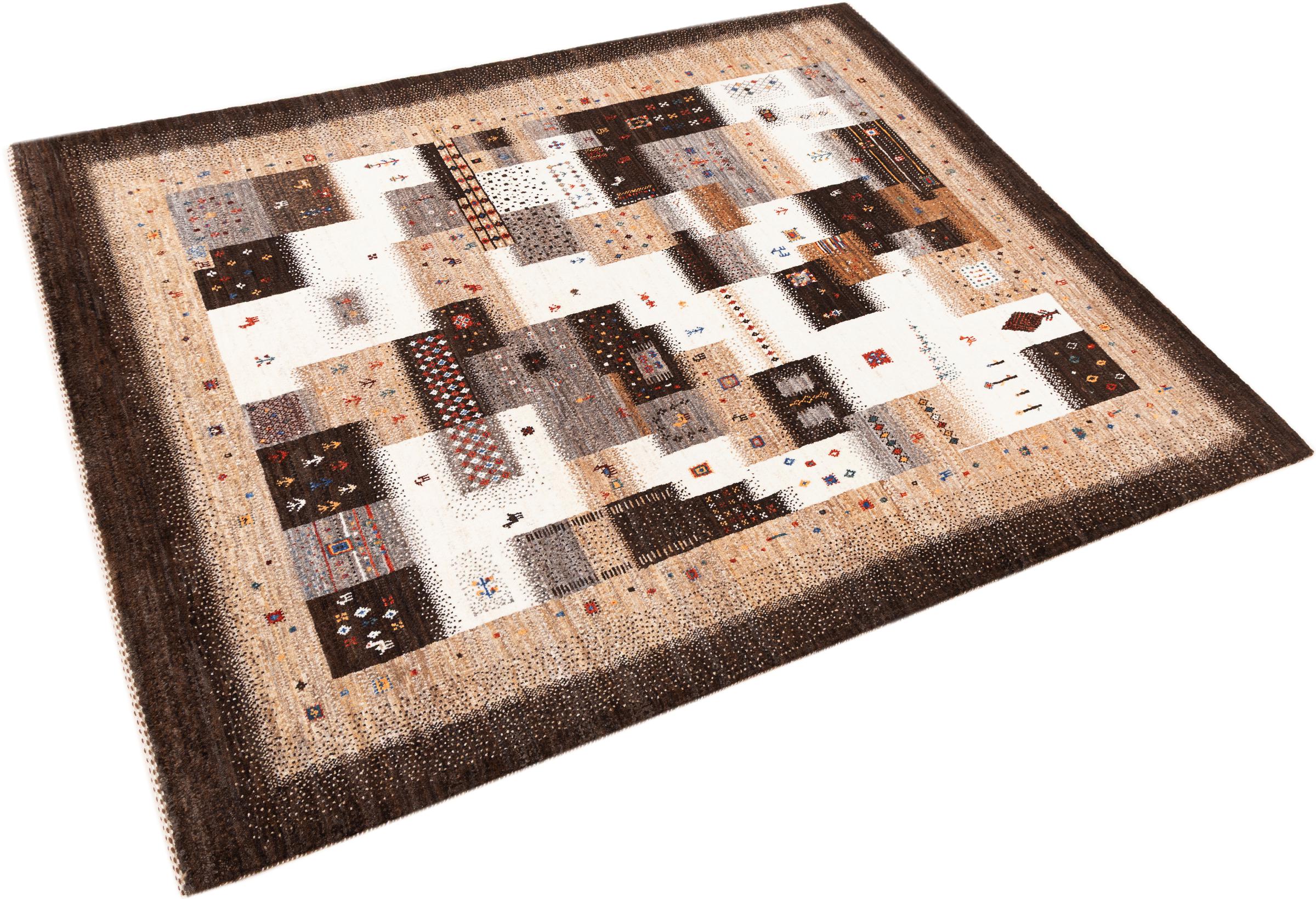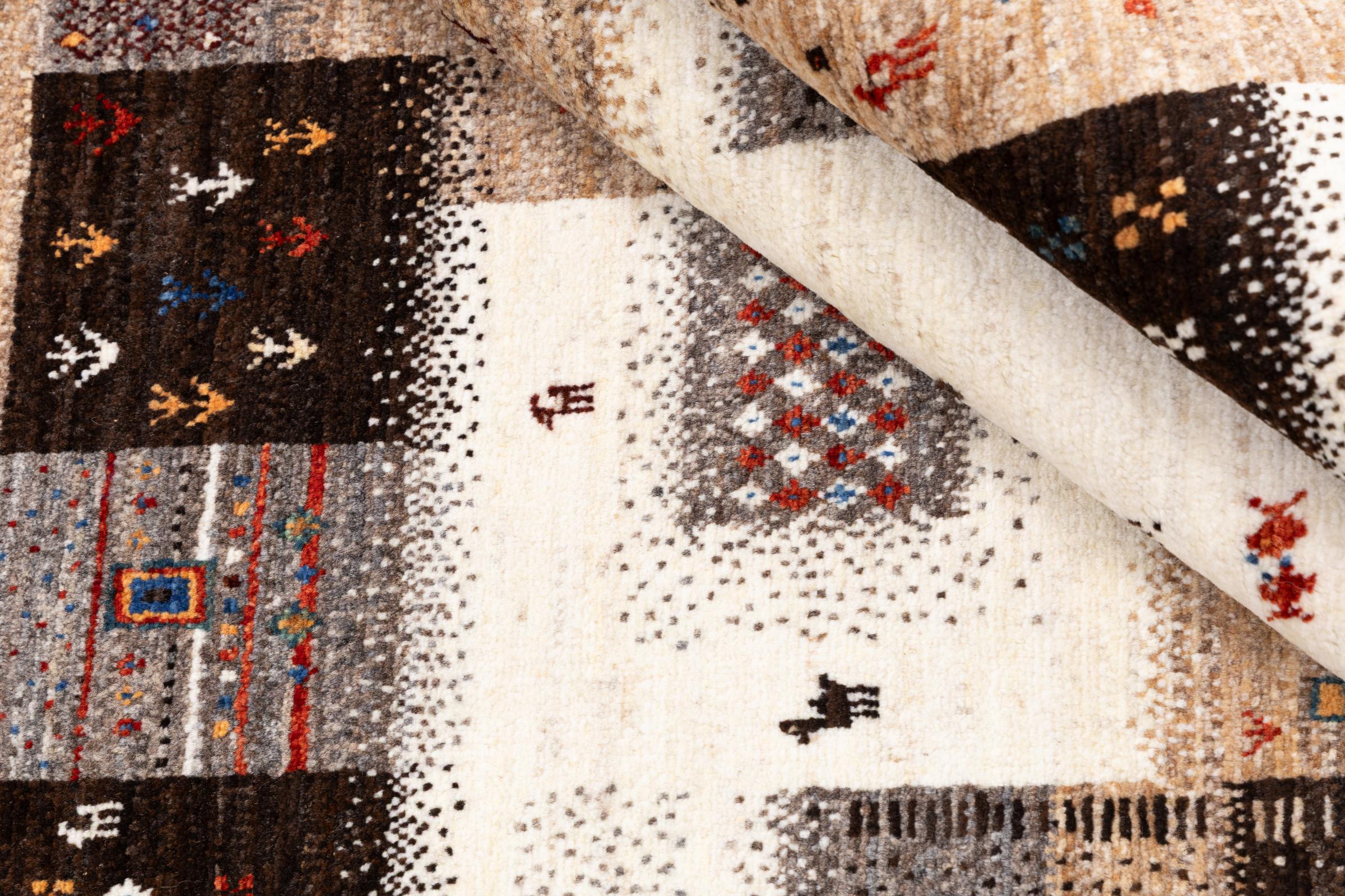 Ten piękny dywan jest perskim Gabbeh i dlatego należy do najwyższej jakości dywanów Gabbeh. Dywany są wiązane przez nomadów lub pół-nomadzi w Iranie zgodnie z tradycyjnym rzemiosłem. Proste motywy i wzory są w większości inspirowane bezpośrednim otoczeniem nomadów. Na przykład wielbłądy, drzewa lub krzewy można znaleźć na tradycyjnych dywanach. Perskie dywany Gabbeh wykonane są z wełny pochodzącej z lokalnie hodowanych stad owiec. Wełna jest więc w większości przypadków nadal obracana ręcznie. Tak więc każdy z tych orientalnych dywanów uosabia unikalny charakter wielowiekowej kultury.